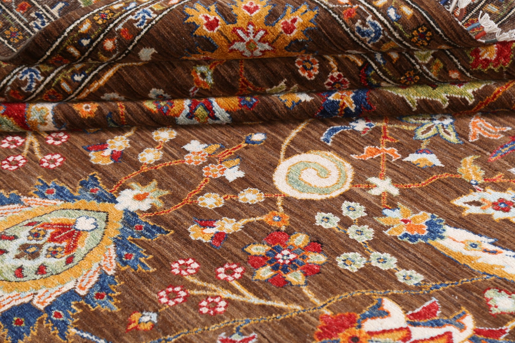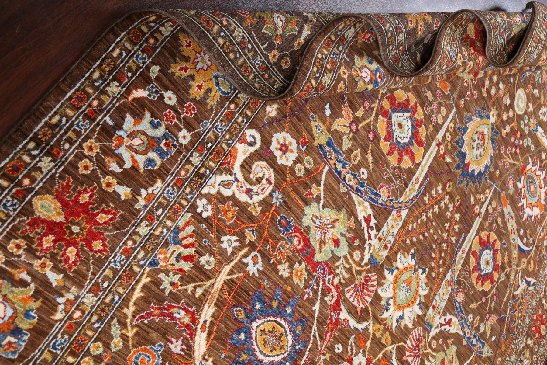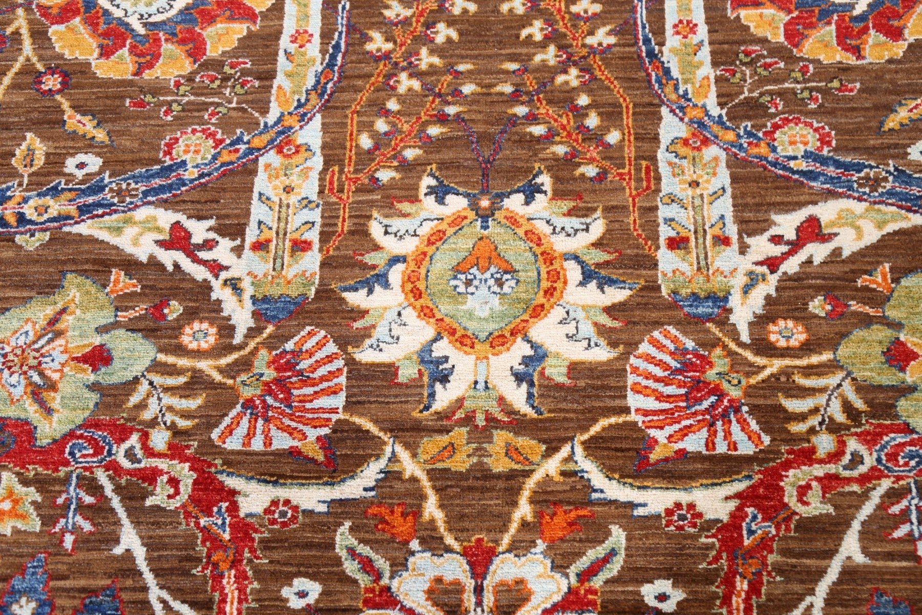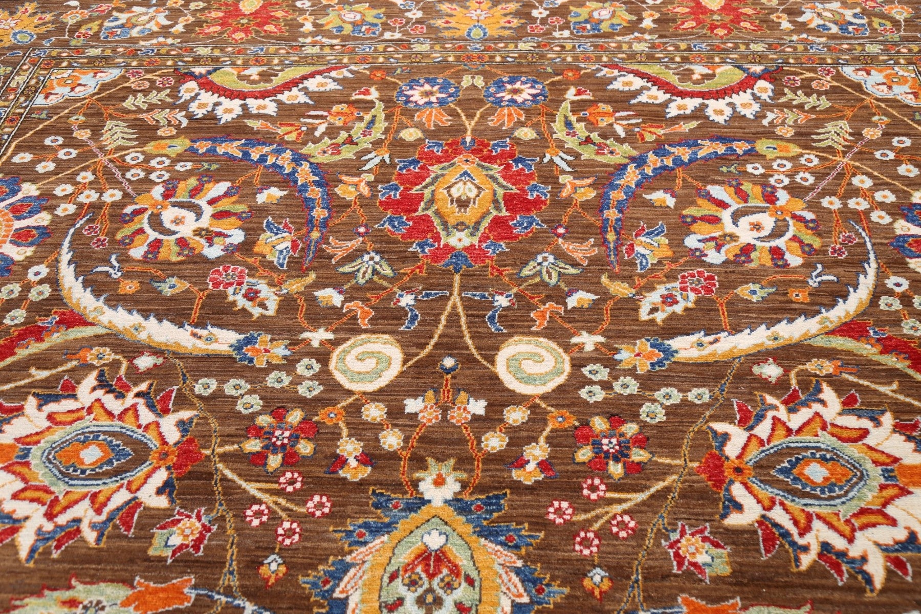 A Beautiful Genuine Pakistan Ziegler rug is Hand Knotted by skillful weavers in Pakistan with 100% Wool Material. This rug is in New, First Quality condition. dimensions are 11' 11'' X 8' 11'' in foot and 363 X 272 in centimeter. the primary color is Brown.