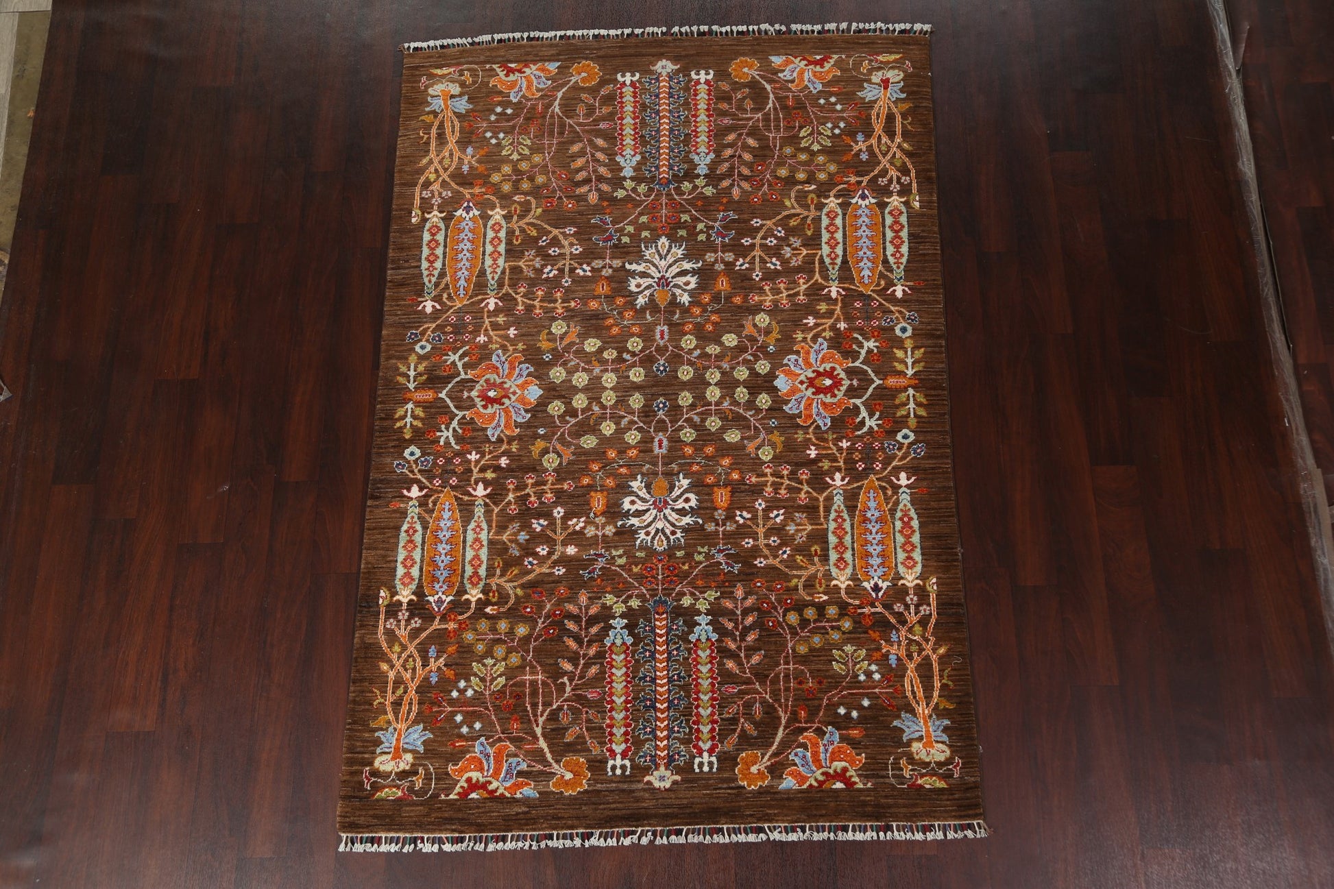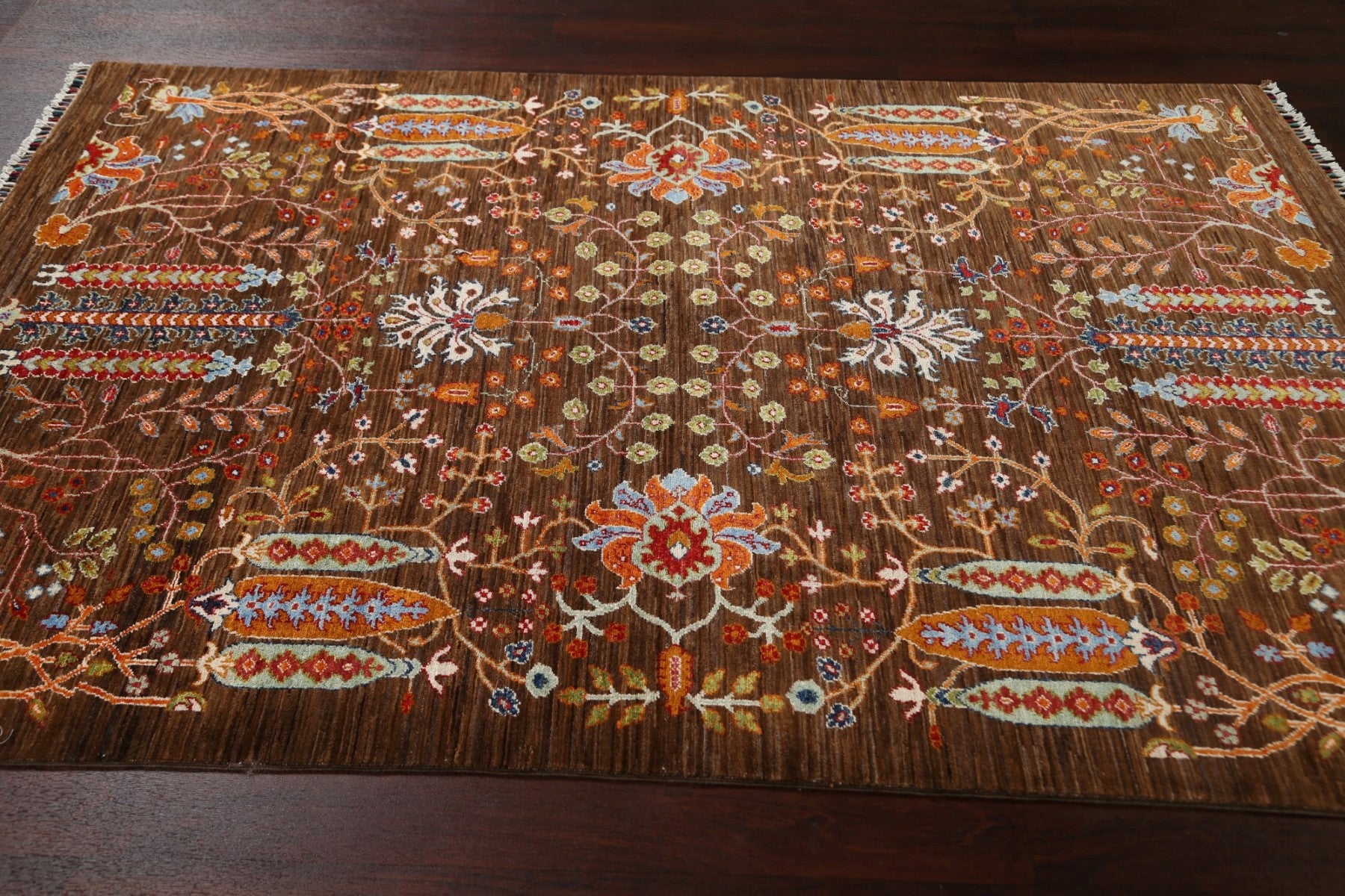 A Beautiful Genuine Pakistan Ziegler rug is Hand Knotted by skillful weavers in Pakistan with 100% Wool Material. This rug is in New, First Quality condition. dimensions are 7' 10'' X 5' 4'' in foot and 239 X 163 in centimeter. the primary color is Brown.