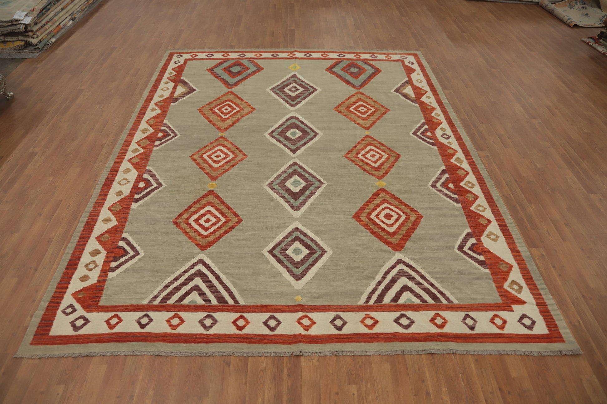 Vibrant Diamond Kilim Classic Handcrafted Area Rug 9x12