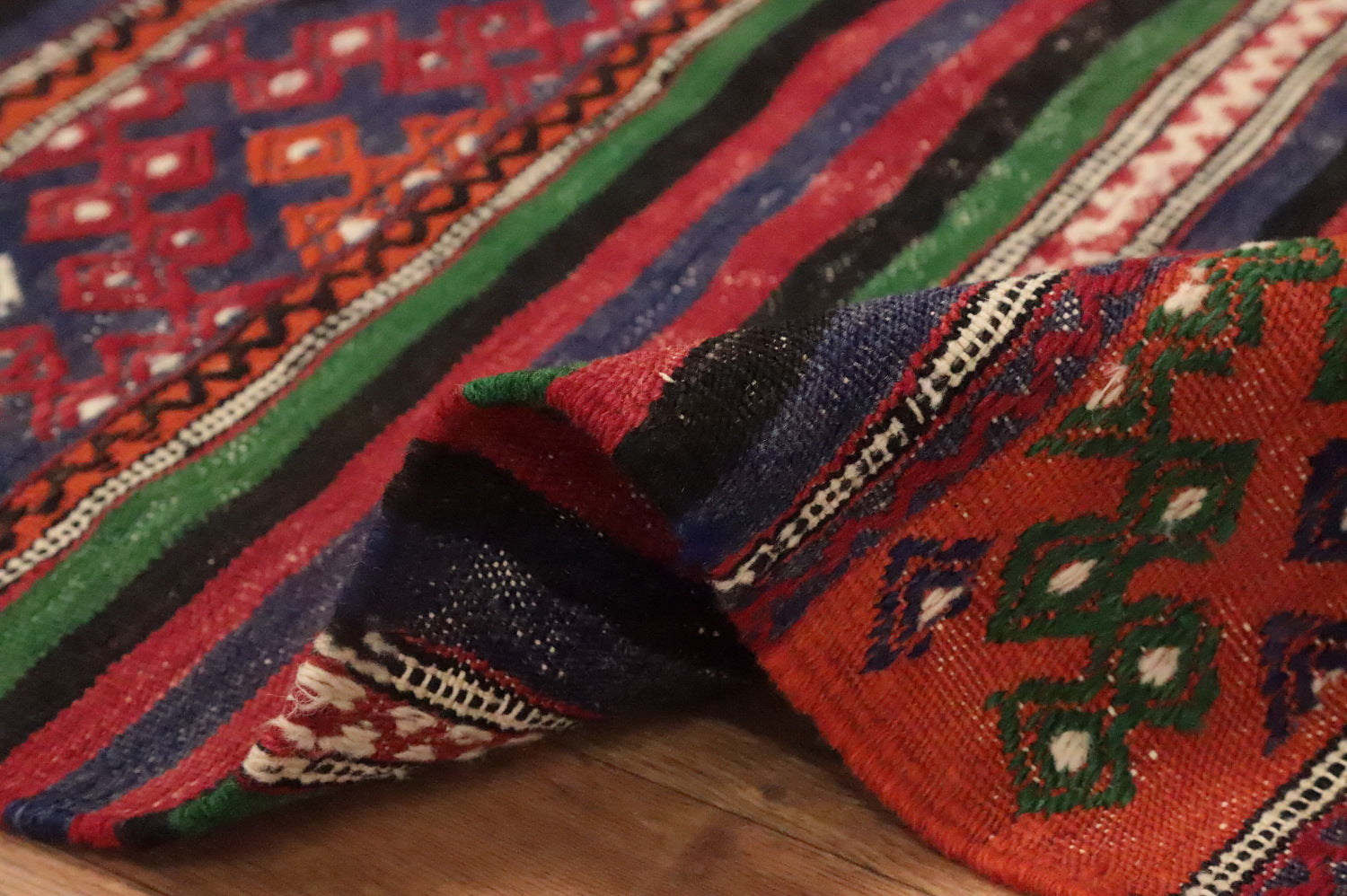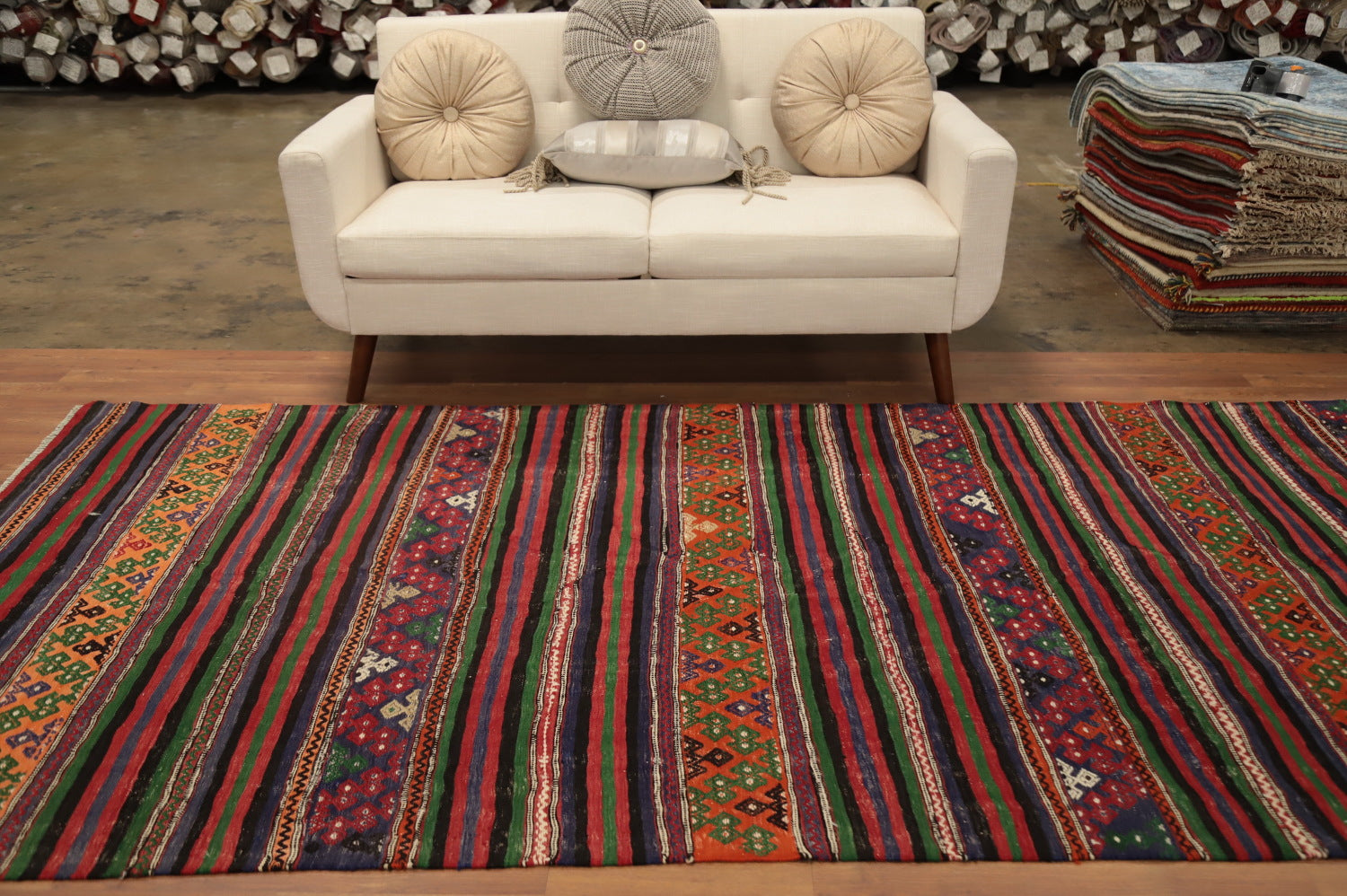 Vibrant Multicolor Tribal Kilim Area Rug 5x10 with Intricate Patterns