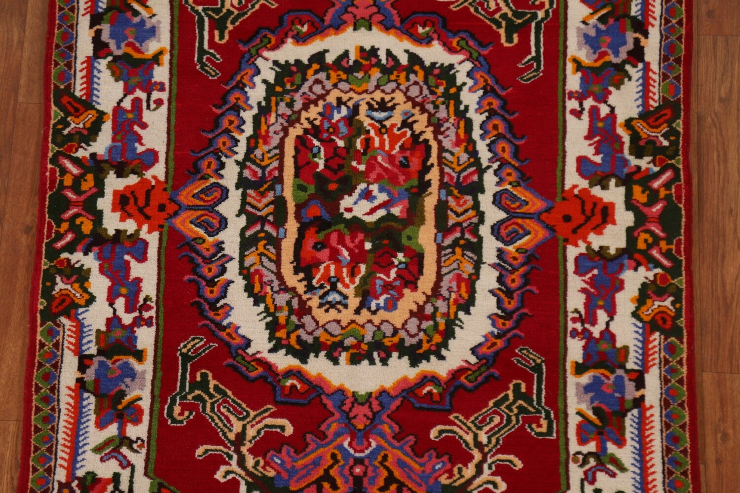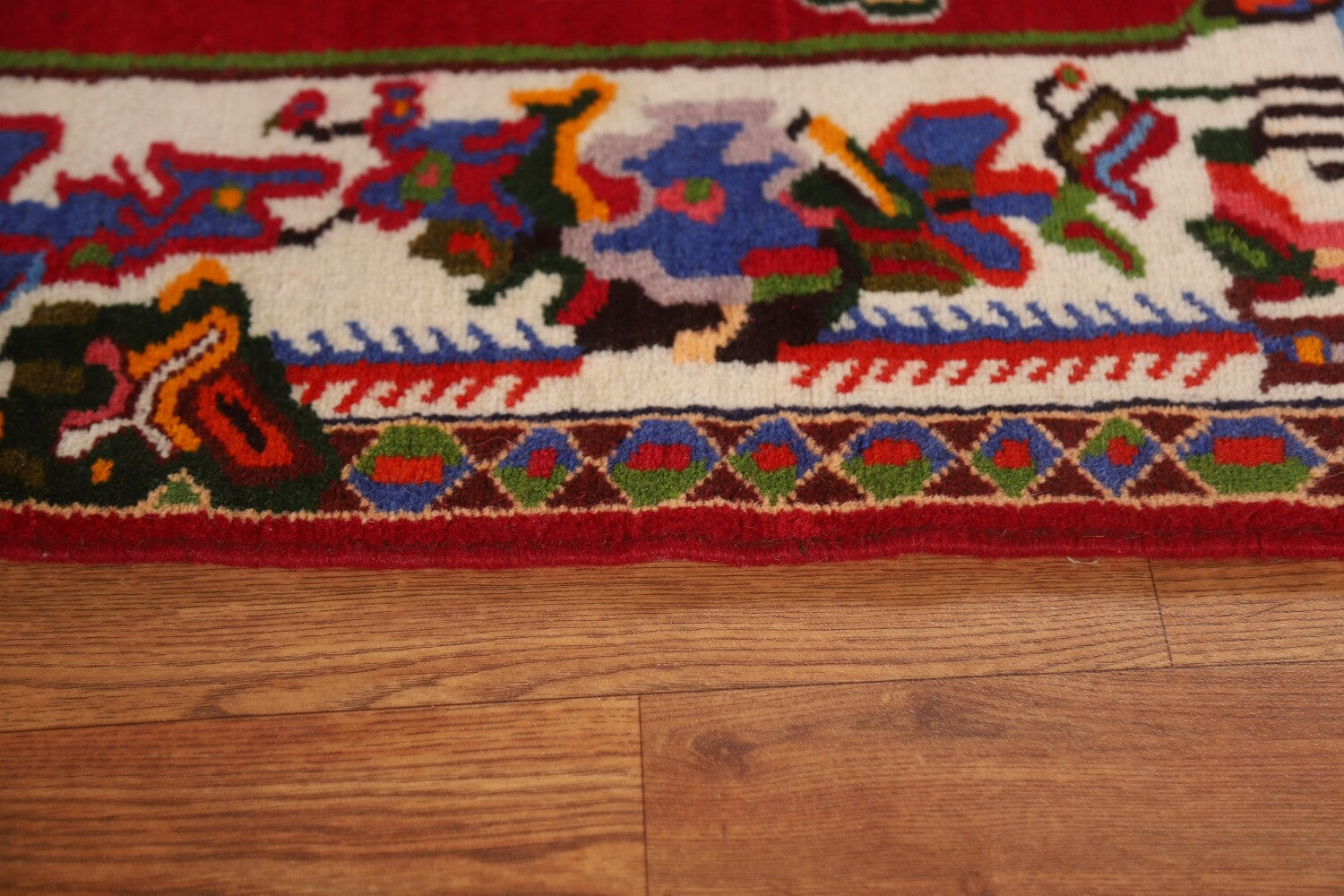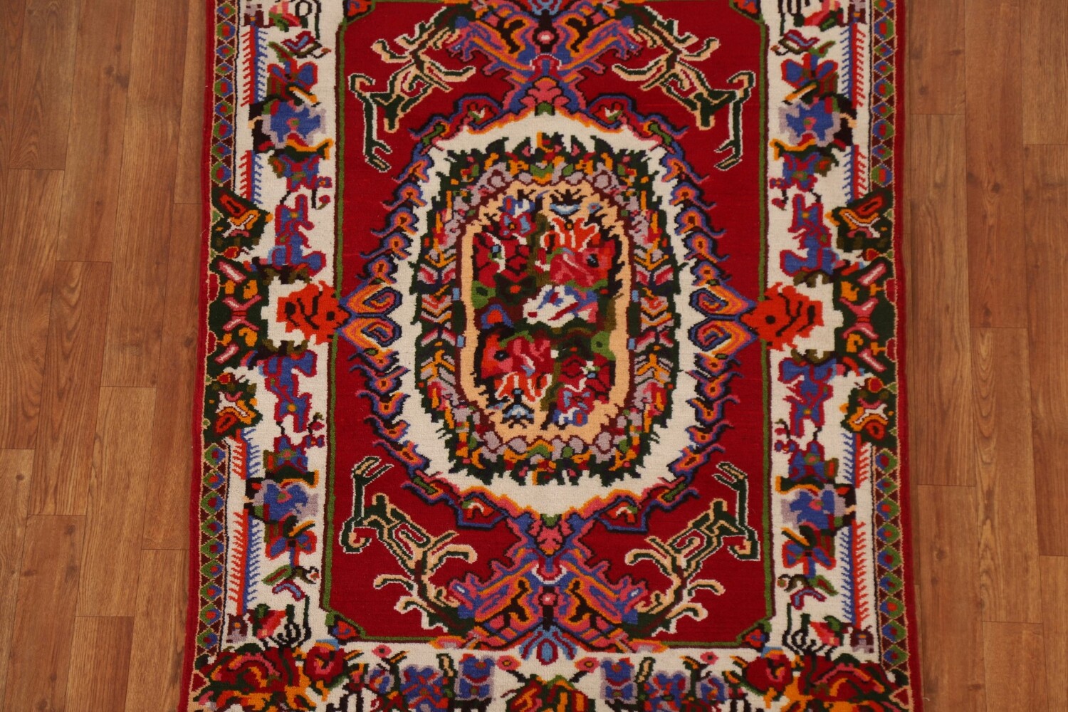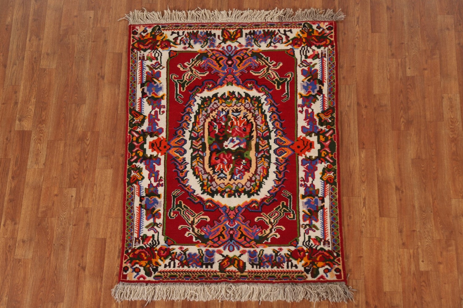 A Beautiful Genuine Persia ( Persia ) Bakhtiari rug is Hand Knotted by skillful weavers in Persia ( Persia ) with 100% Wool Material. This rug is in New, First Quality condition. dimensions are 4' 6'' X 3' 5'' in foot and 137 X 104 in centimeter. the primary color is Red.
