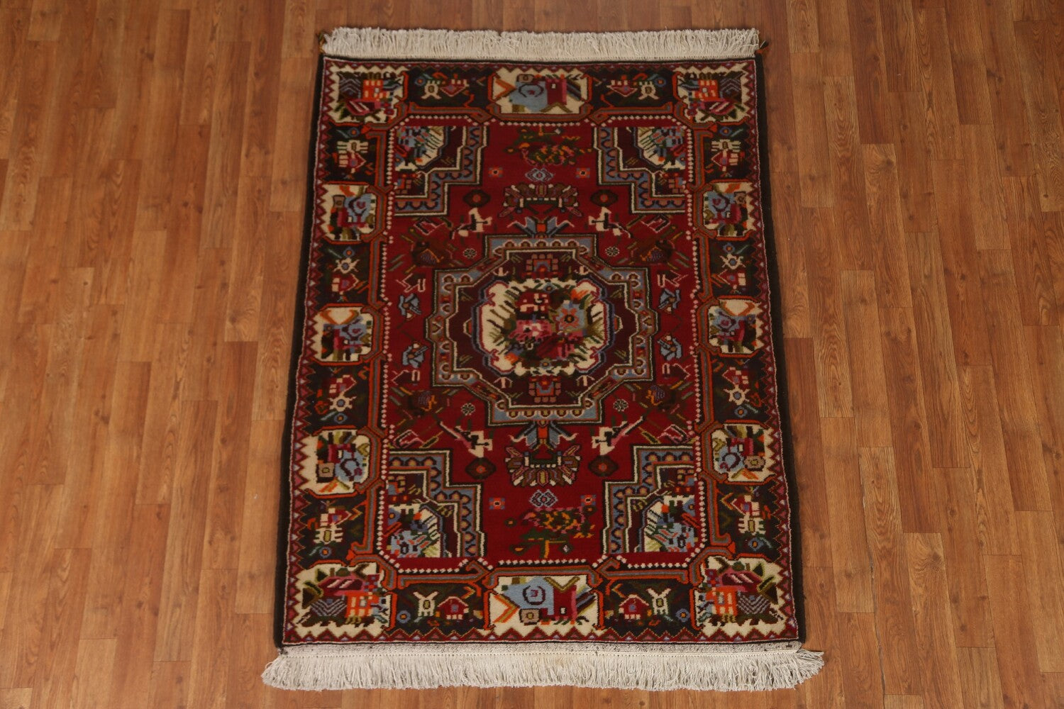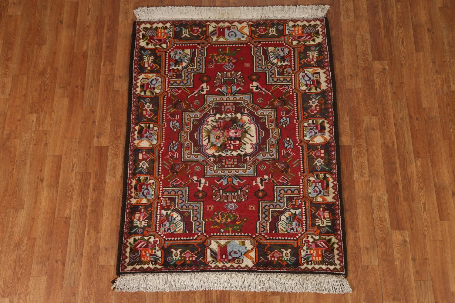 A Beautiful Genuine Persia ( Persia ) Bakhtiari rug is Hand Knotted by skillful weavers in Persia ( Persia ) with 100% Wool Material. This rug is in New, First Quality condition. dimensions are 4' 11'' X 3' 10'' in foot and 150 X 117 in centimeter. the primary color is Red.