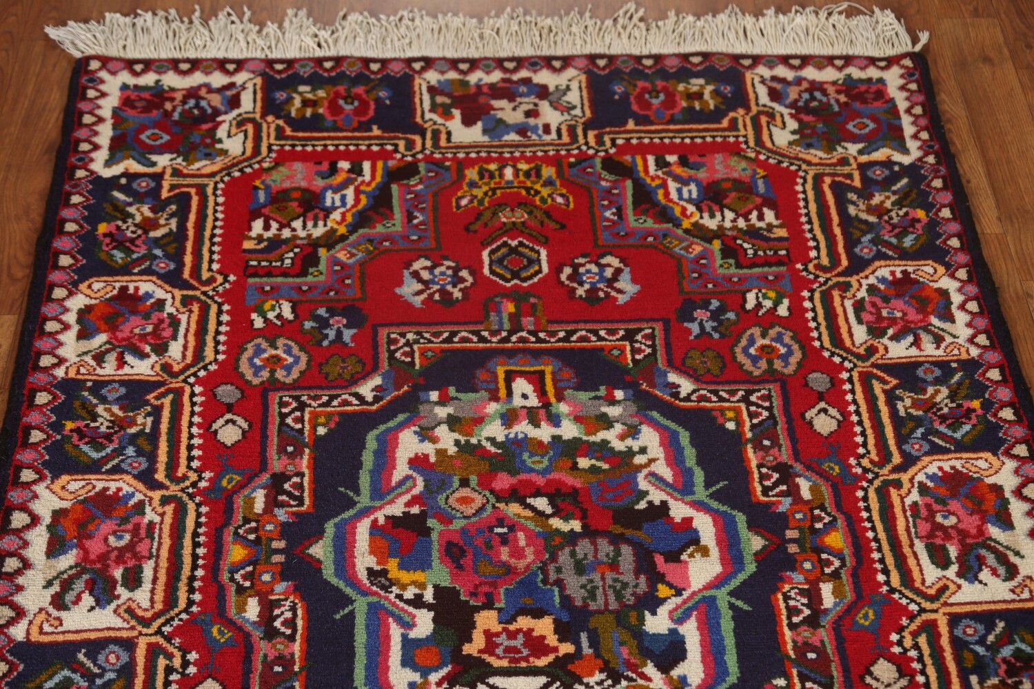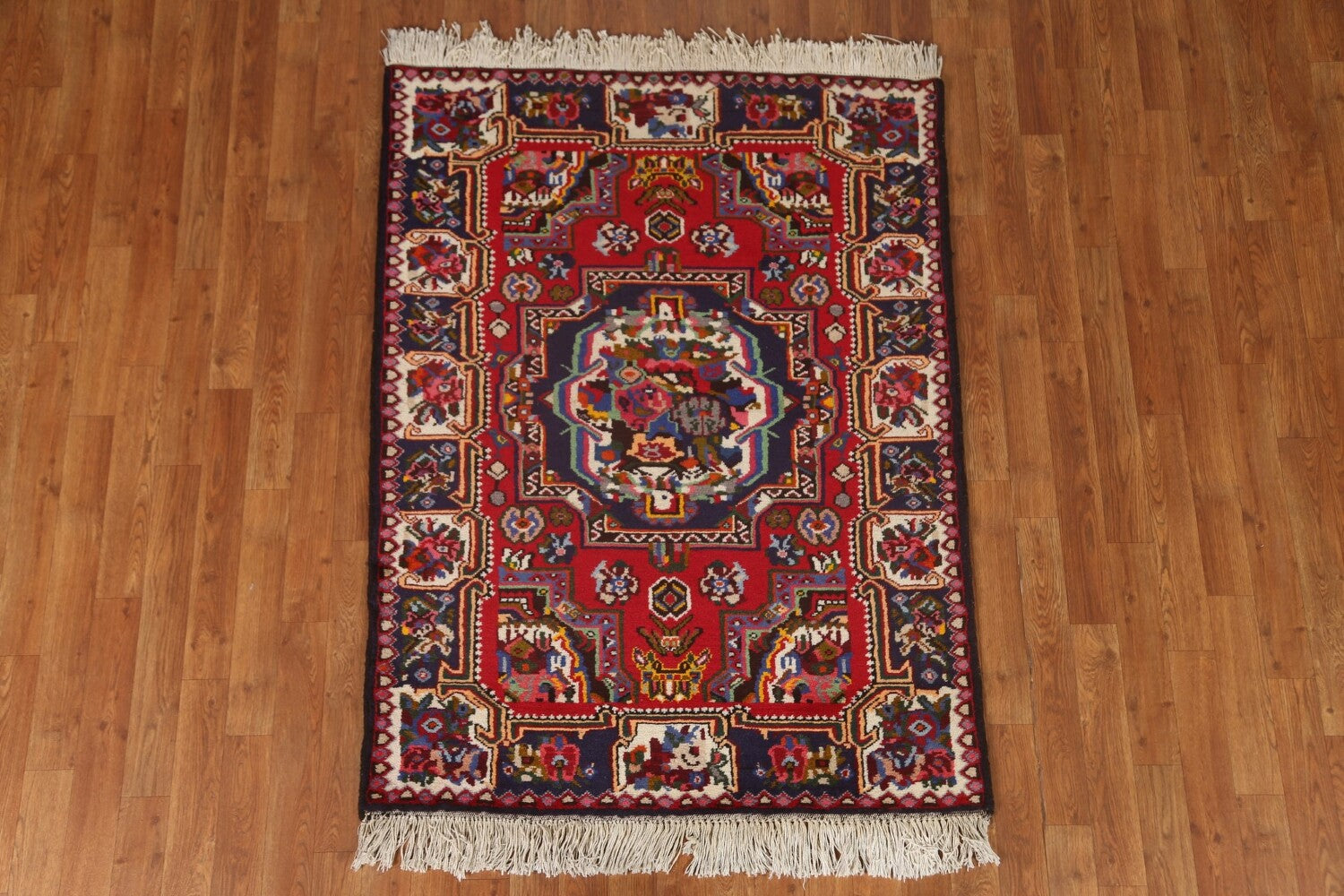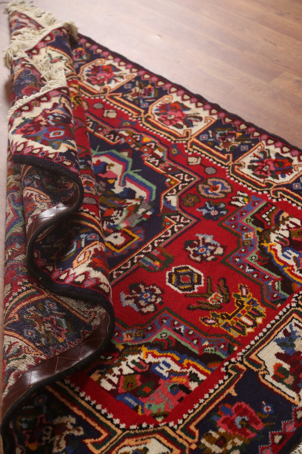 A Beautiful Genuine Persia ( Persia ) Bakhtiari rug is Hand Knotted by skillful weavers in Persia ( Persia ) with 100% Wool Material. This rug is in New, First Quality condition. dimensions are 4' 10'' X 3' 8'' in foot and 147 X 112 in centimeter. the primary color is Red.