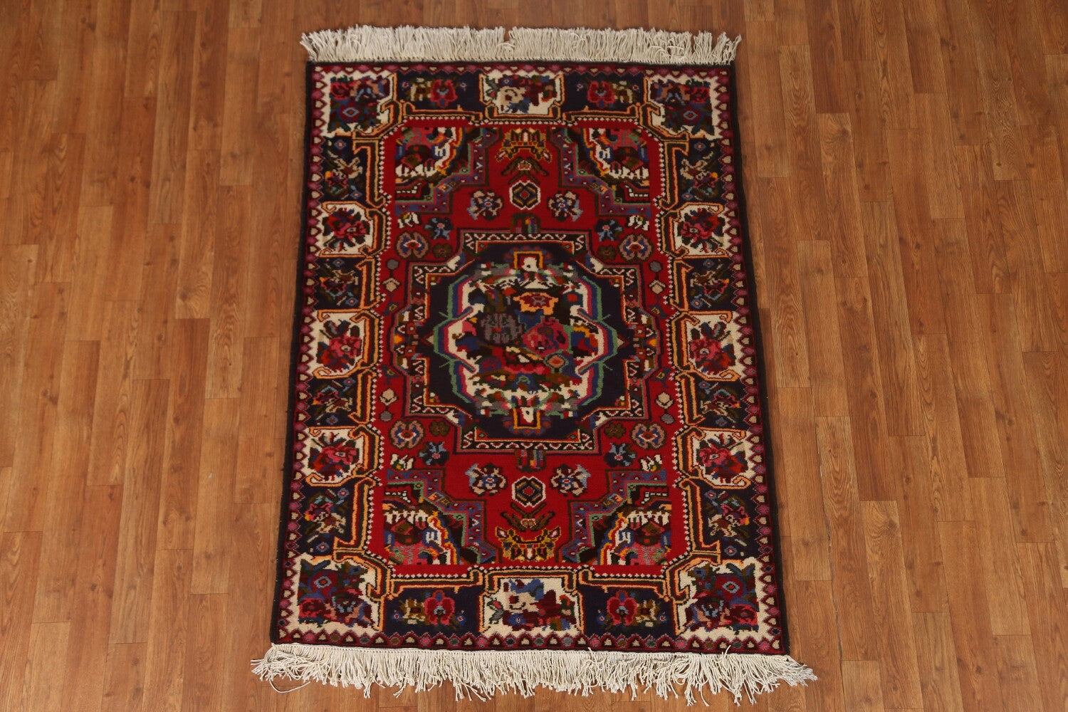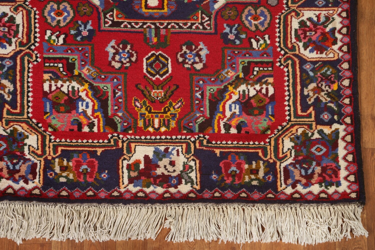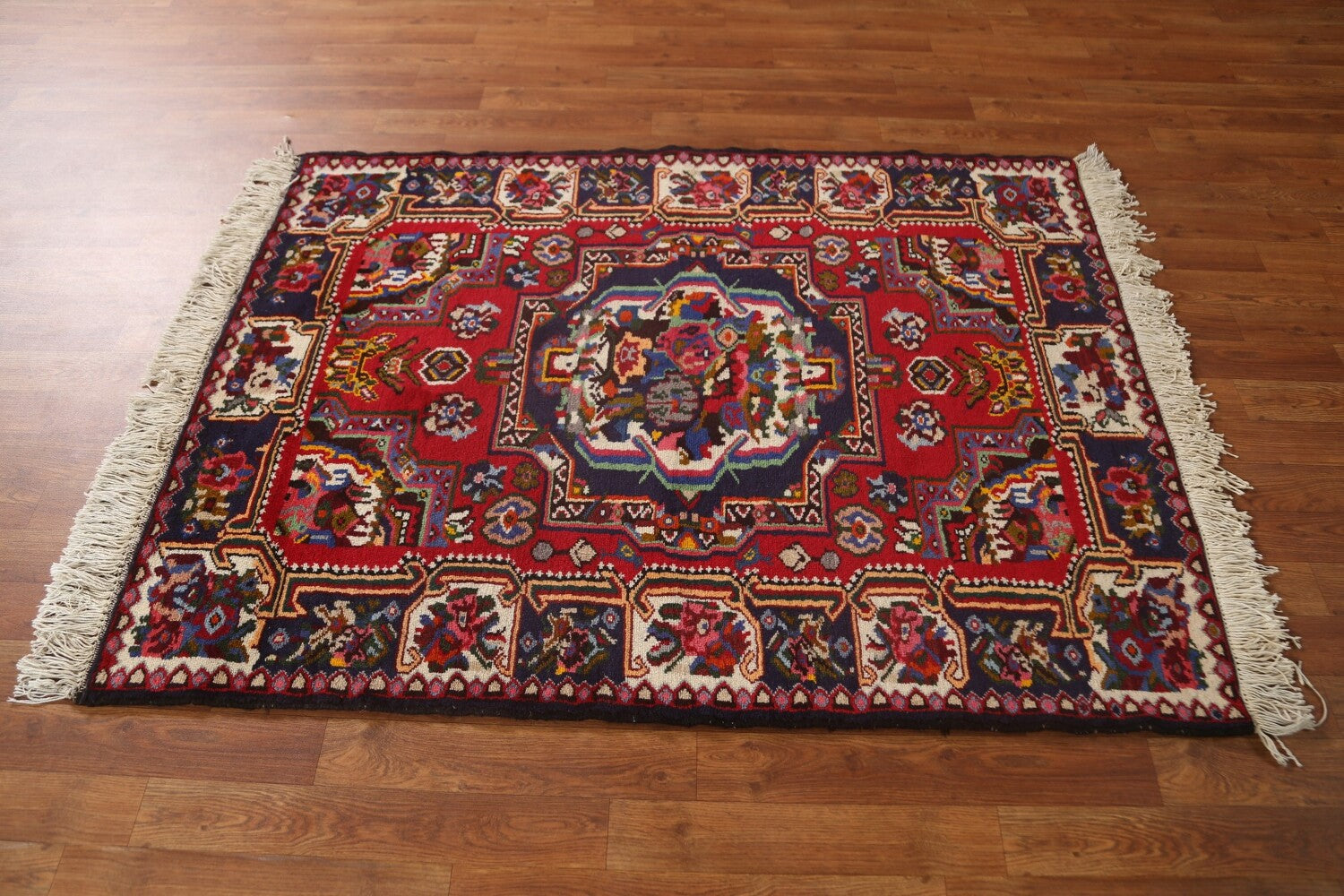 A Beautiful Genuine Persia ( Persia ) Bakhtiari rug is Hand Knotted by skillful weavers in Persia ( Persia ) with 100% Wool Material. This rug is in New, First Quality condition. dimensions are 4' 10'' X 3' 8'' in foot and 147 X 112 in centimeter. the primary color is Red.