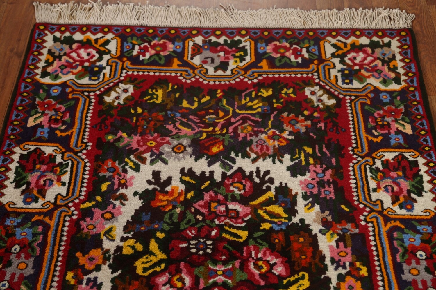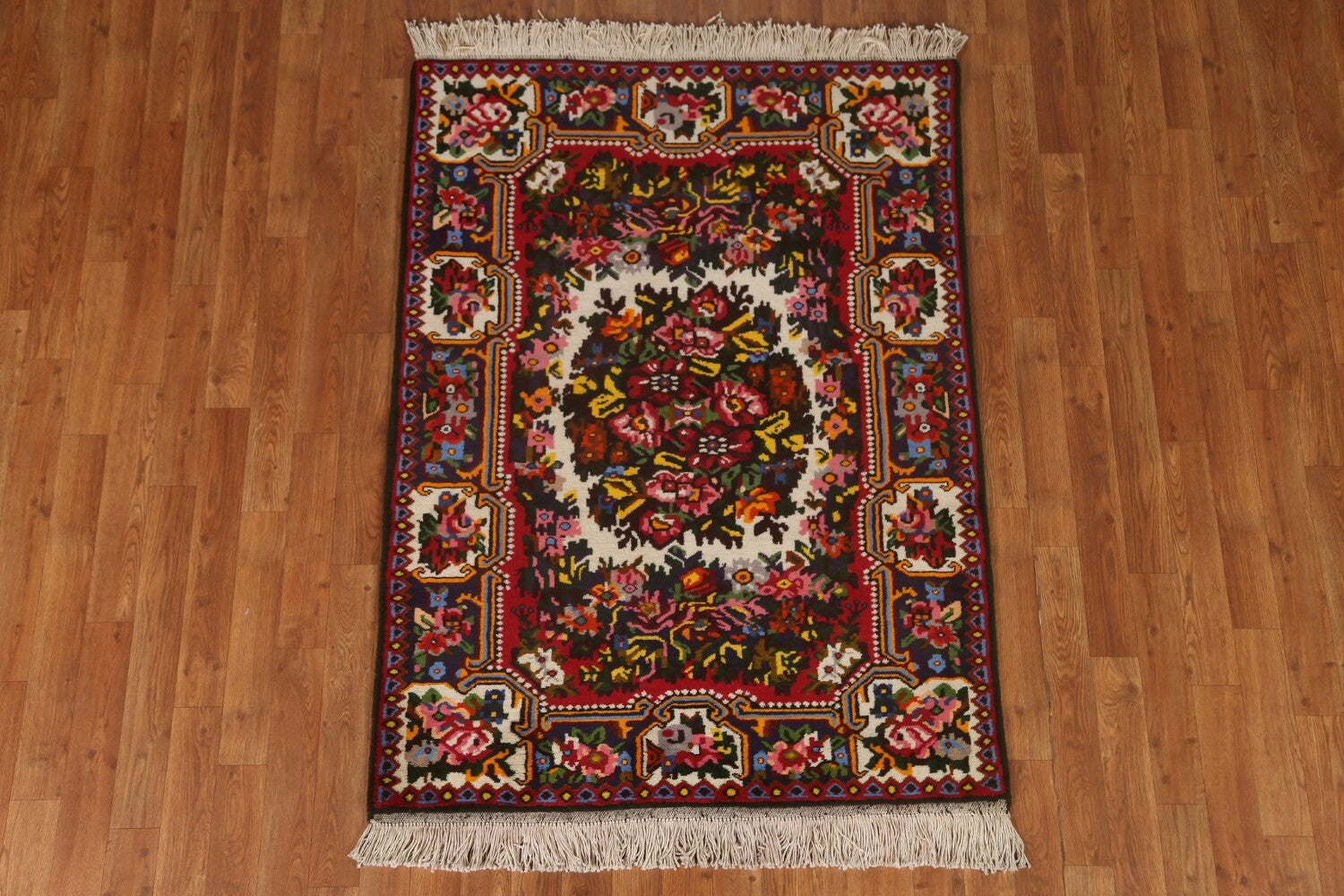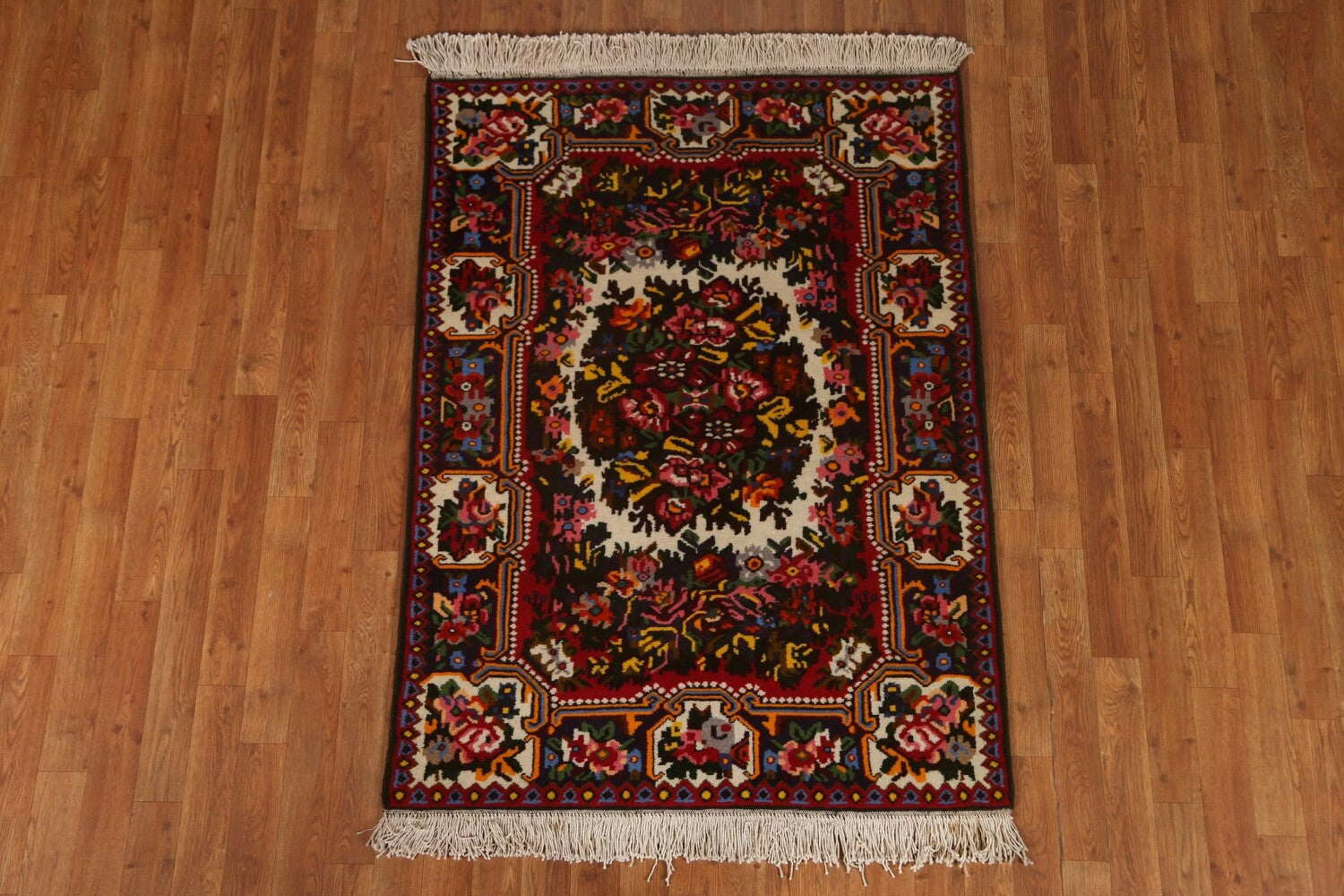 A Beautiful Genuine Persia ( Persia ) Bakhtiari rug is Hand Knotted by skillful weavers in Persia ( Persia ) with 100% Wool Material. This rug is in New, First Quality condition. dimensions are 4' 9'' X 3' 6'' in foot and 145 X 107 in centimeter. the primary color is Beige & Ivories.