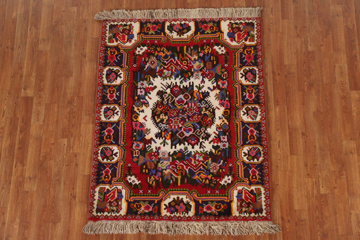 A Beautiful Genuine Persia ( Persia ) Bakhtiari rug is Hand Knotted by skillful weavers in Persia ( Persia ) with 100% Wool Material. This rug is in New, First Quality condition. dimensions are 4' 9'' X 3' 9'' in foot and 145 X 114 in centimeter. the primary color is Beige & Ivories.