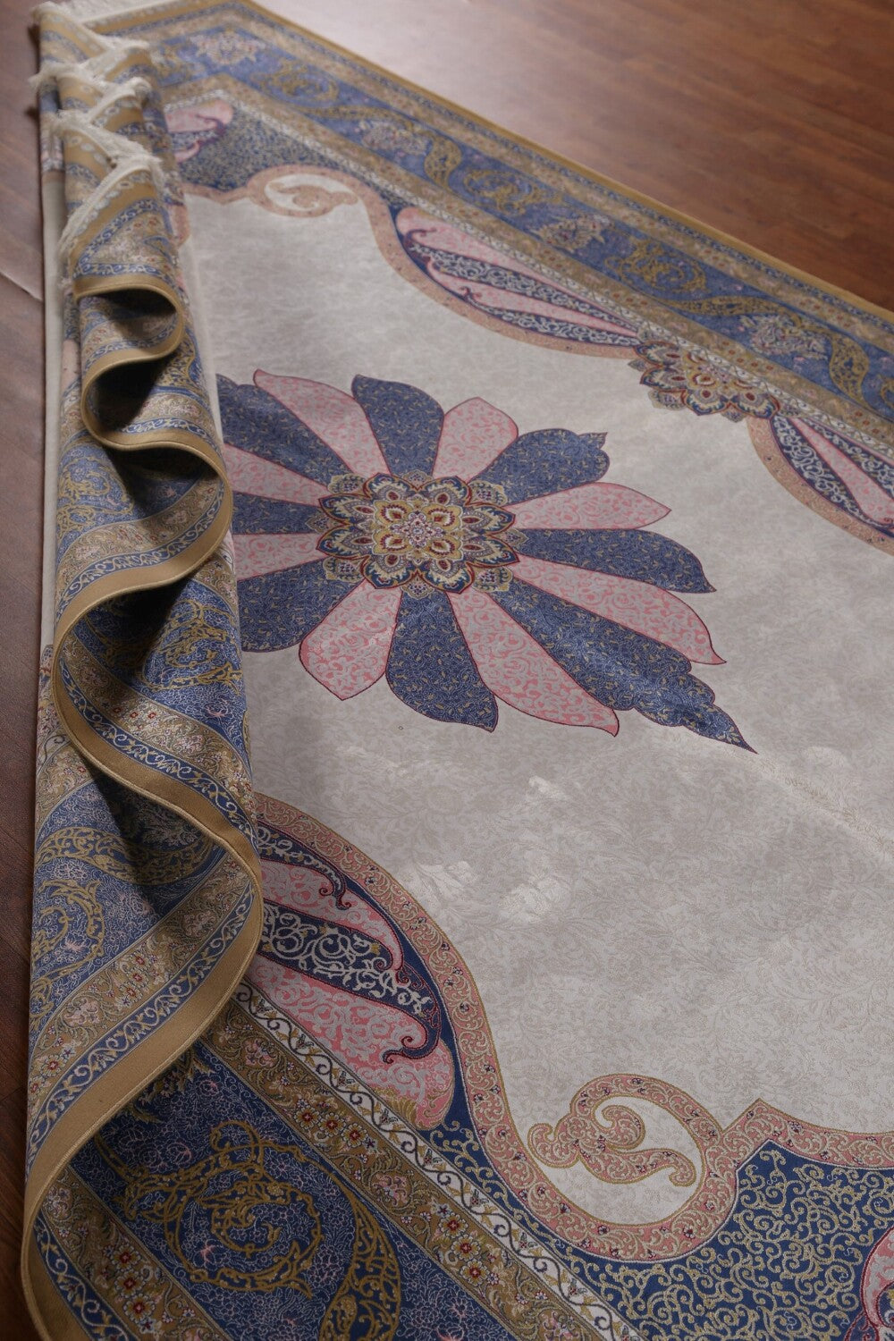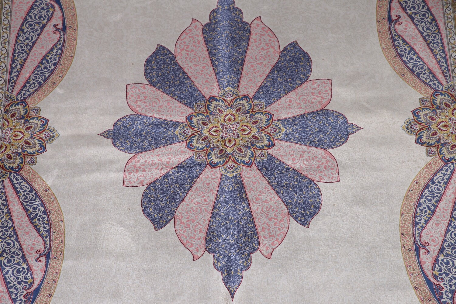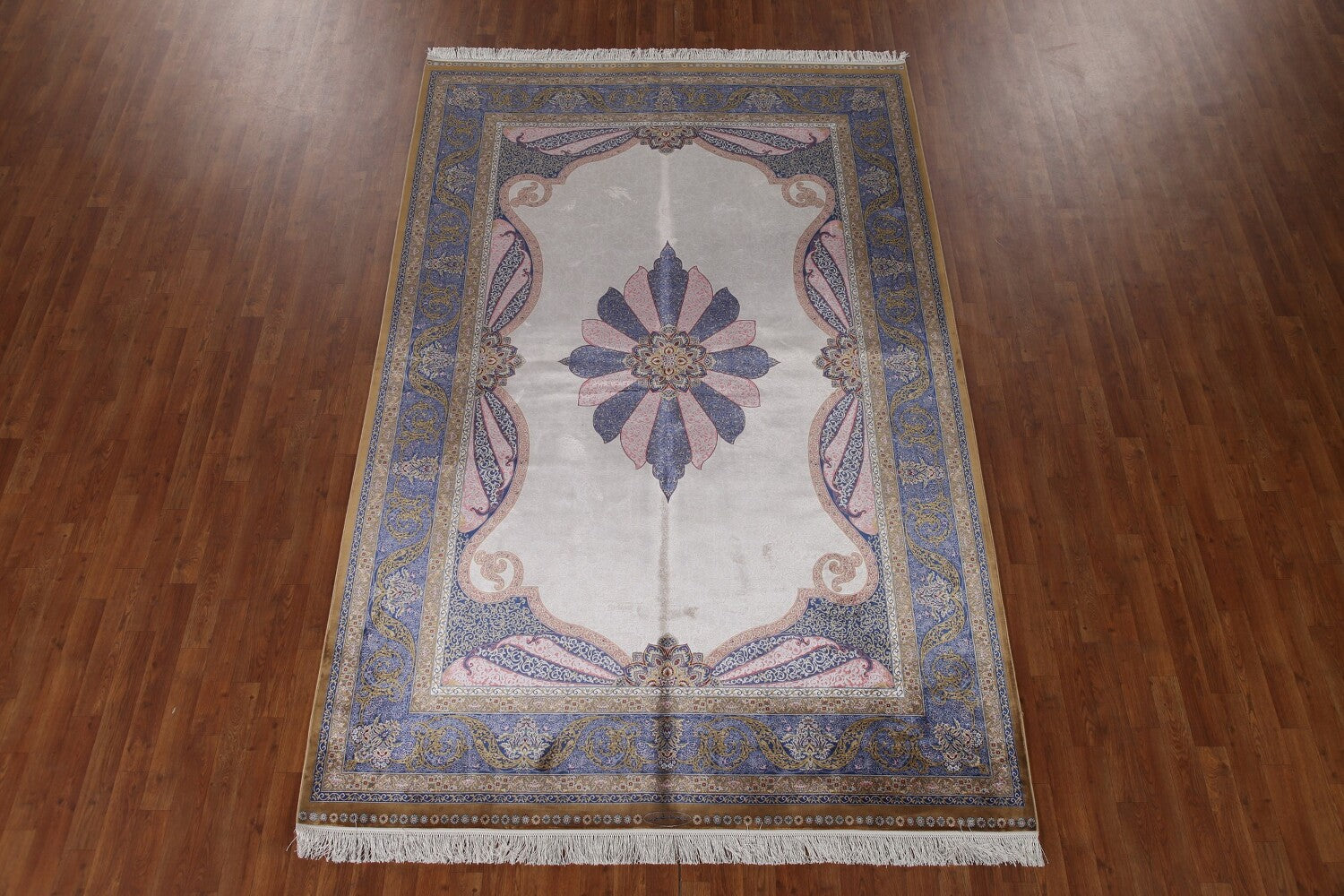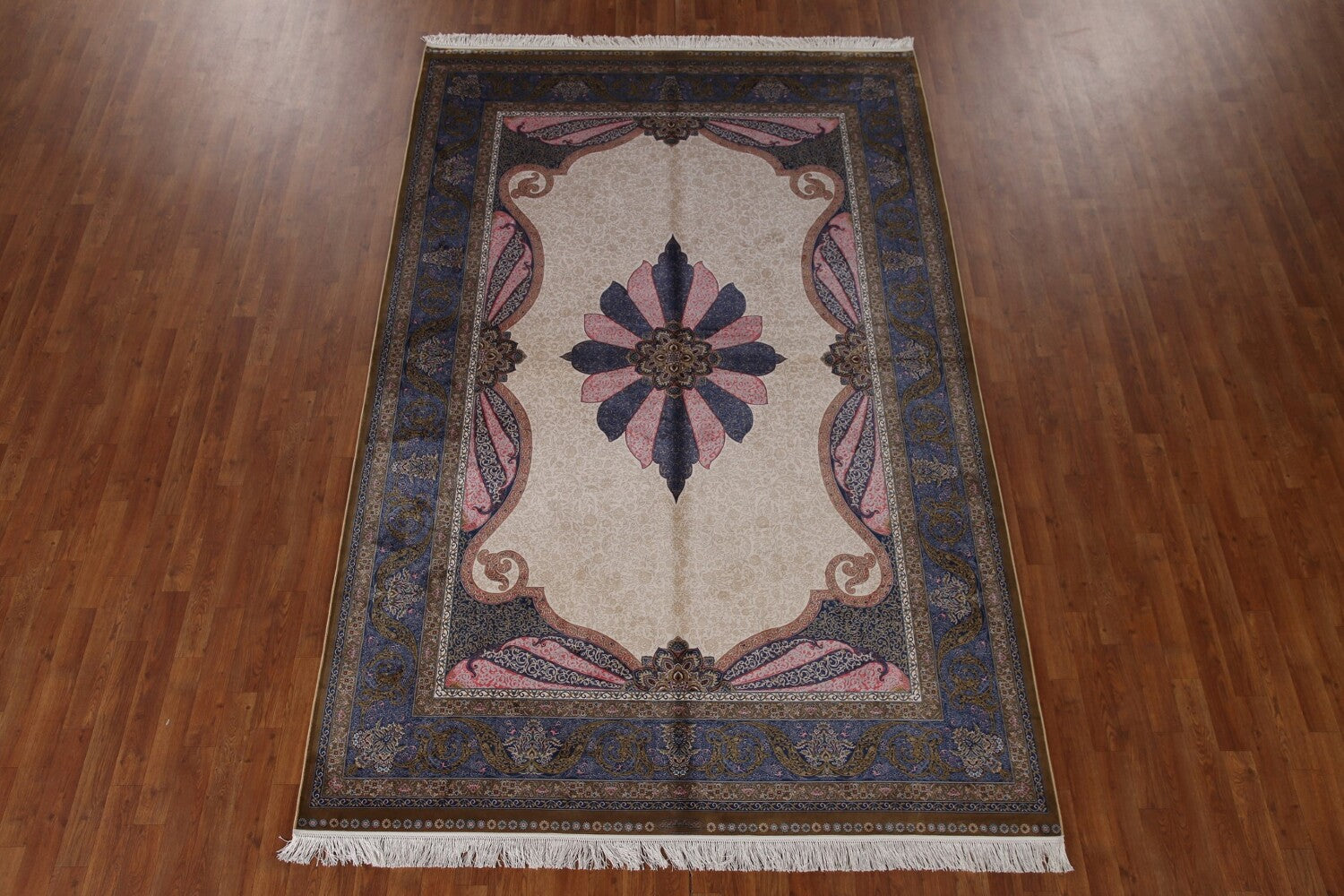 A Beautiful Genuine Turkey Qum rug is Machine Made by skillful weavers in Turkey with 90% Silk - 10% Polyester Material. This rug is in condition. dimensions are 10' 0'' X 6' 5'' in foot and 305 X 196 in centimeter. the primary color is Beige & Ivories.