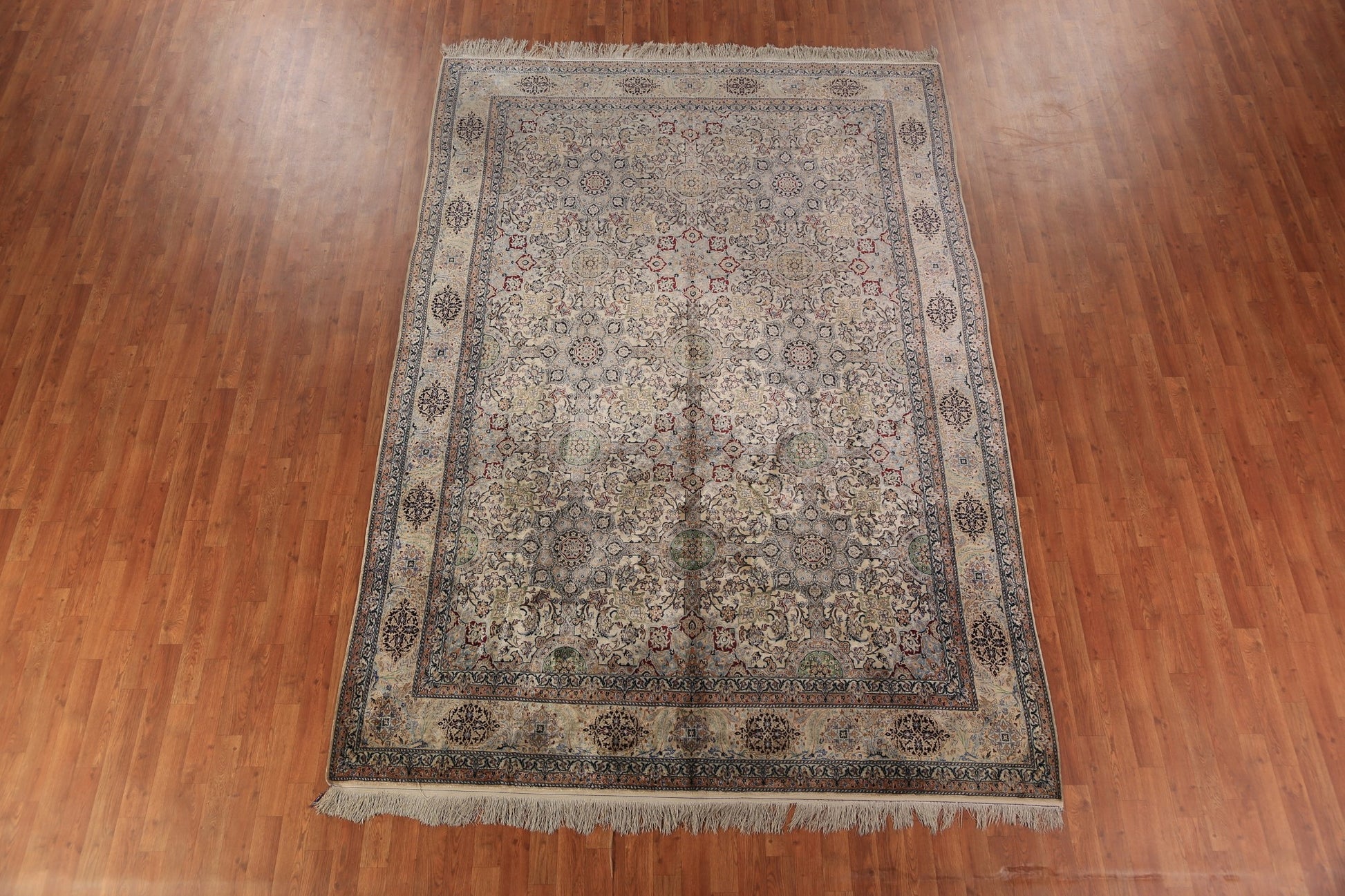 Vintage 100% Silk Handmade Nain Persian Area Rug 7x11
