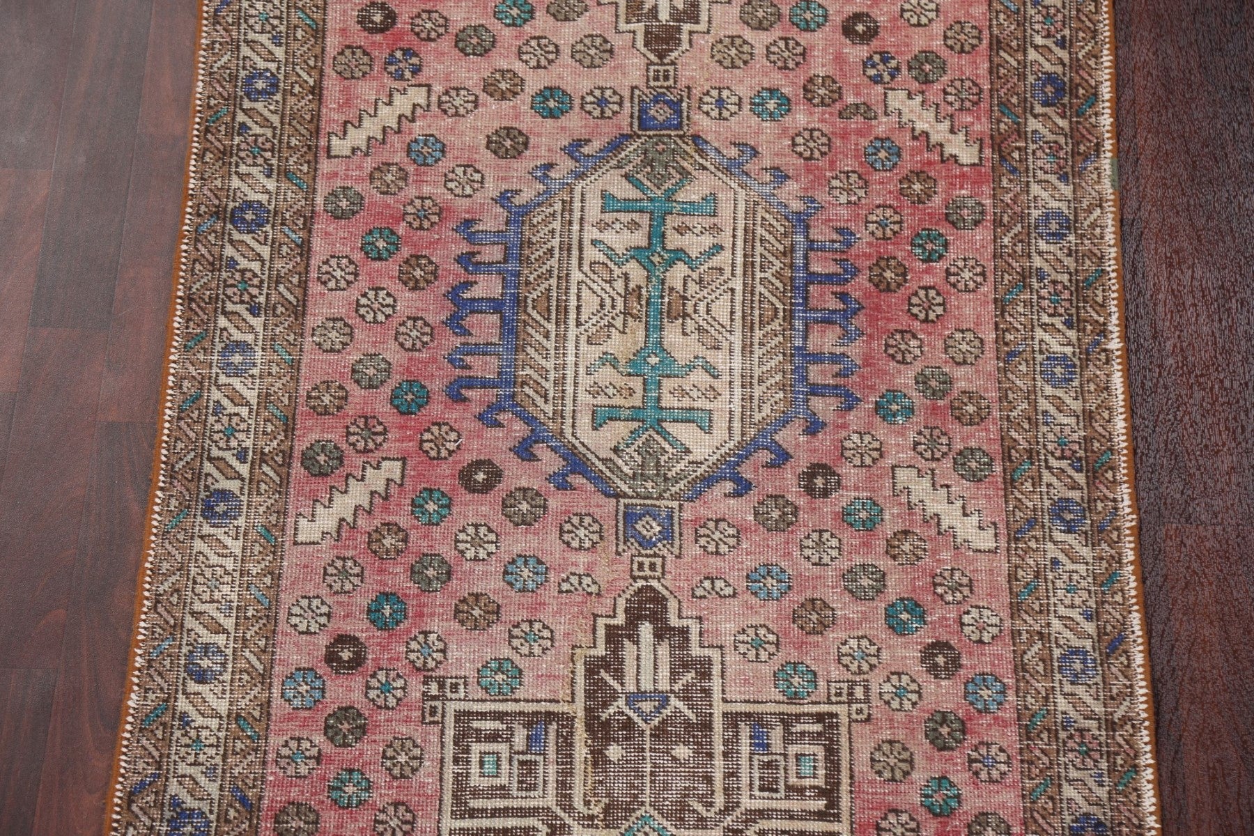 A Beautiful Genuine Persia ( Persia ) Ardebil rug is Hand Knotted by skillful weavers in Persia ( Persia ) with 100% Wool Material. This rug is in Good (Evenly Low Pile) condition. dimensions are 12' 6'' X 3' 4'' in foot and 381 X 102 in centimeter. the primary color is Pink.