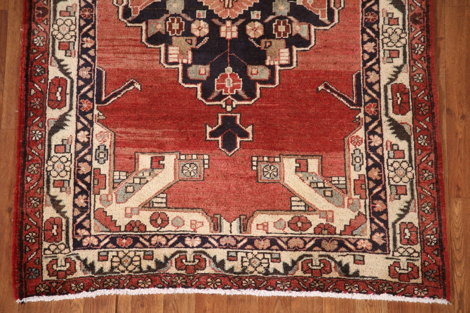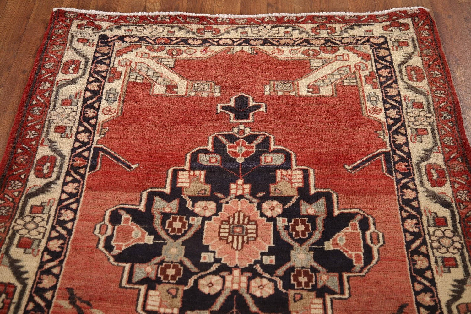 A Beautiful Genuine Persia ( Persia ) Ardebil rug is Hand Knotted by skillful weavers in Persia ( Persia ) with 100% Wool Material. This rug is in Very Good (Abrash-Low Pile) condition. dimensions are 11' 5'' X 3' 9'' in foot and 348 X 114 in centimeter. the primary color is Red.