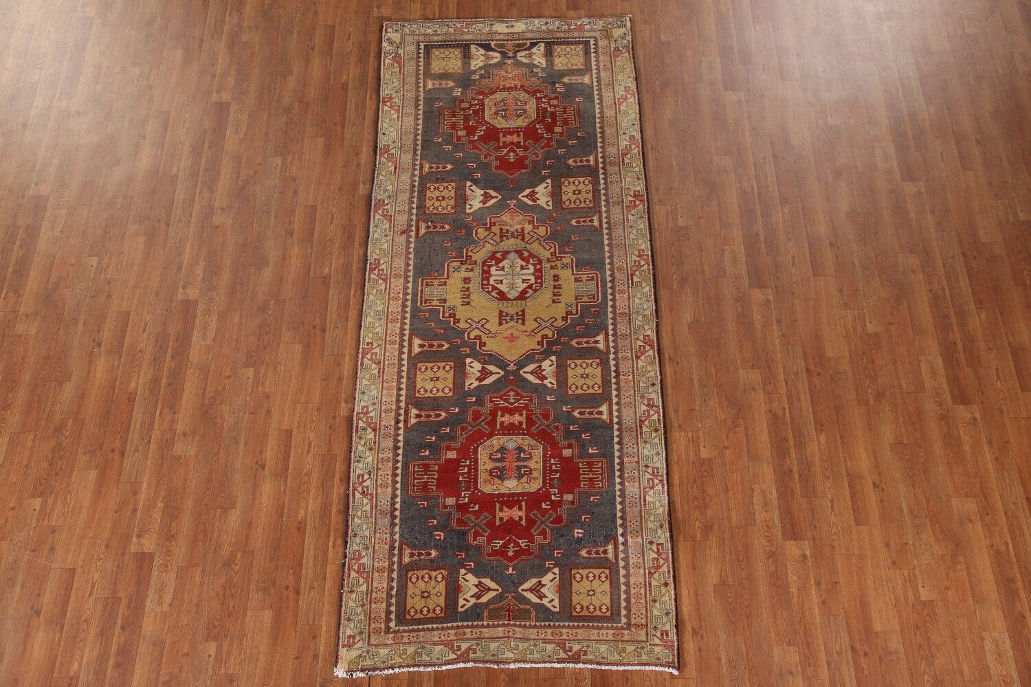 A Beautiful Genuine Persia ( Persia ) Ardebil rug is Hand Knotted by skillful weavers in Persia ( Persia ) with 100% Wool Material. This rug is in Very Good (Low Pile-Abrash) condition. dimensions are 9' 4'' X 3' 9'' in foot and 284 X 114 in centimeter. the primary color is Greys & Charcoal.