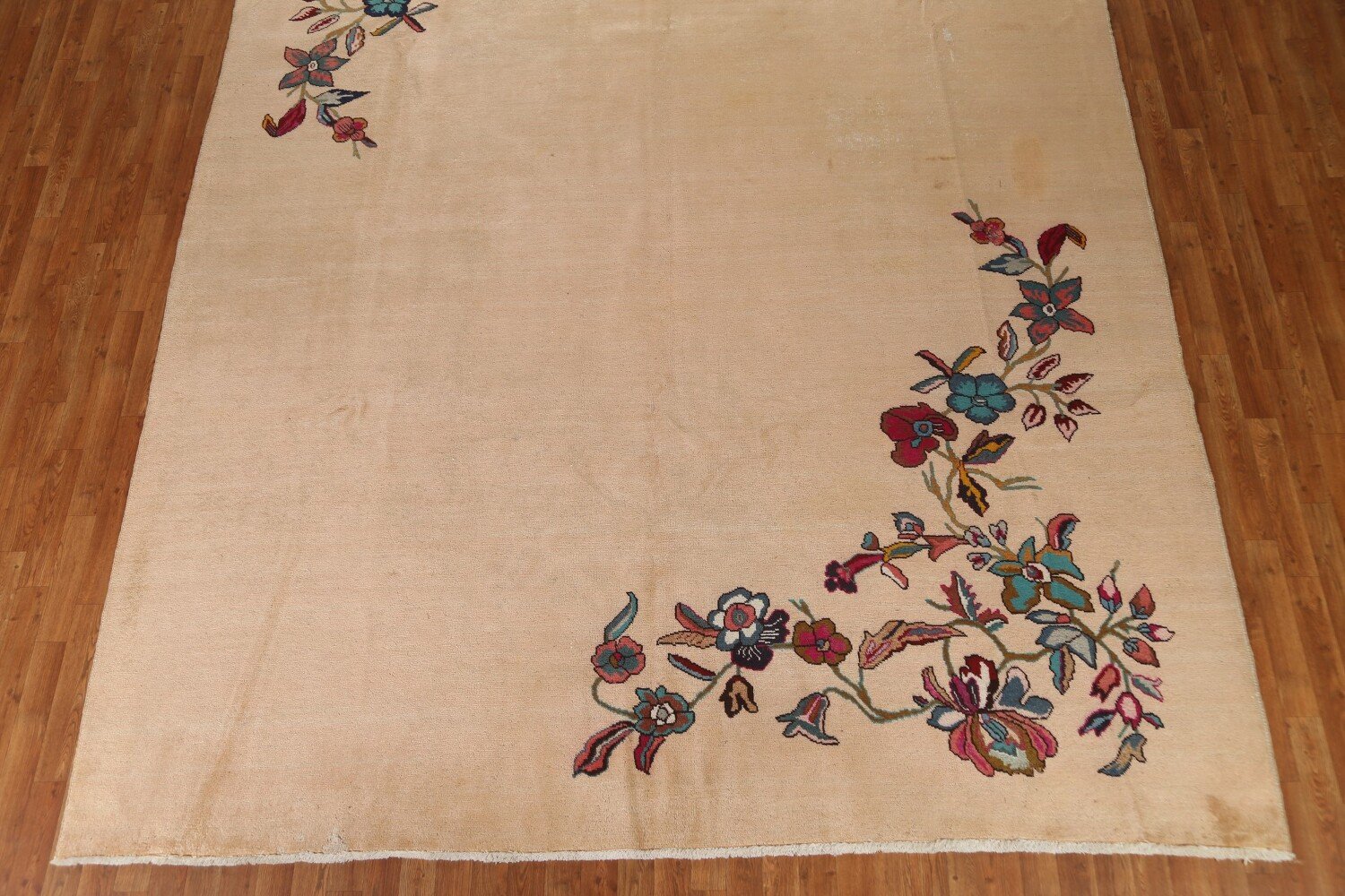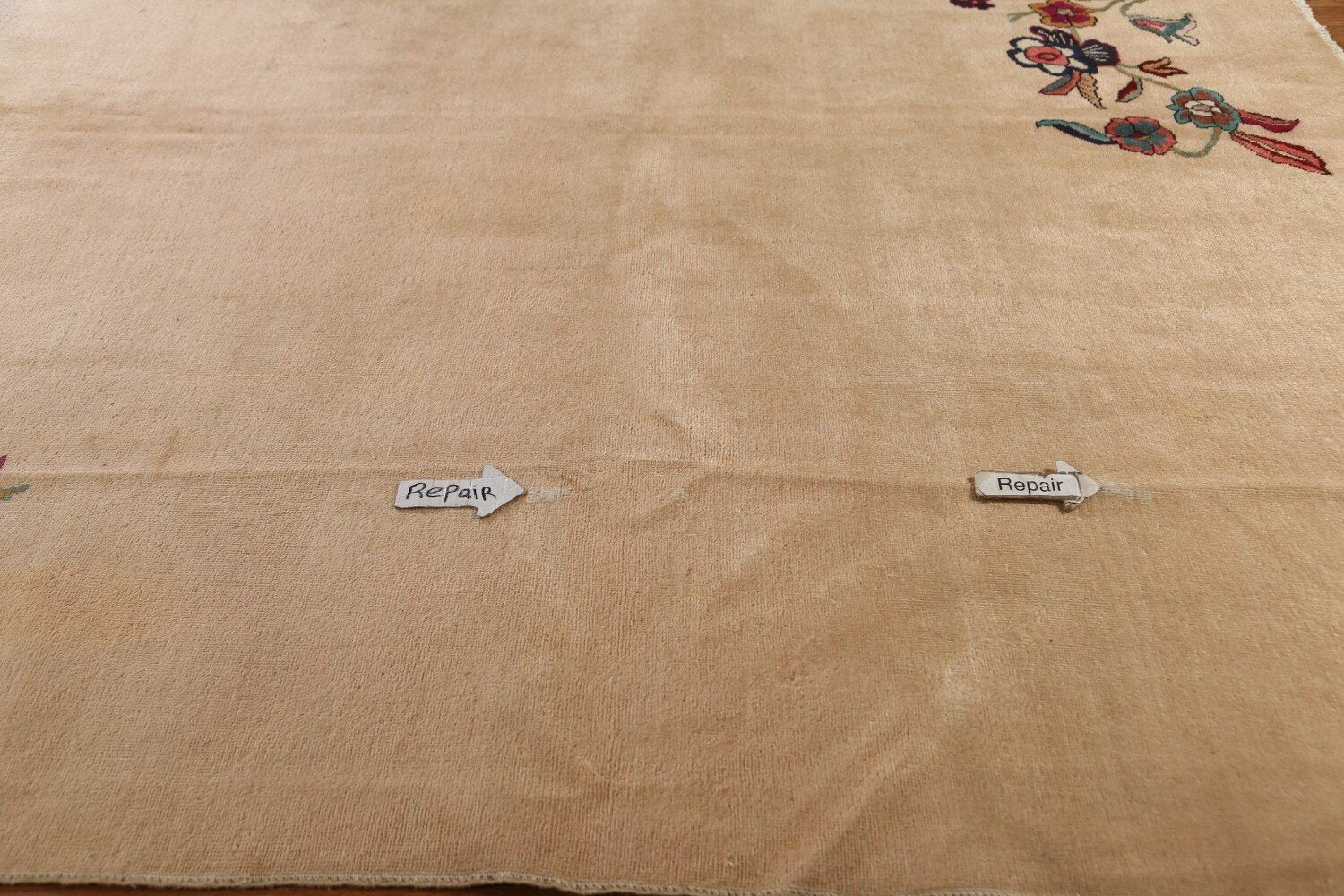 A Beautiful Genuine China Art Deco rug is Hand Knotted by skillful weavers in China with 100% Wool Material. This rug is in Very Good (Low Pile-Repairs) condition. dimensions are 12' 10'' X 9' 5'' in foot and 391 X 287 in centimeter. the primary color is Beige & Ivories.