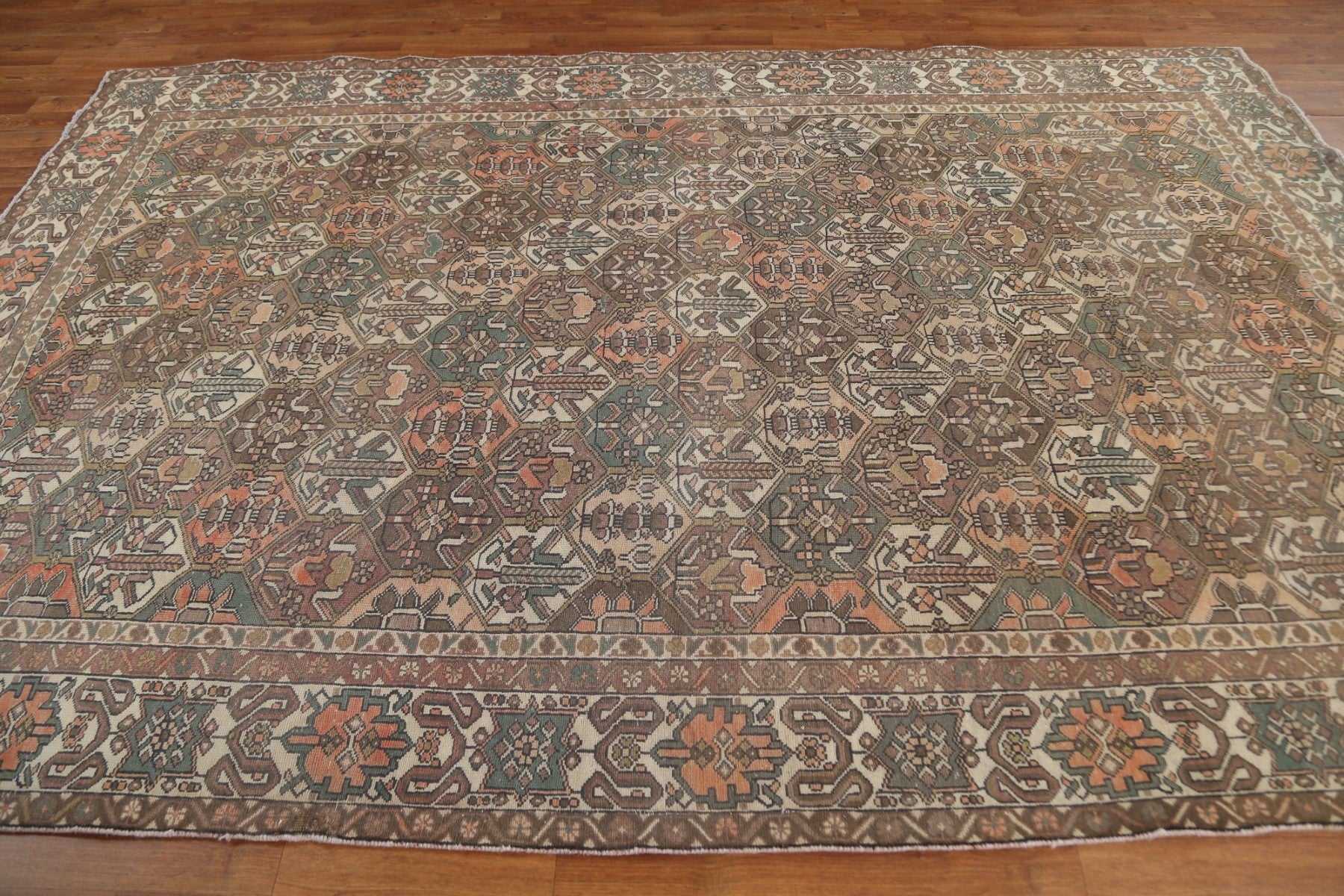 A Beautiful Genuine Persia ( Persia ) Bakhtiari rug is Hand Knotted by skillful weavers in Persia ( Persia ) with 100% Wool Material. This rug is in Very Good (Evenly Low Pile) condition. dimensions are 10' 0'' X 6' 5'' in foot and 305 X 196 in centimeter. the primary color is Multi-Colored.