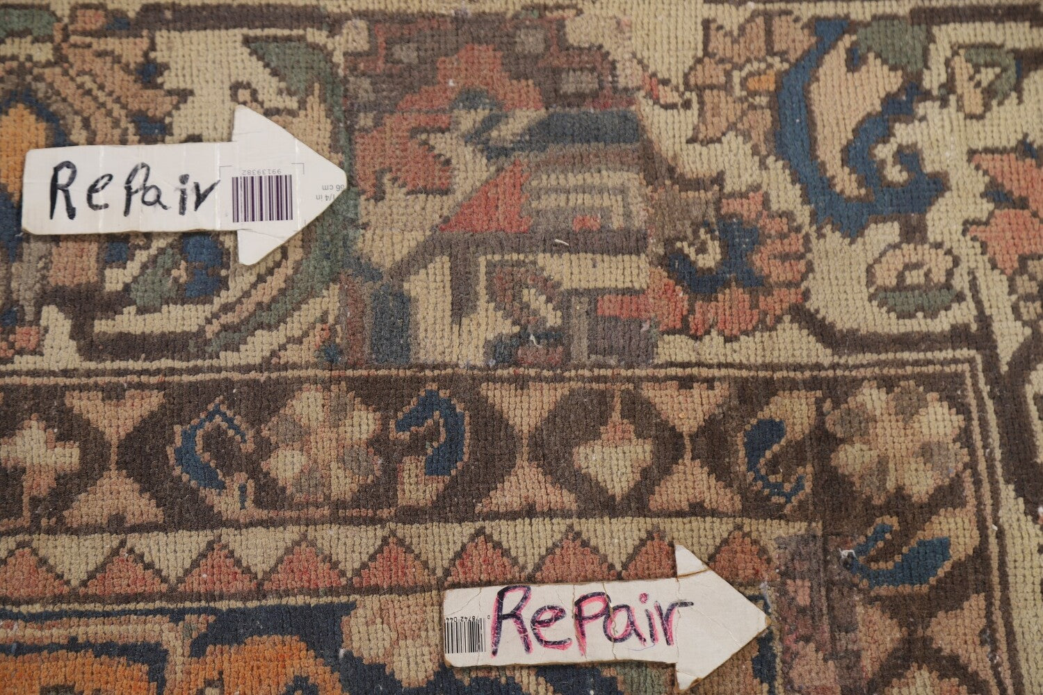 A Beautiful Genuine Persia ( Persia ) Bakhtiari rug is Hand Knotted by skillful weavers in Persia ( Persia ) with 100% Wool Material. This rug is in Very Good (Repairs) condition. dimensions are 12' 3'' X 8' 10'' in foot and 373 X 269 in centimeter. the primary color is Pink.