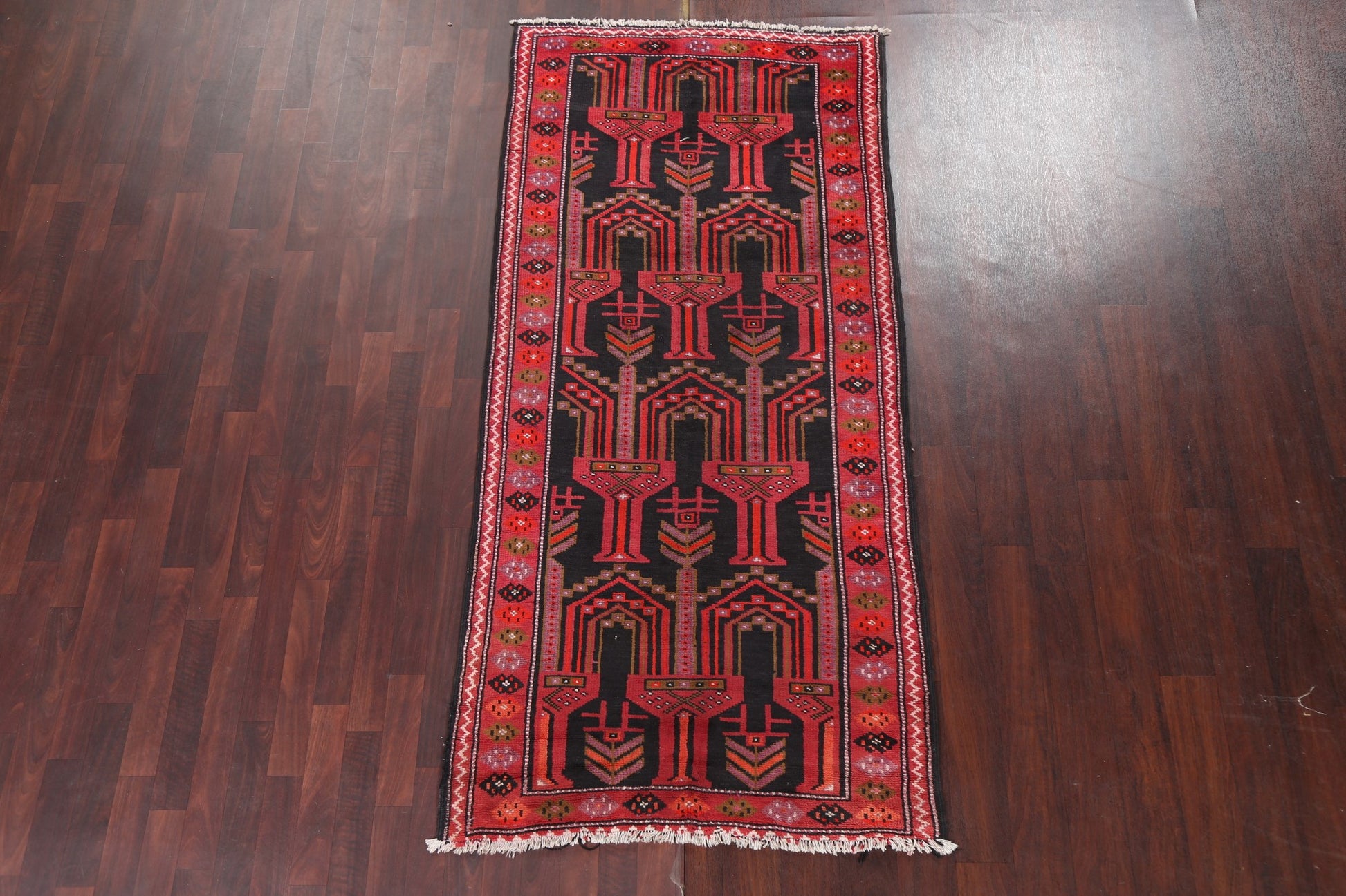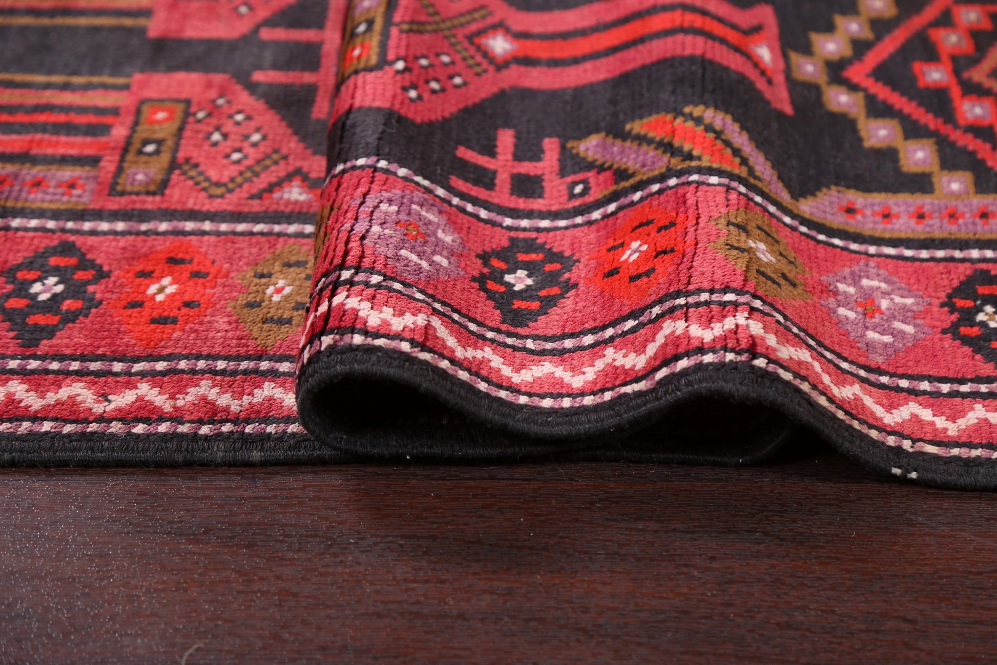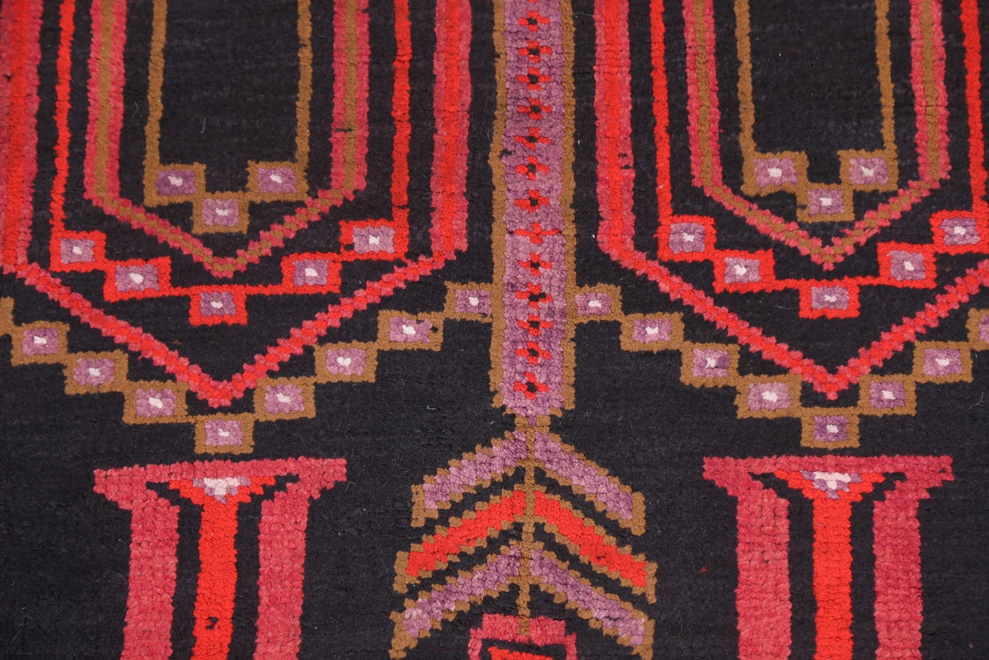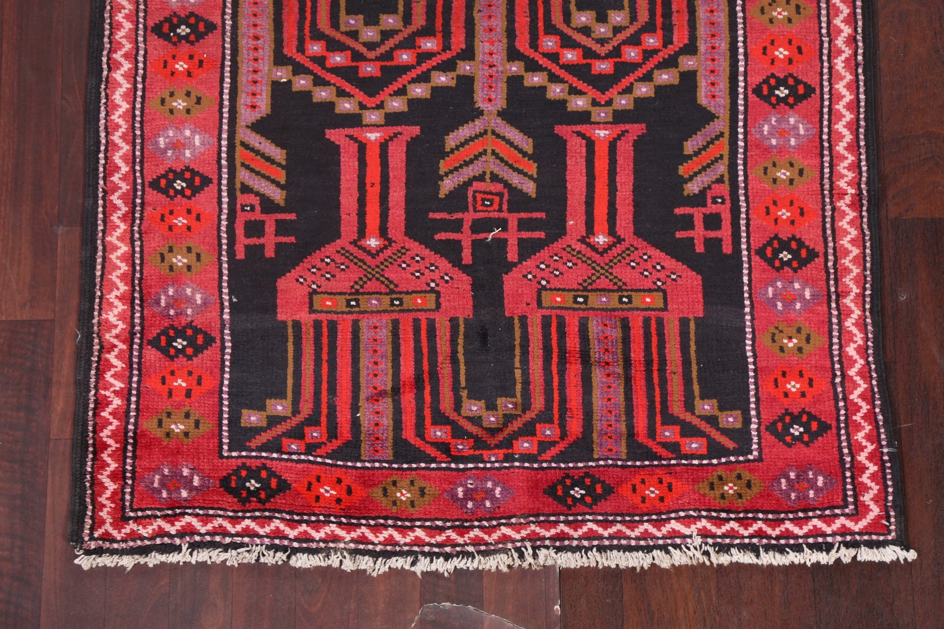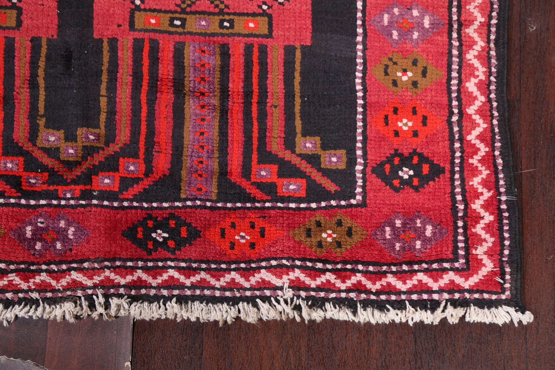 Vintage Black & Red Balouch Persian Wool Rug 4x8
