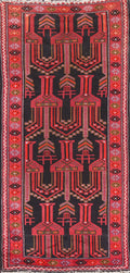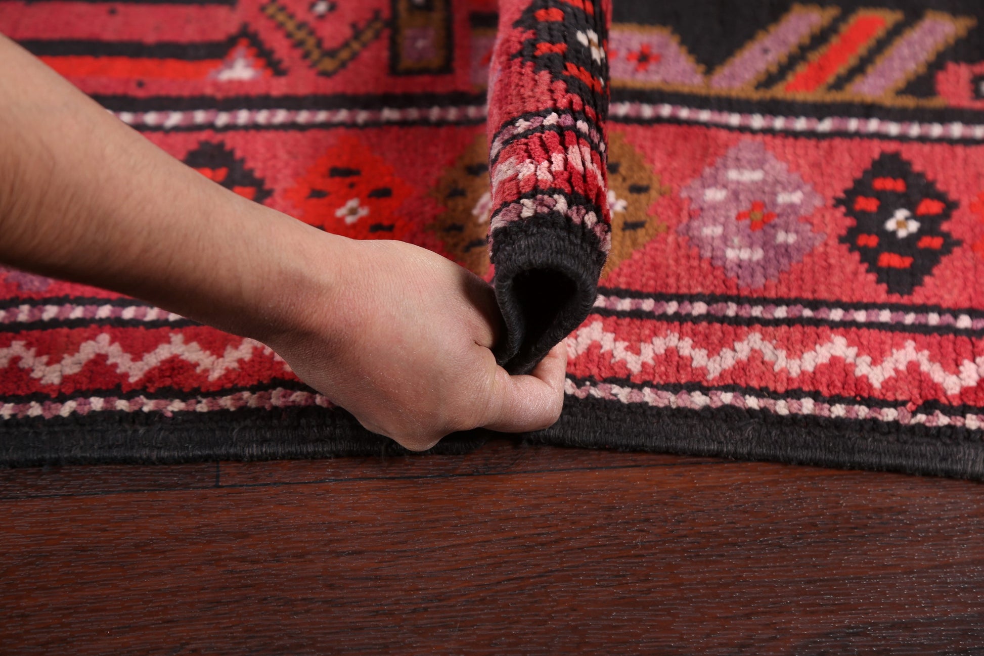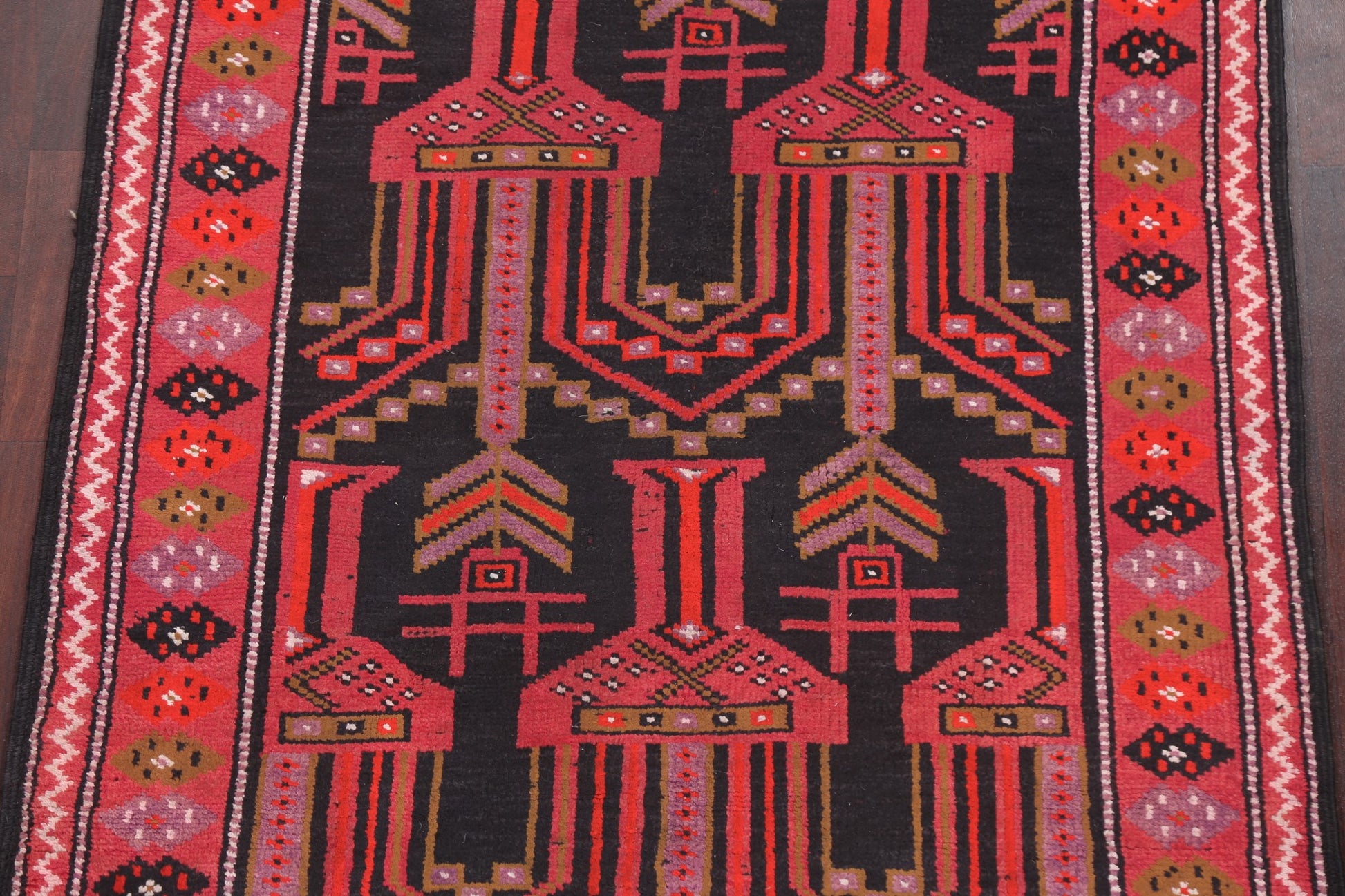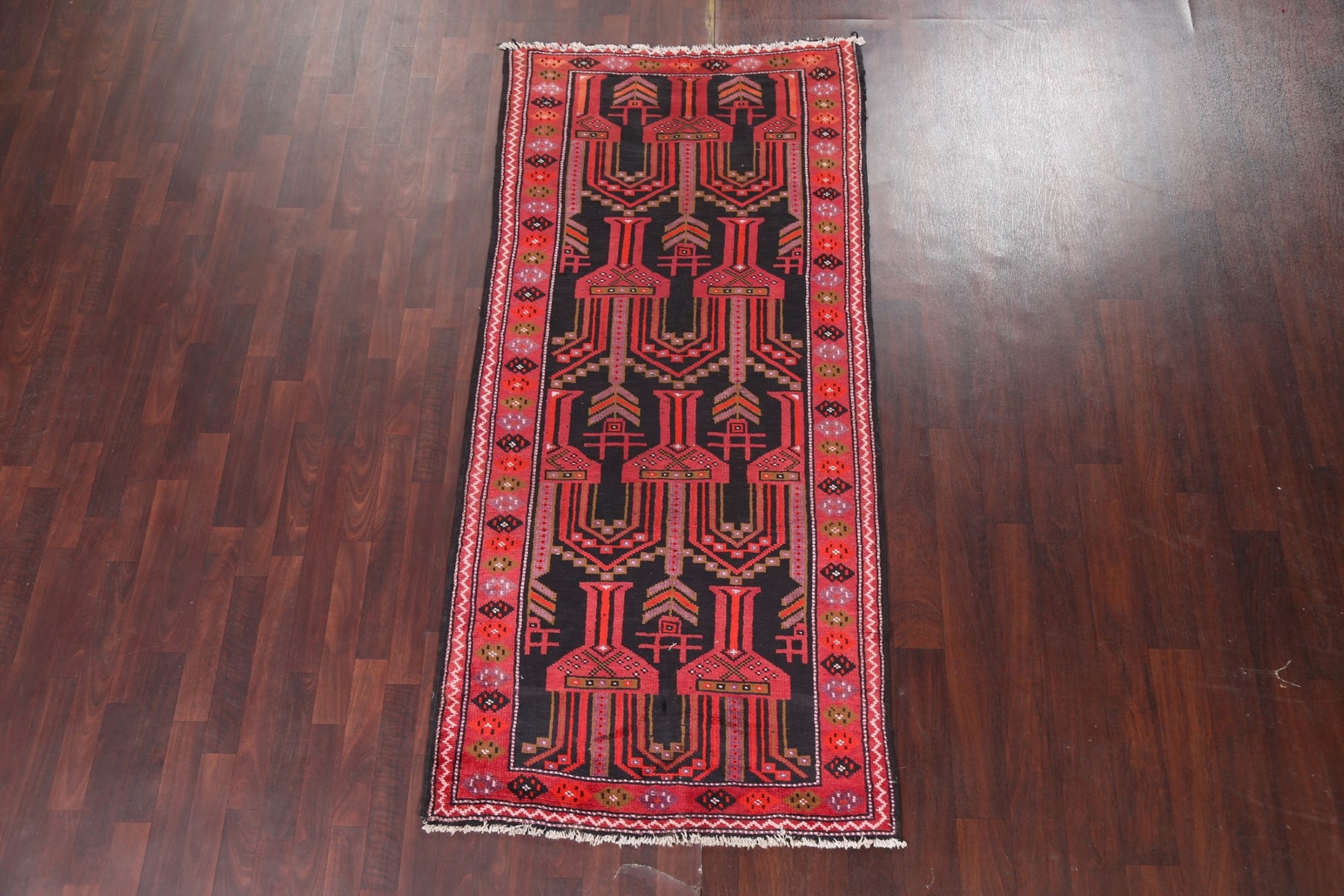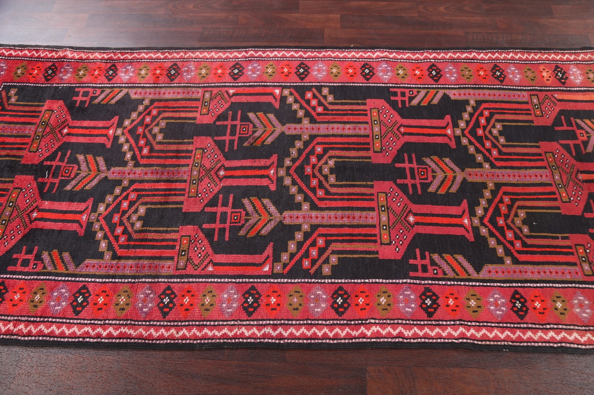 Vintage Black & Red Balouch Persian Wool Rug 4x8