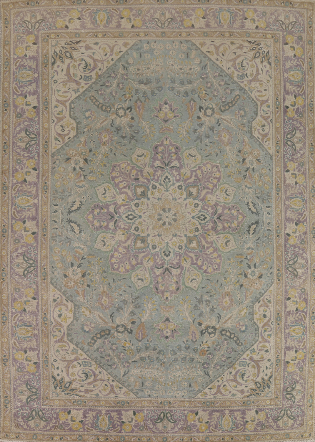 A Beautiful Genuine Persia ( Persia ) Tabriz rug is Hand Knotted by skillful weavers in Persia ( Persia ) with 100% Wool Material. This rug is in Very Good (Evenly Low Pile) condition. dimensions are 11' 3'' X 8' 5'' in foot and 343 X 257 in centimeter. the primary color is Navy Blue & Blues.