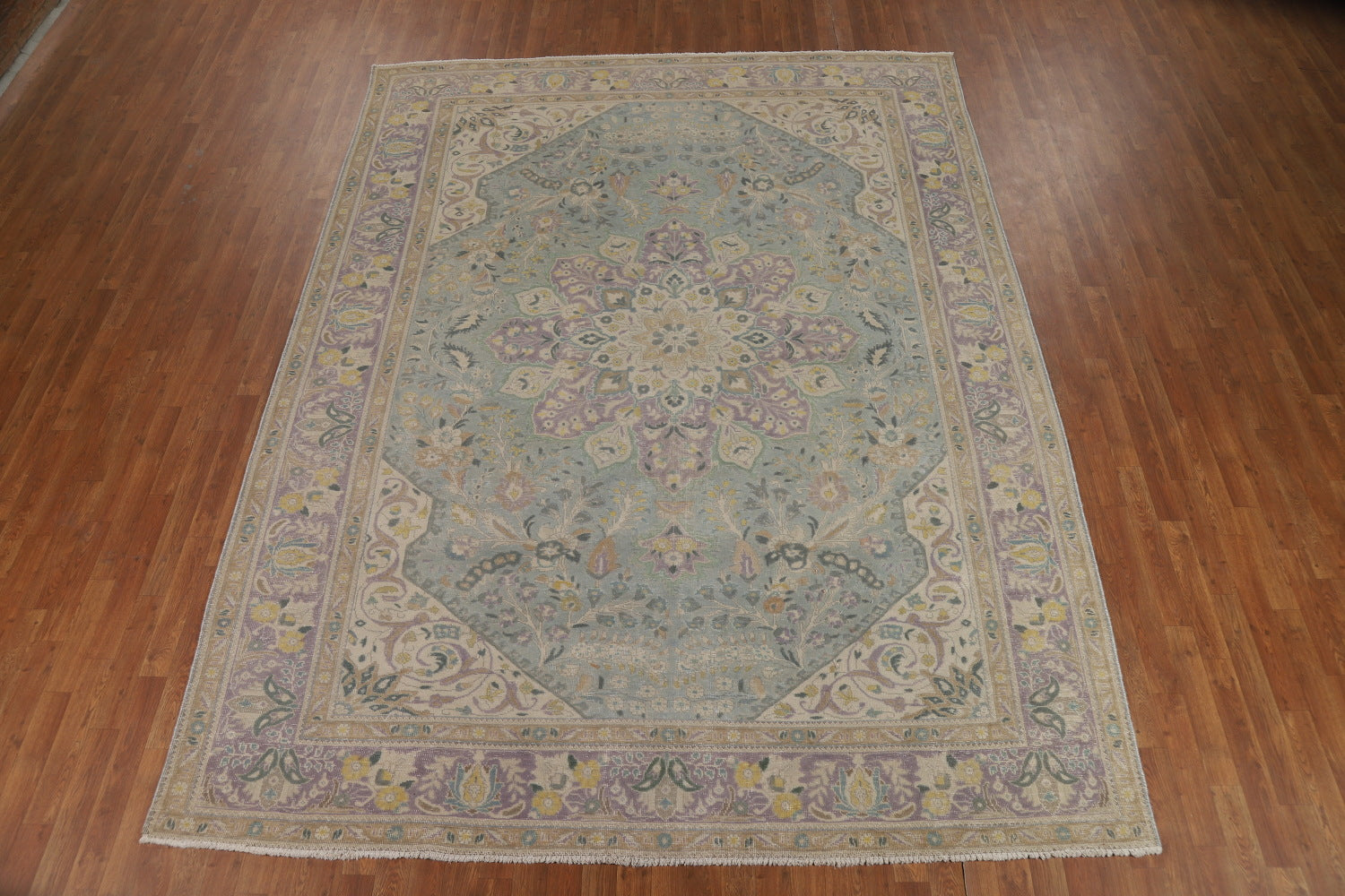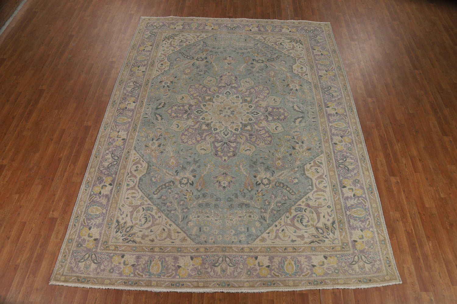 Vintage Blue Floral Tabriz Persian Area Rug 8x11