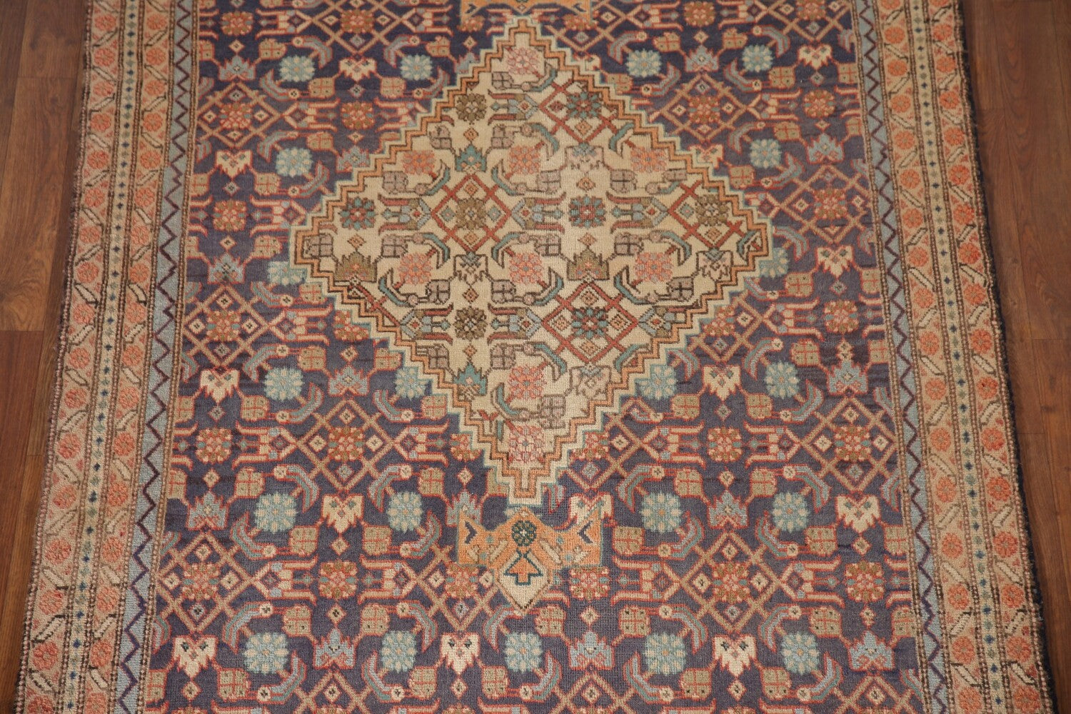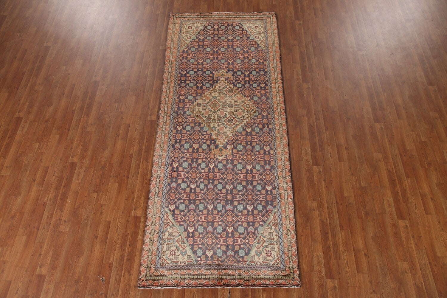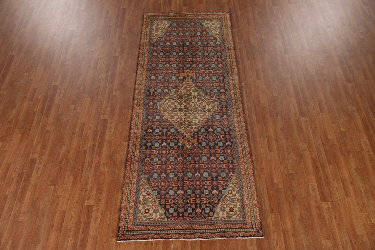Vintage Blue Hamedan Persian Runner Rug 4x10