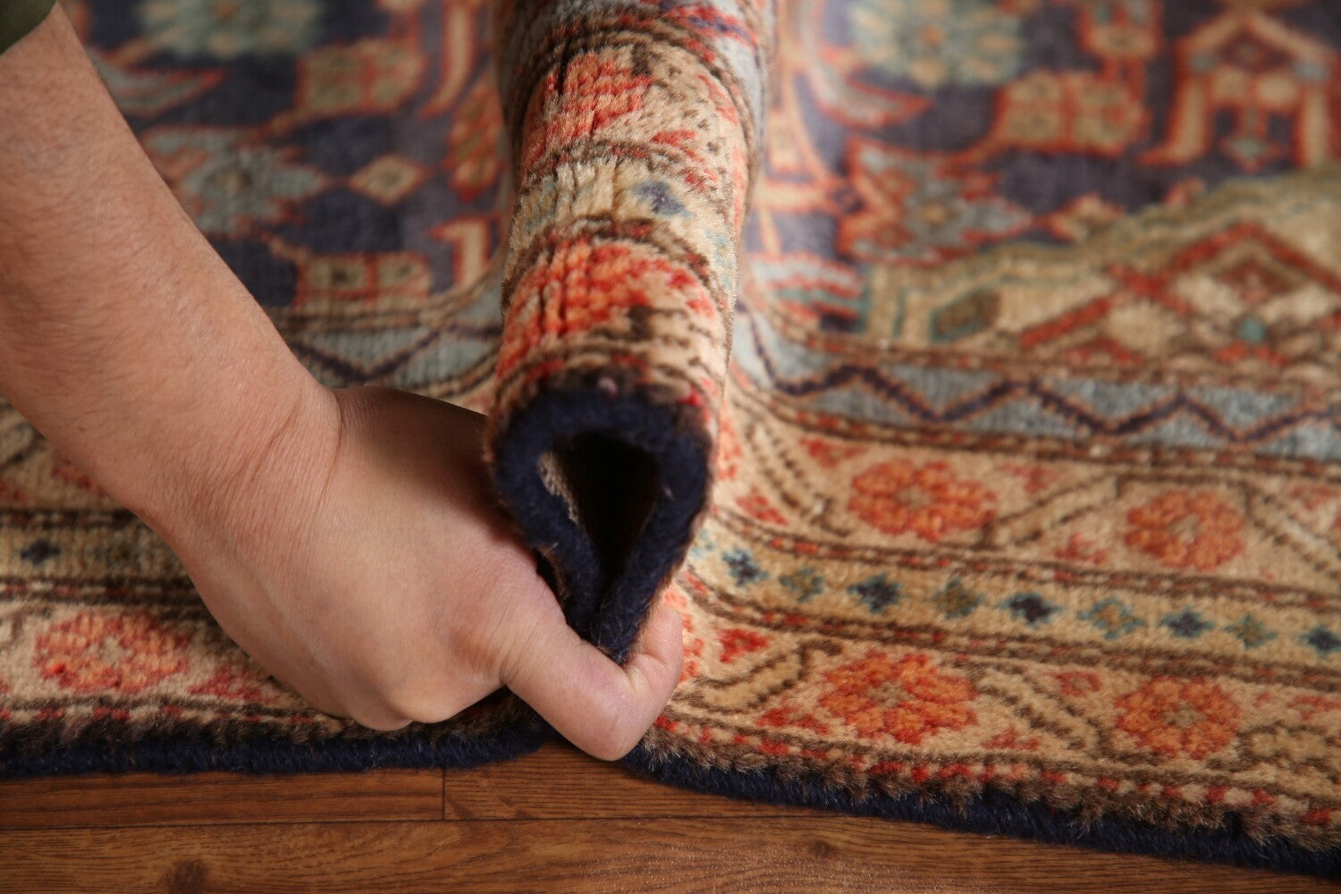 A Beautiful Genuine Persia ( Persia ) Hamedan rug is Hand Knotted by skillful weavers in Persia ( Persia ) with 100% Wool Material. This rug is in Very Good (Low Pile-Abrash) condition. dimensions are 10' 5'' X 4' 2'' in foot and 318 X 127 in centimeter. the primary color is Navy Blue & Blues.