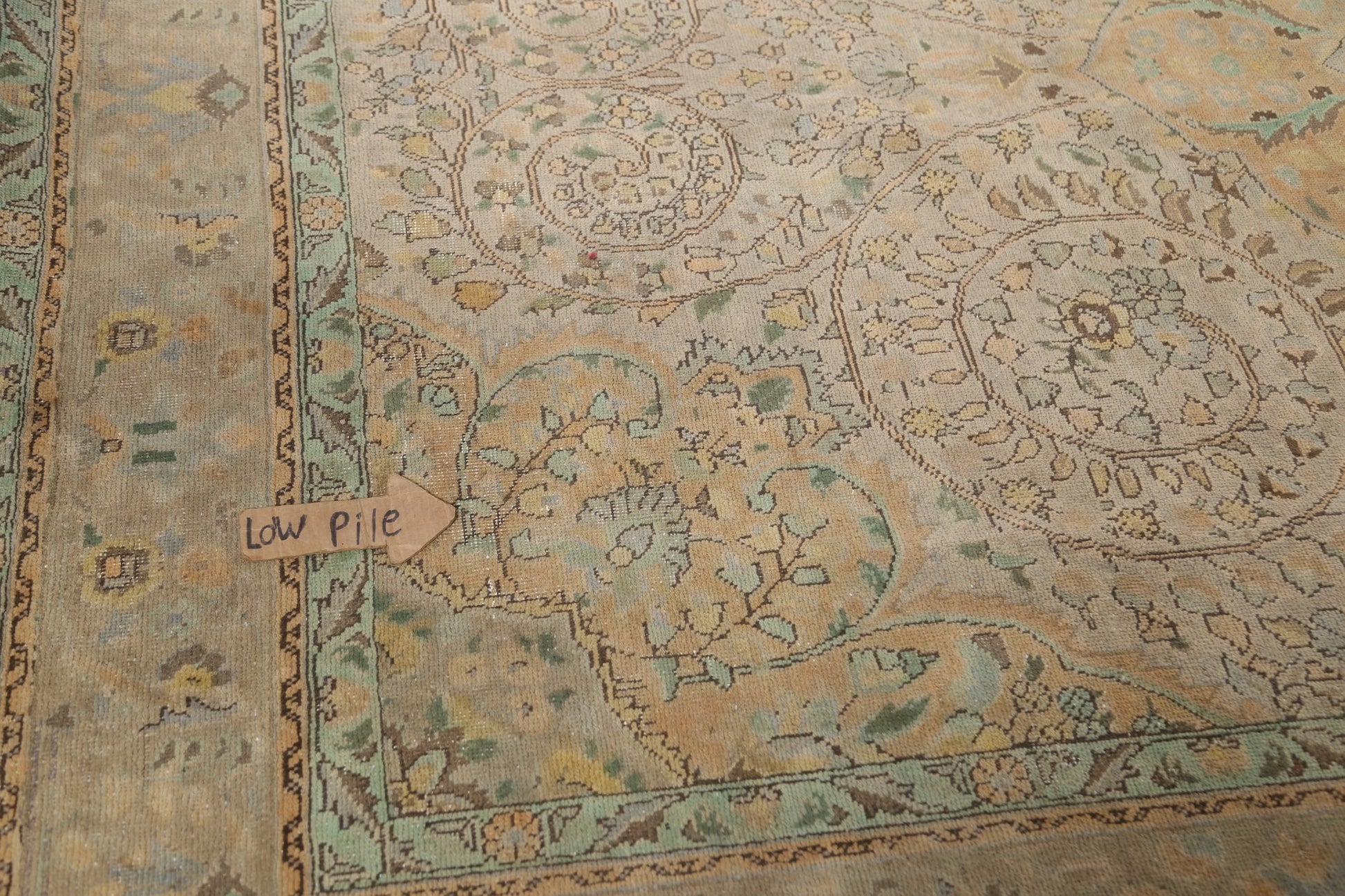 A Beautiful Genuine Persia ( Persia ) Tabriz rug is Hand Knotted by skillful weavers in Persia ( Persia ) with 100% Wool Material. This rug is in Very Good ( Low Pile ) condition. dimensions are 11' 9'' X 7' 10'' in foot and 358 X 239 in centimeter. the primary color is Brown.