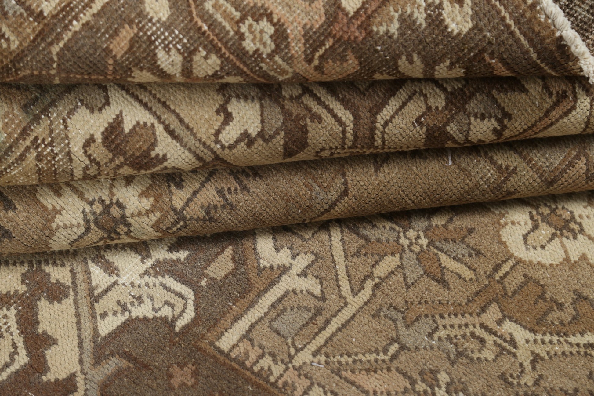 A Beautiful Genuine Persia ( Persia ) Heriz rug is Hand Knotted by skillful weavers in Persia ( Persia ) with 100% Wool Material. This rug is in Very Good (Evenly Low Pile) condition. dimensions are 10' 11'' X 7' 6'' in foot and 333 X 229 in centimeter. the primary color is Brown.