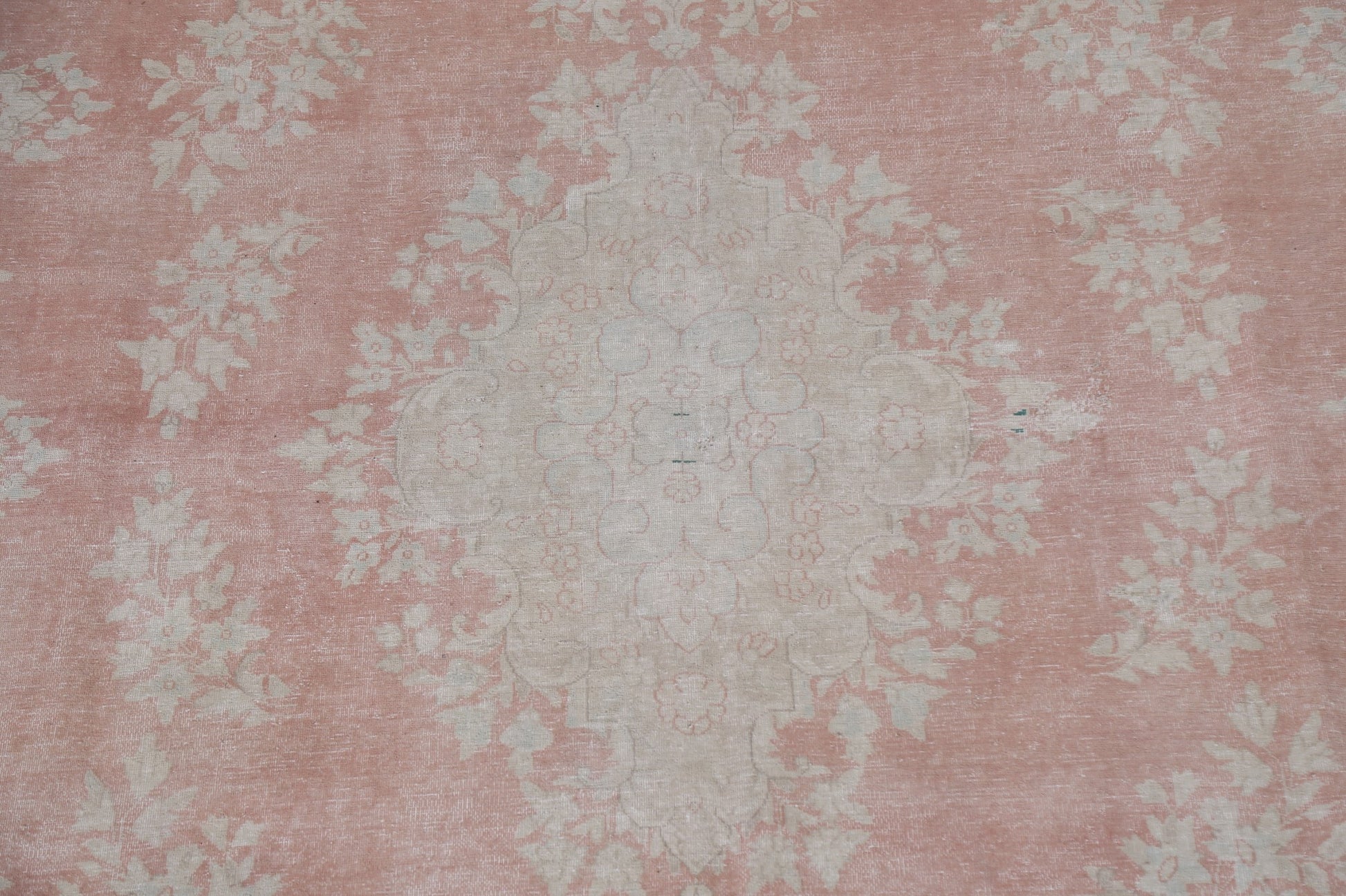 A Beautiful Genuine Persia ( Persia ) Kerman rug is Hand Knotted by skillful weavers in Persia ( Persia ) with 100% Wool Material. This rug is in Very Good (Evenly Low Pile) condition. dimensions are 12' 8'' X 8' 11'' in foot and 386 X 272 in centimeter. the primary color is Pink.