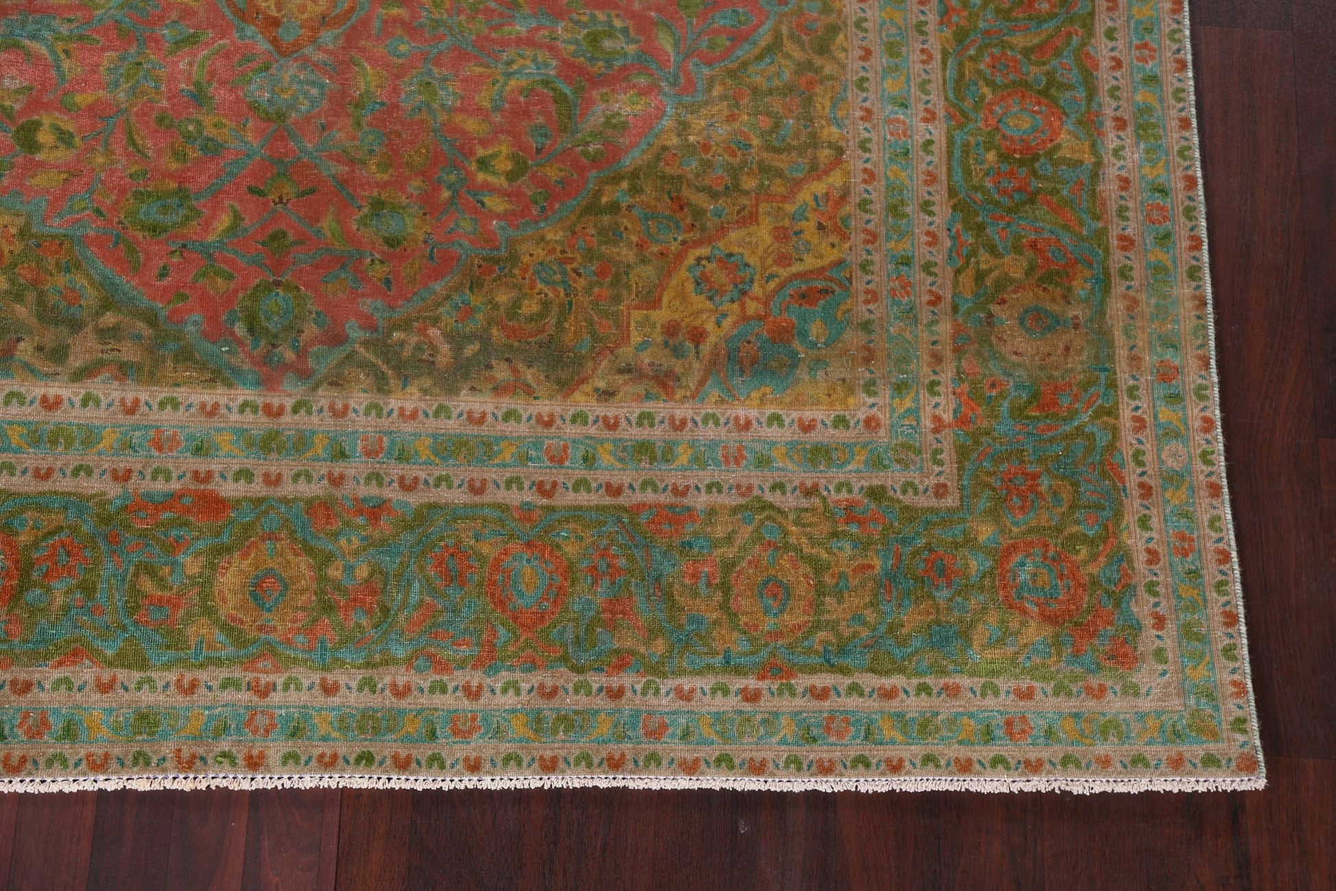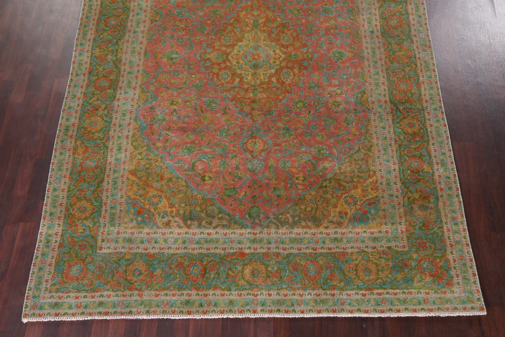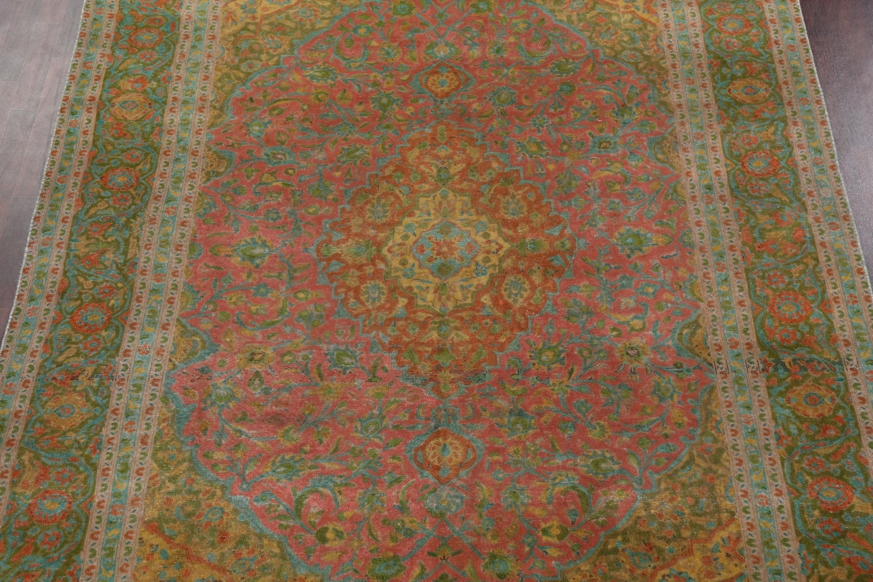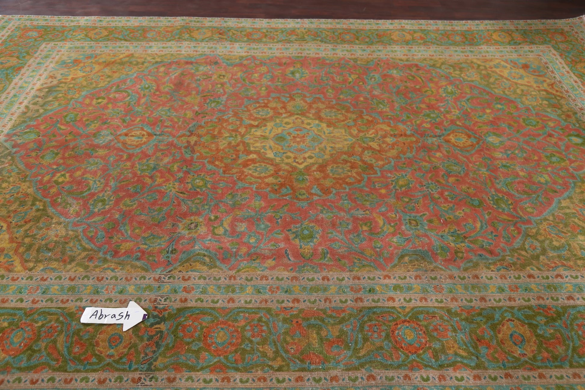 Vintage Distressed Mashad Persian Area Rug 8x11
