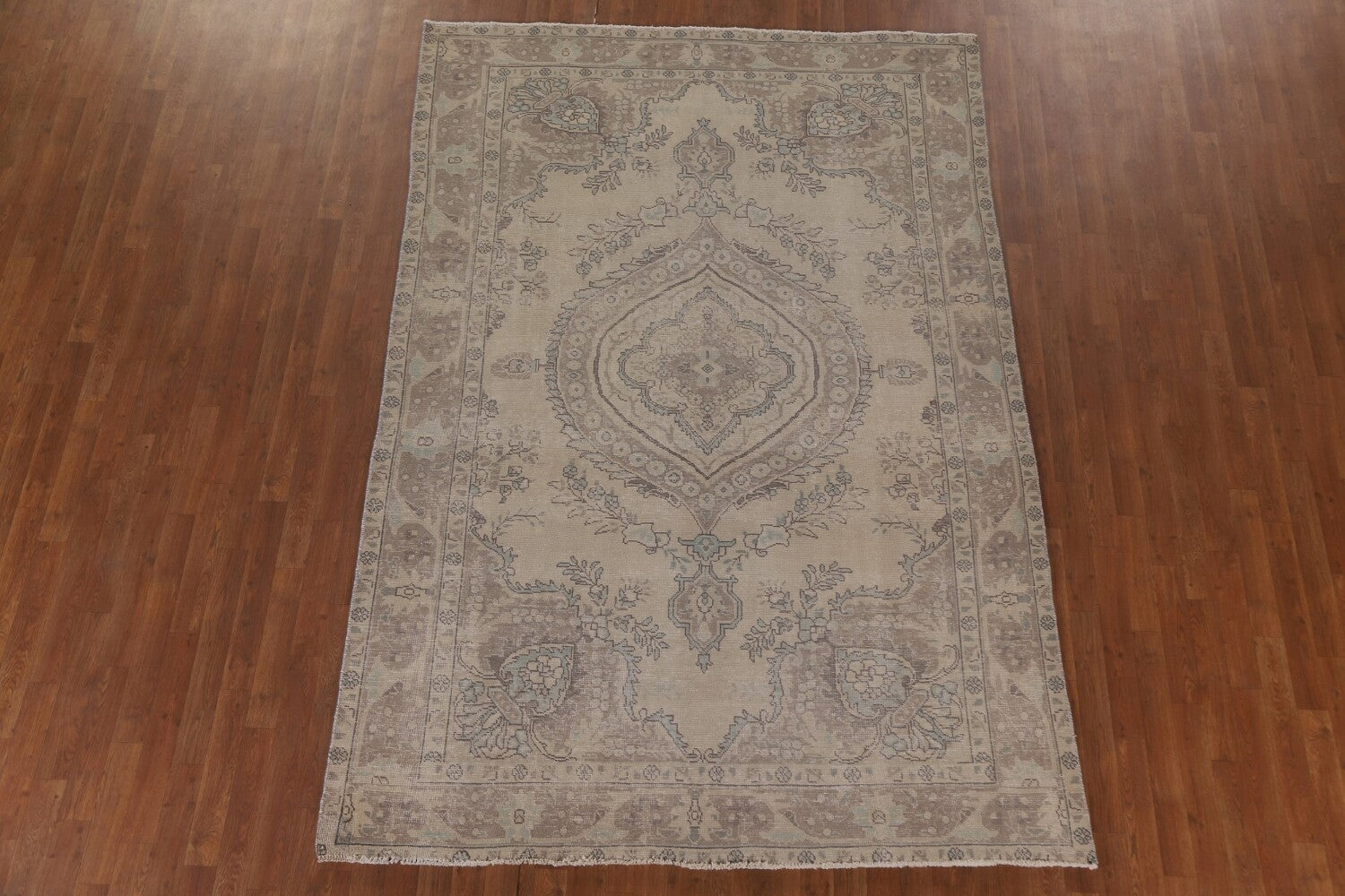 Vintage Distressed Tabriz Persian Area Rug 6x9