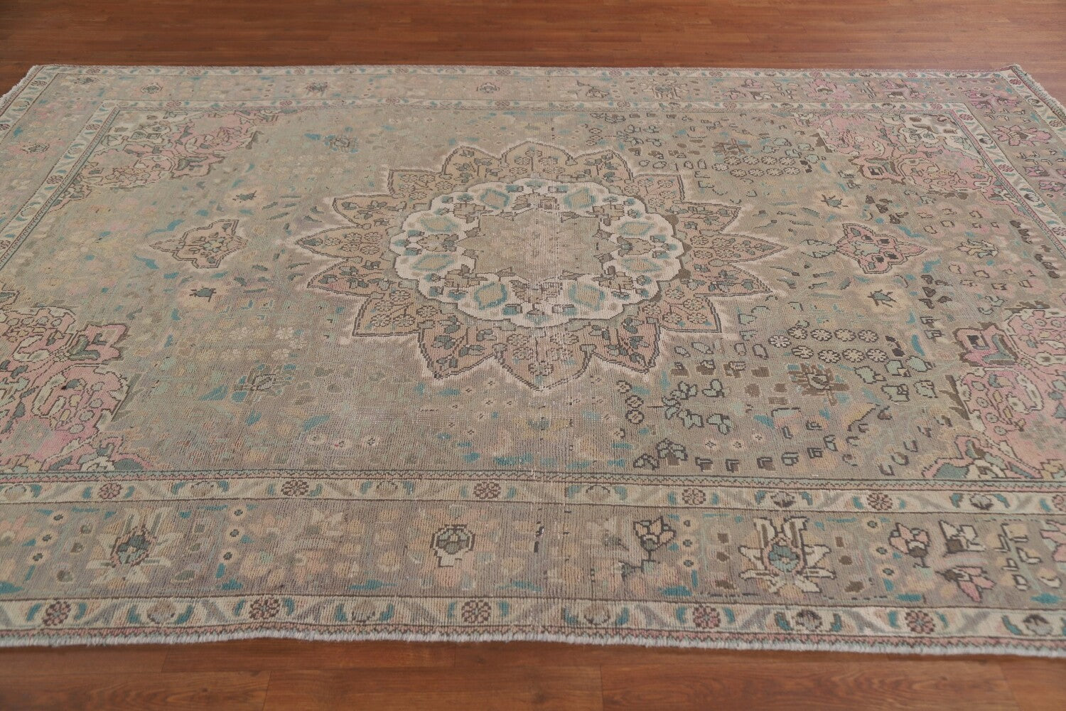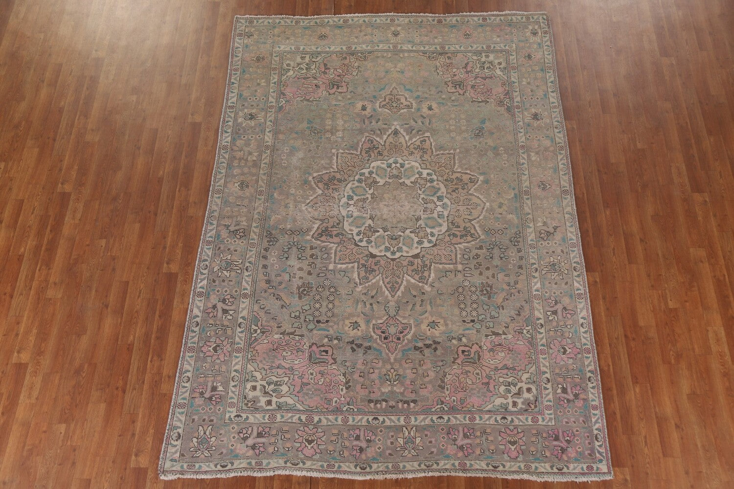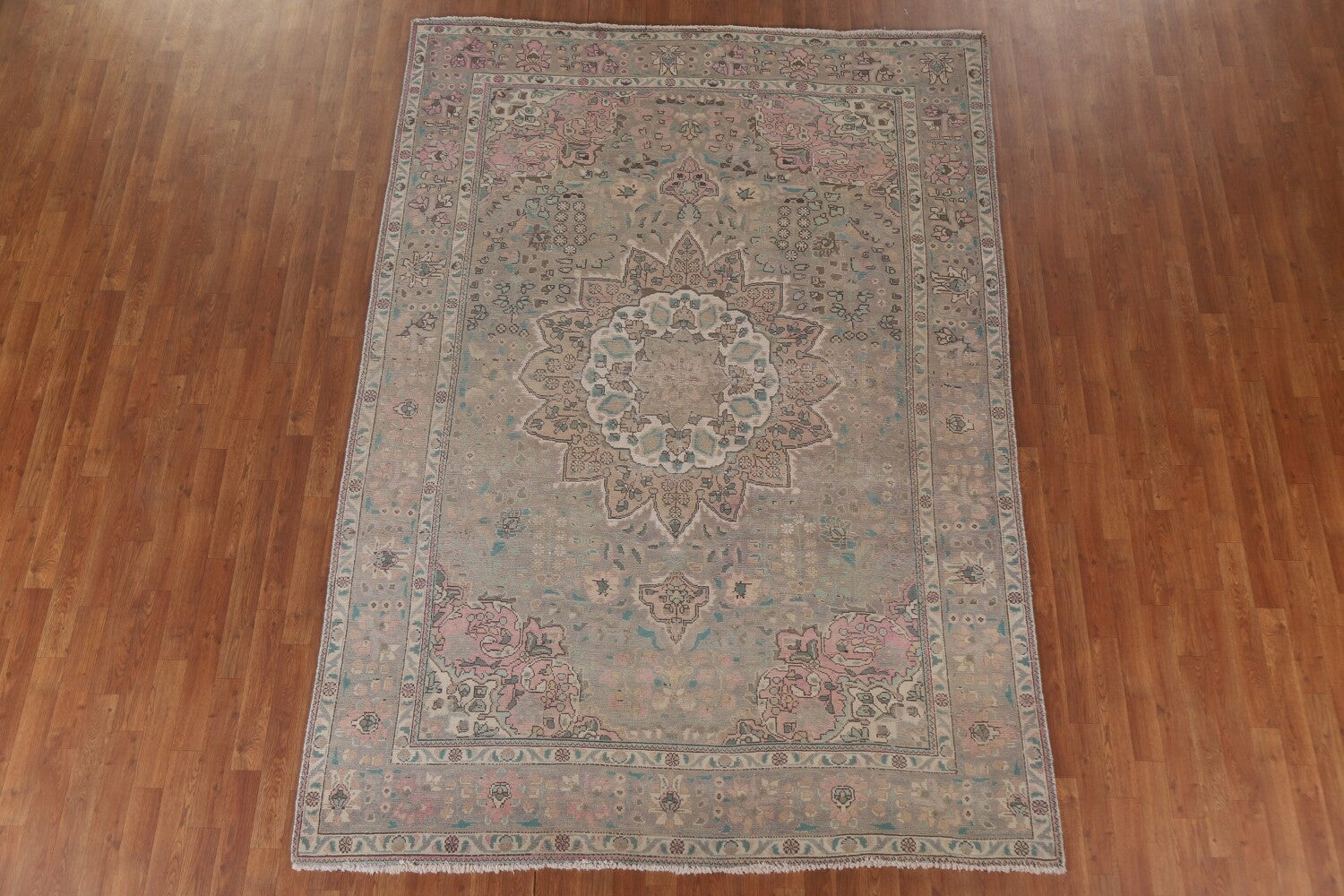 Vintage Distressed Tabriz Persian Area Rug 7x10