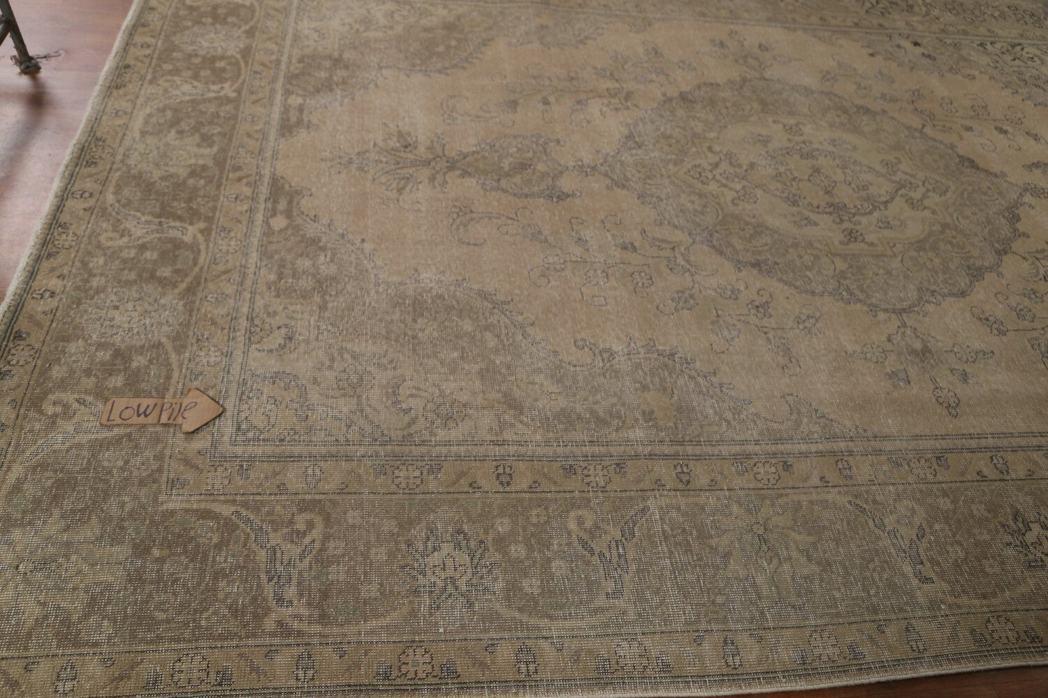 A Beautiful Genuine Persia ( Persia ) Tabriz rug is Hand Knotted by skillful weavers in Persia ( Persia ) with 100% Wool Material. This rug is in Very Good (Low Pile) condition. dimensions are 11' 4'' X 7' 11'' in foot and 345 X 241 in centimeter. the primary color is Beige & Ivories.