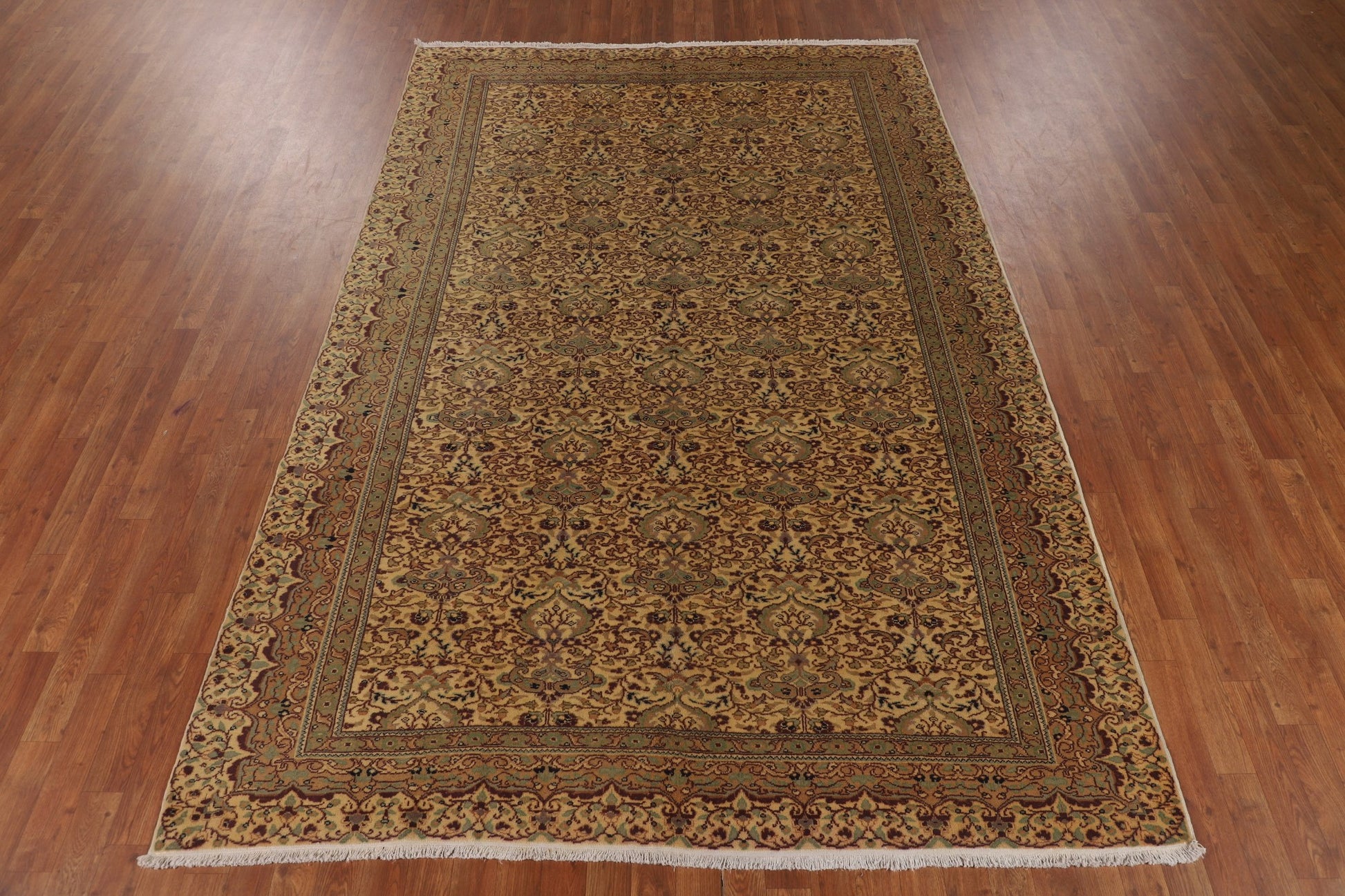 A Beautiful Genuine Turkey Anatolian rug is Hand Knotted by skillful weavers in Turkey with 100% Wool Material. This rug is in Excellent condition. dimensions are 9' 9'' X 6' 6'' in foot and 297 X 198 in centimeter. the primary color is Yellow & Gold.