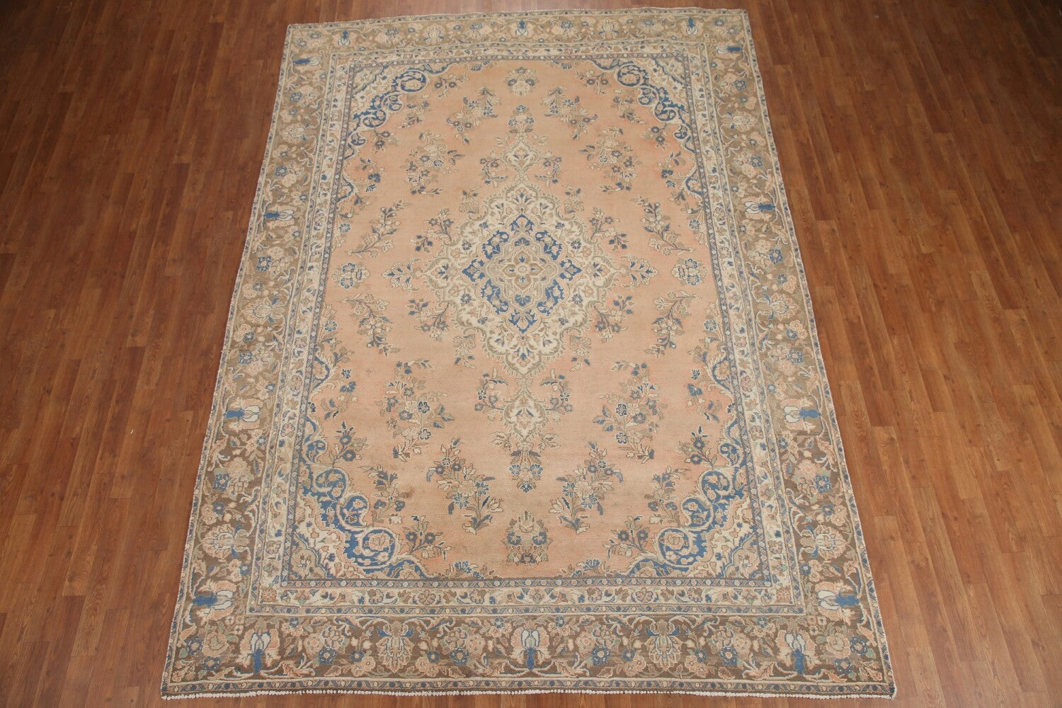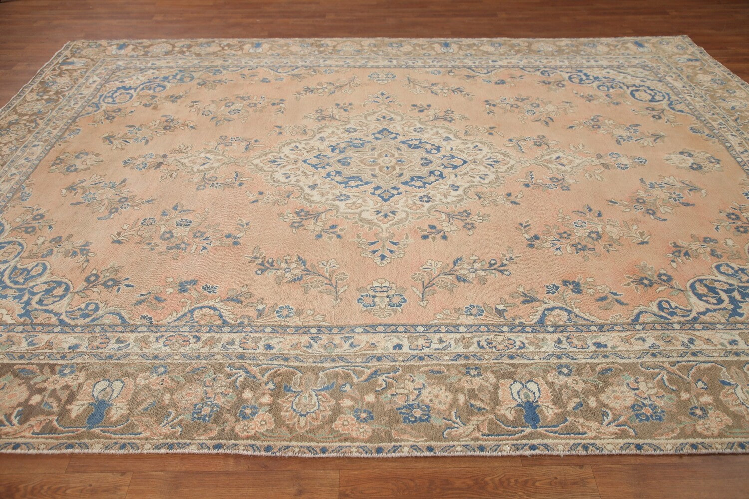 A Beautiful Genuine Persia ( Persia ) Hamedan rug is Hand Knotted by skillful weavers in Persia ( Persia ) with 100% Wool Material. This rug is in Very Good (Evenly Low Pile-Repair) condition. dimensions are 11' 0'' X 7' 10'' in foot and 335 X 239 in centimeter. the primary color is Peach.
