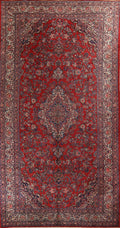 A Beautiful Genuine Persia ( Persia ) Hamedan rug is Hand Knotted by skillful weavers in Persia ( Persia ) with 100% Wool Material. This rug is in Very Good condition. dimensions are 17' 11'' X 8' 11'' in foot and 546 X 272 in centimeter. the primary color is Red.