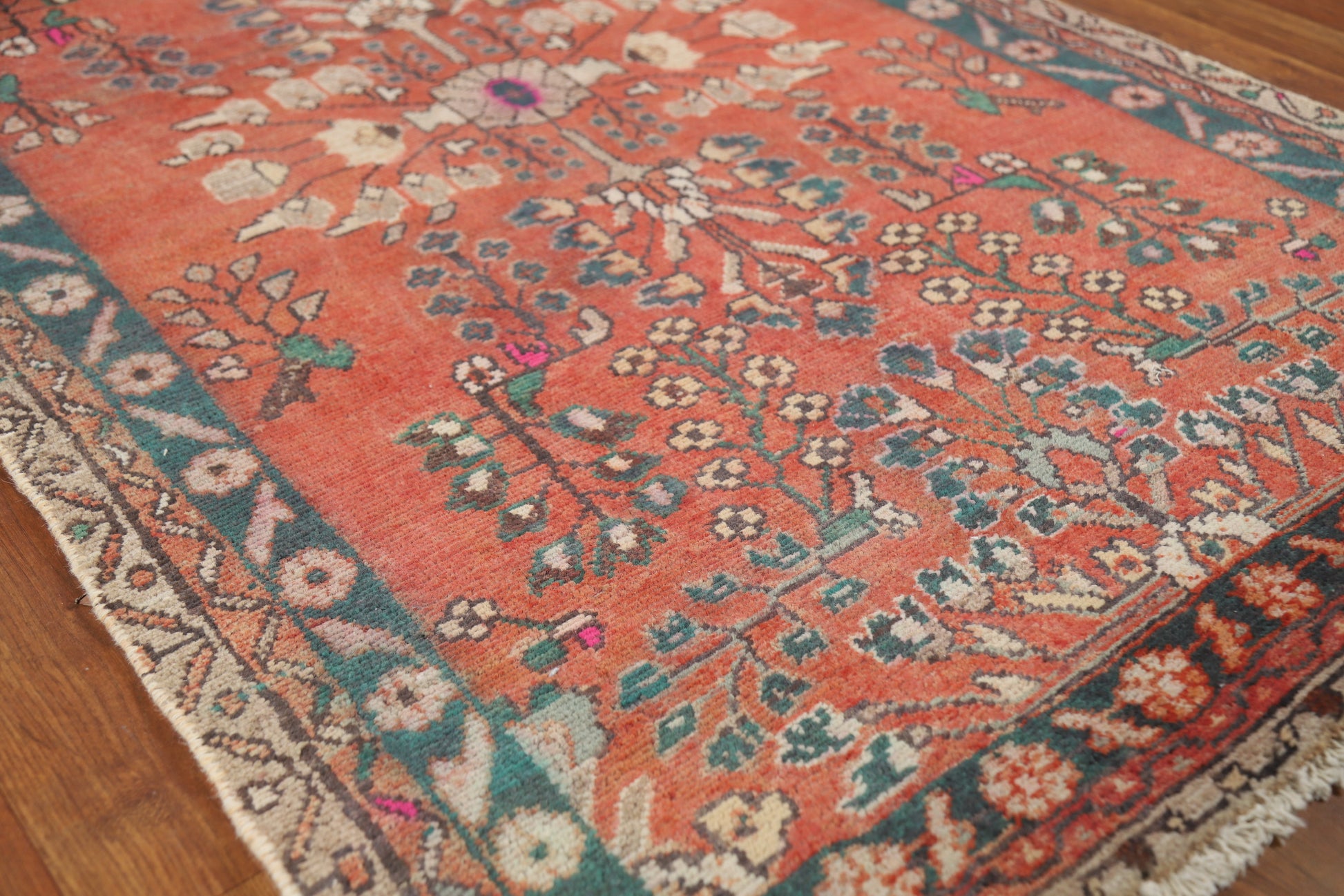 Vintage Floral Hamedan Persian Runner Rug 3x10