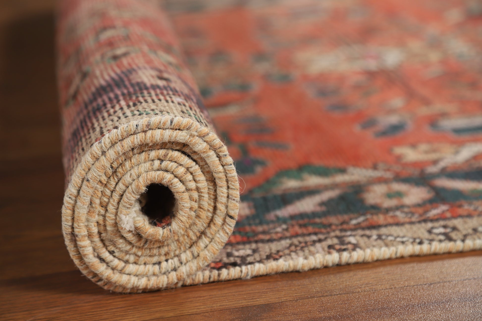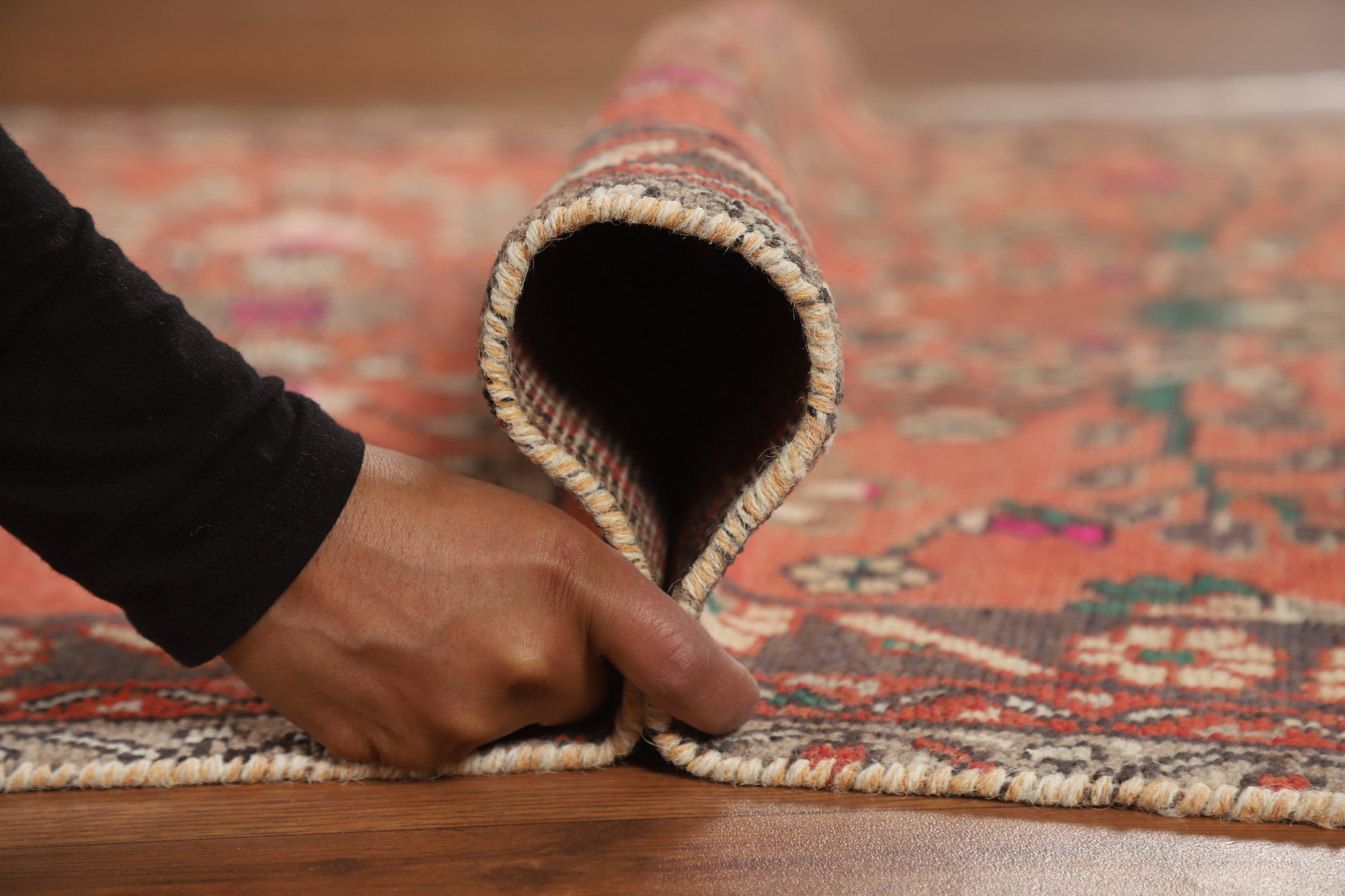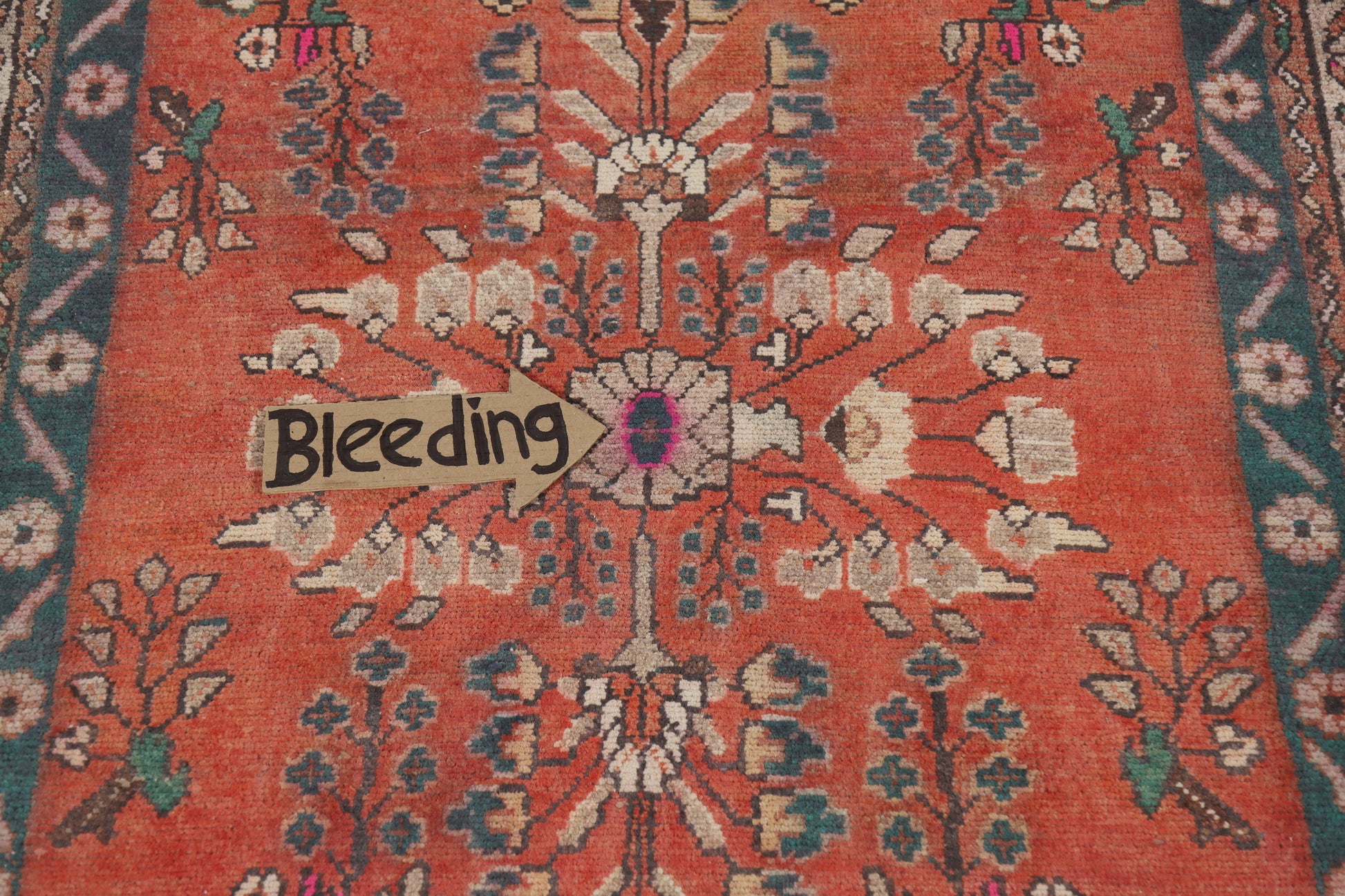 A Beautiful Genuine Persia ( Persia ) Hamedan rug is Hand Knotted by skillful weavers in Persia ( Persia ) with 100% Wool Material. This rug is in Very Good (Evenly Low Pile-Bleeding) condition. dimensions are 10' 4'' X 3' 4'' in foot and 315 X 102 in centimeter. the primary color is Oranges & Rust.