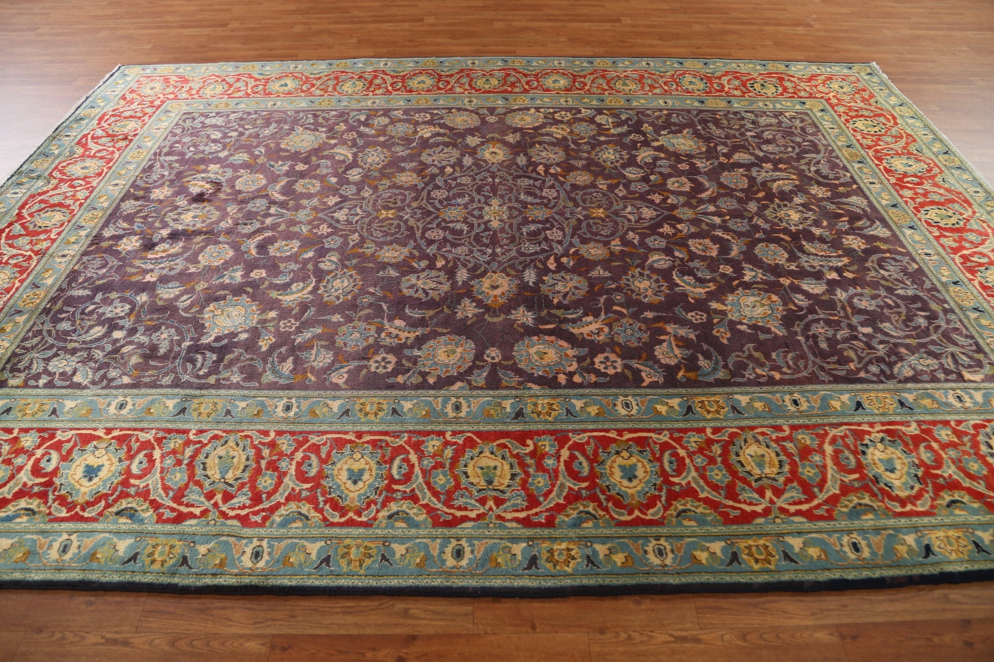 A Beautiful Genuine Persia ( Persia ) Isfahan rug is Hand Knotted by skillful weavers in Persia ( Persia ) with 100% Wool Material. This rug is in Very Good (Abrash) condition. dimensions are 11' 2'' X 8' 1'' in foot and 340 X 246 in centimeter. the primary color is Purples.