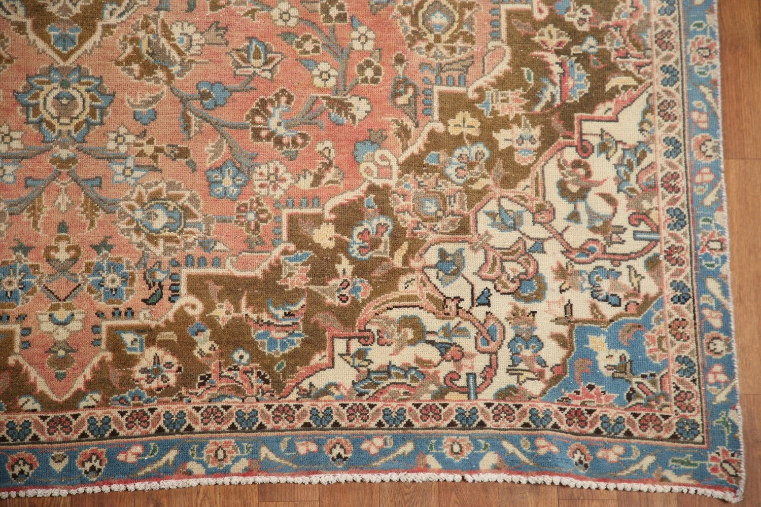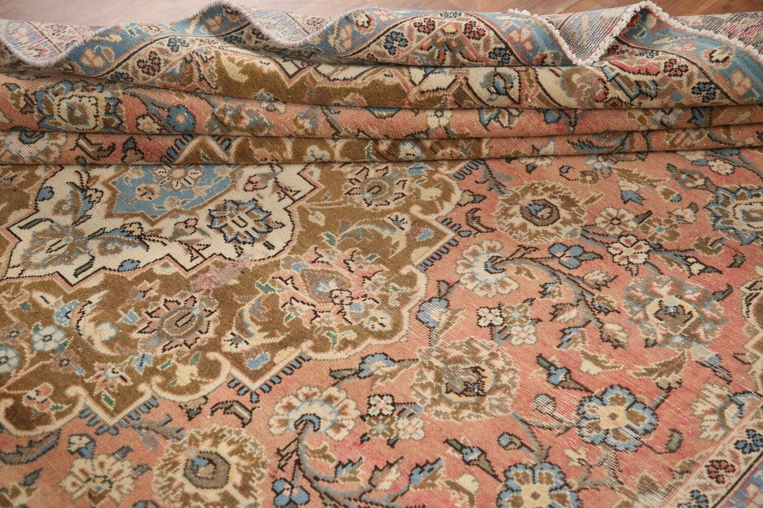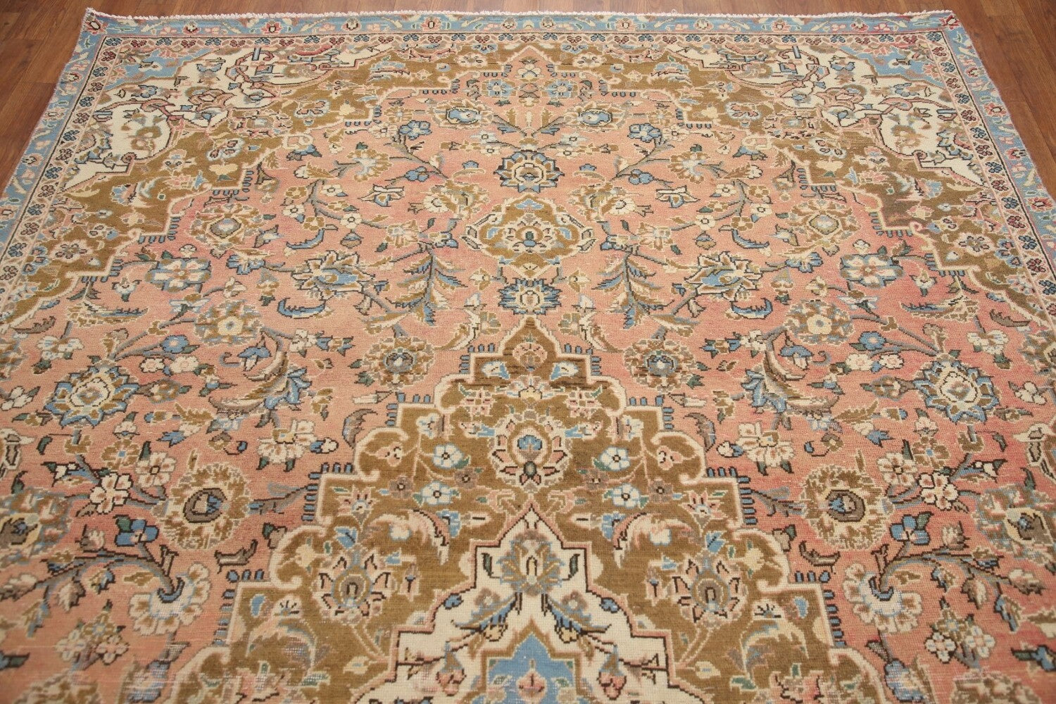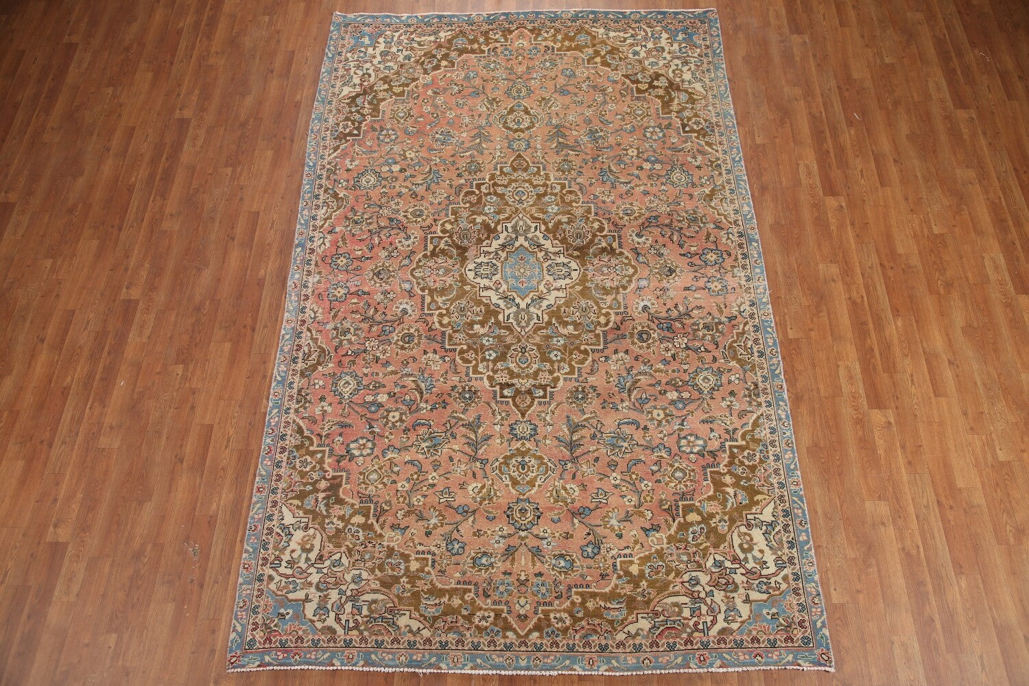 A Beautiful Genuine Persia ( Persia ) Kashan rug is Hand Knotted by skillful weavers in Persia ( Persia ) with 100% Wool Material. This rug is in Very Good (Low Pile) condition. dimensions are 10' 2'' X 6' 4'' in foot and 310 X 193 in centimeter. the primary color is Pink.