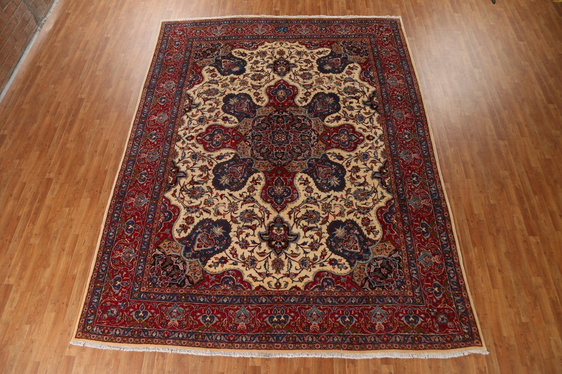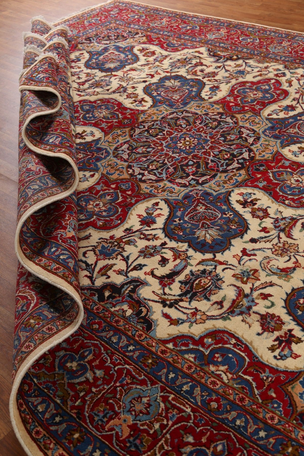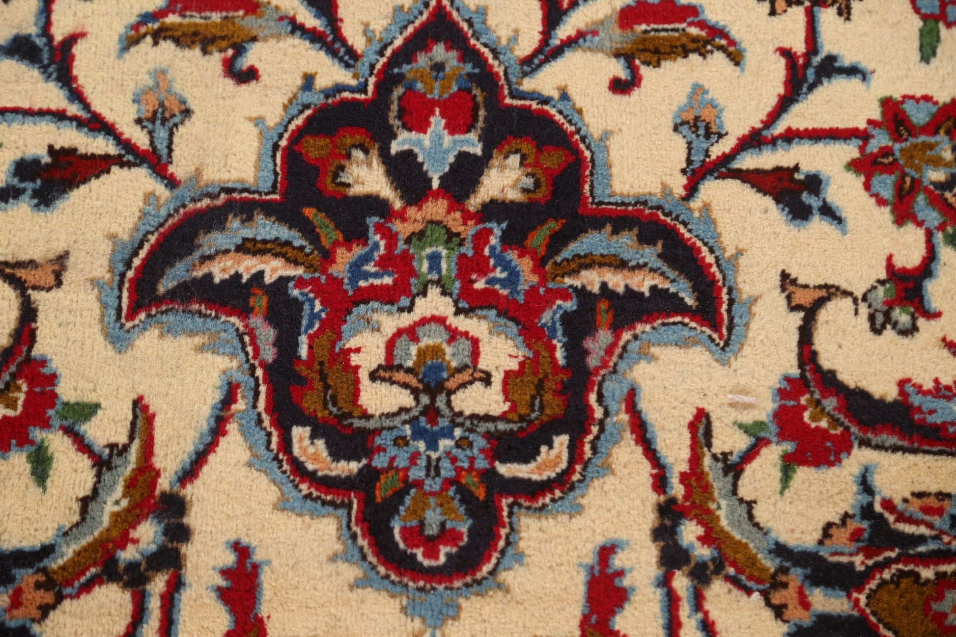 A Beautiful Genuine Persia ( Persia ) Kashmar rug is Hand Knotted by skillful weavers in Persia ( Persia ) with 100% Wool Material. This rug is in Very Good condition. dimensions are 12' 5'' X 9' 8'' in foot and 378 X 295 in centimeter. the primary color is Beige & Ivories.