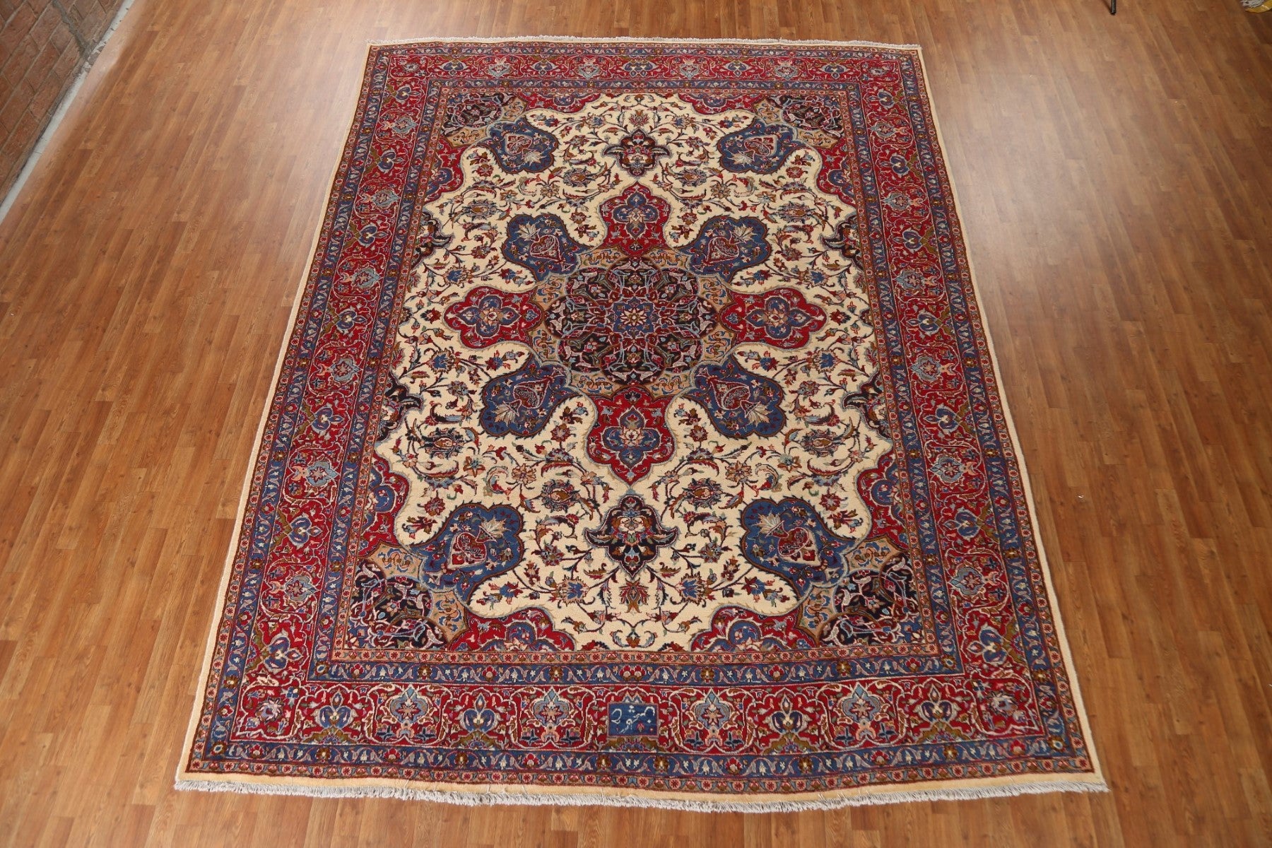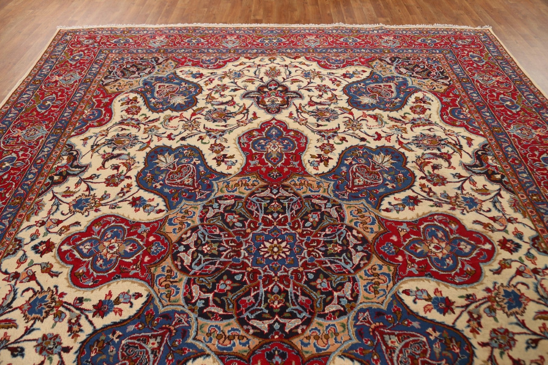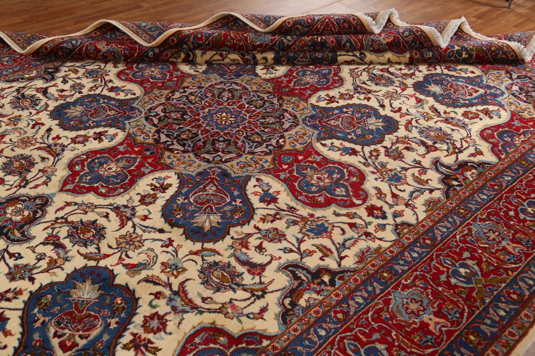 A Beautiful Genuine Persia ( Persia ) Kashmar rug is Hand Knotted by skillful weavers in Persia ( Persia ) with 100% Wool Material. This rug is in Very Good condition. dimensions are 12' 5'' X 9' 8'' in foot and 378 X 295 in centimeter. the primary color is Beige & Ivories.