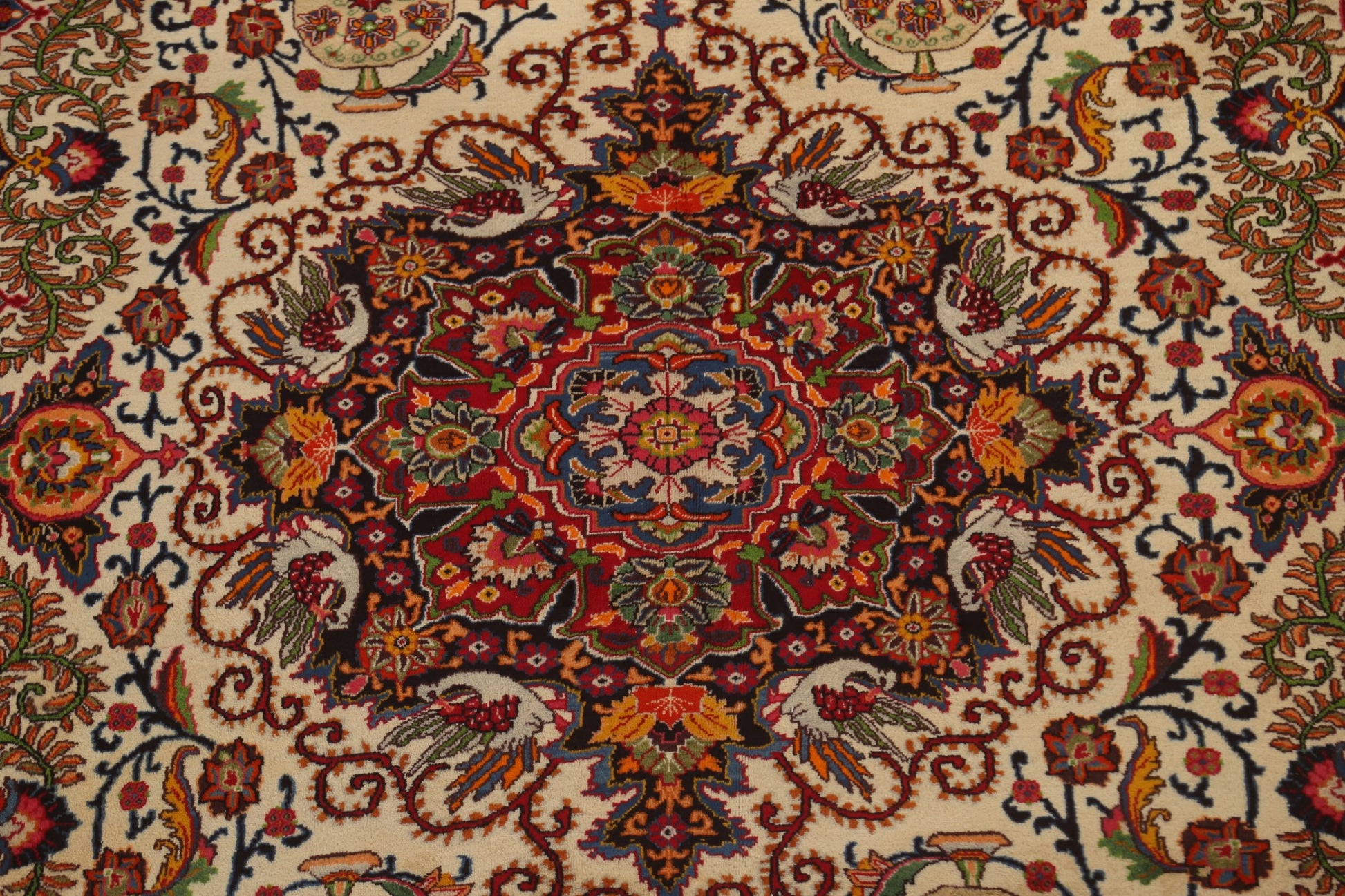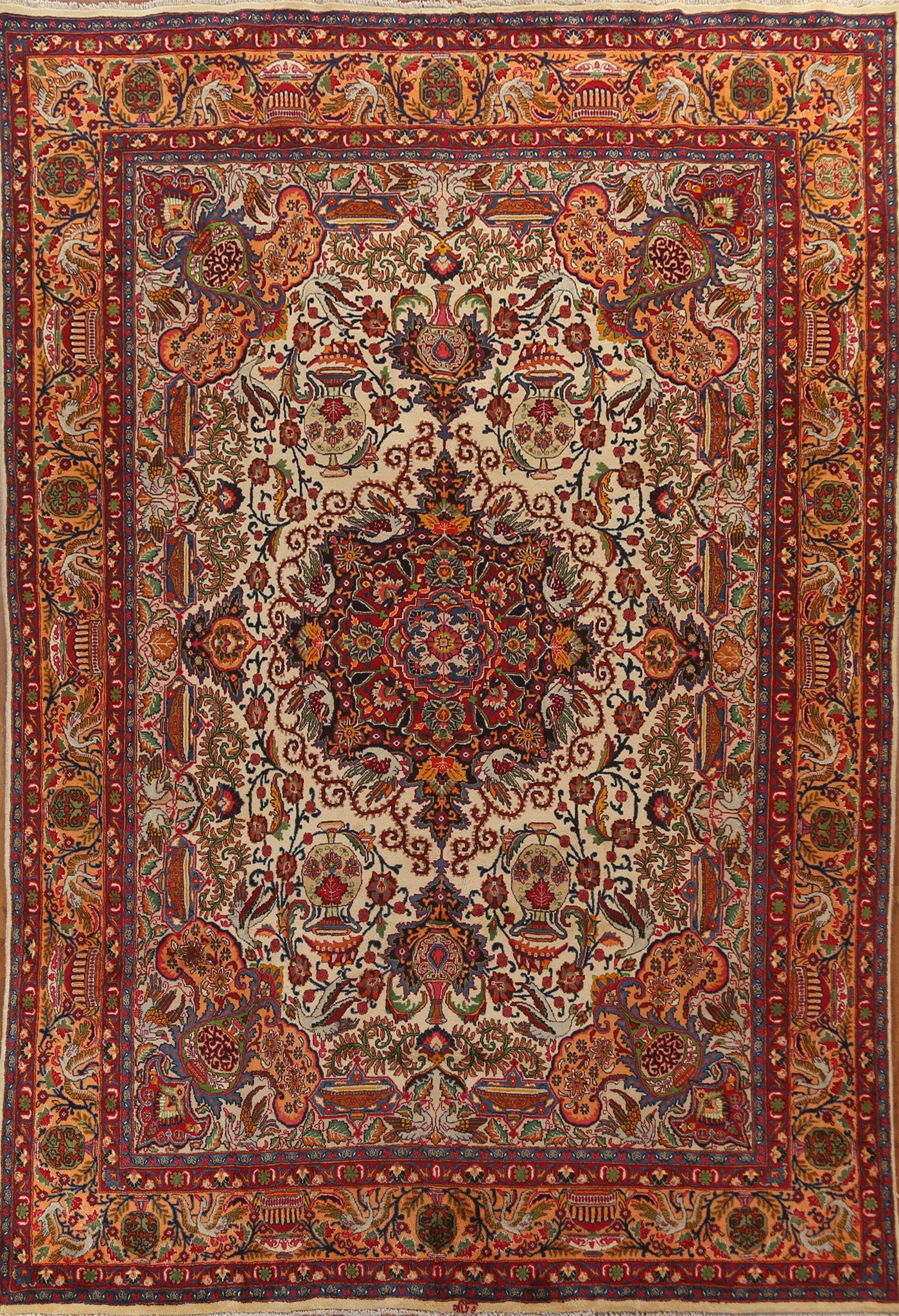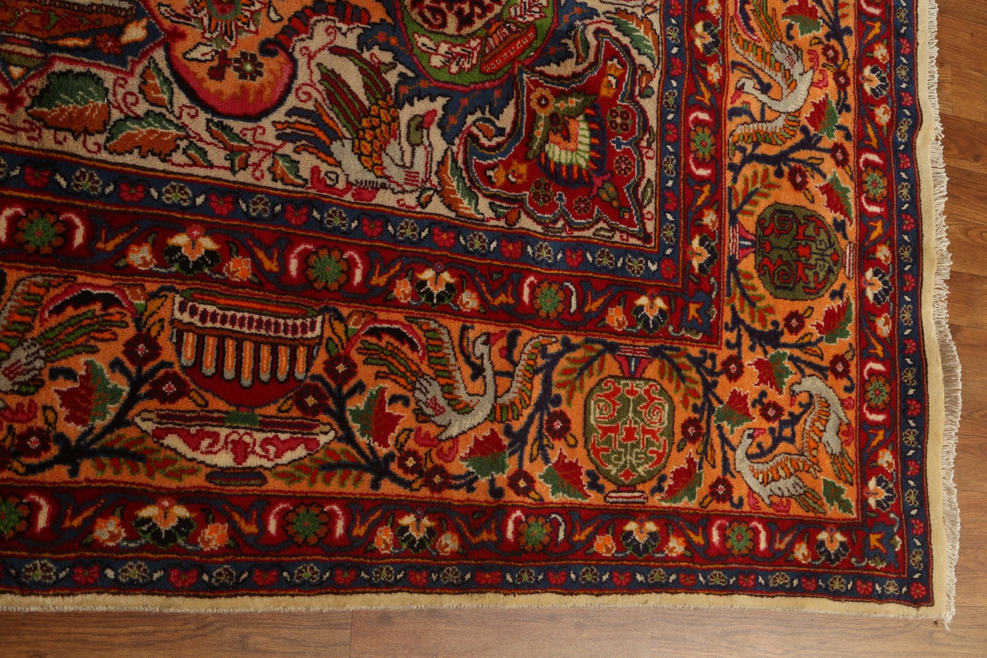 A Beautiful Genuine Persia ( Persia ) Kashmar rug is Hand Knotted by skillful weavers in Persia ( Persia ) with 100% Wool Material. This rug is in Very Good condition. dimensions are 12' 7'' X 9' 8'' in foot and 384 X 295 in centimeter. the primary color is Beige & Ivories.