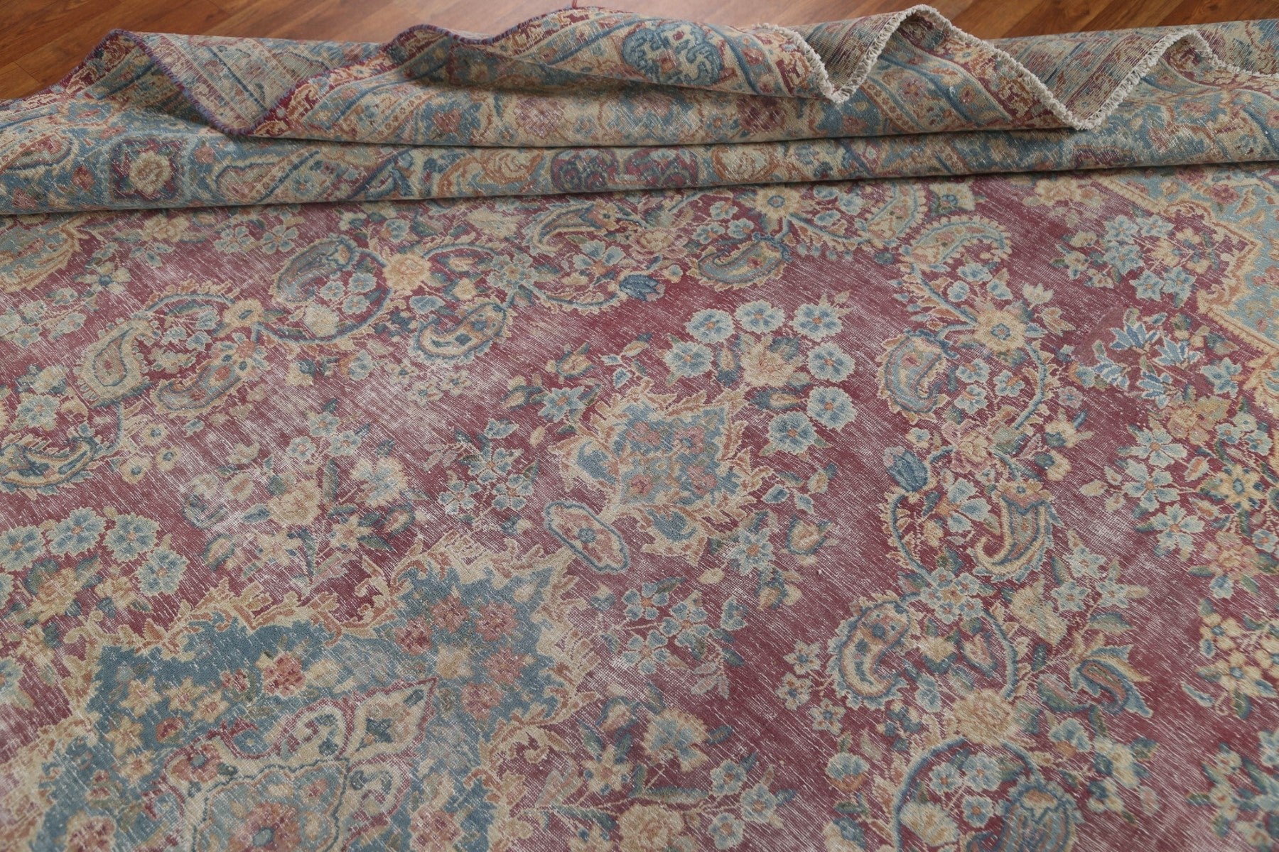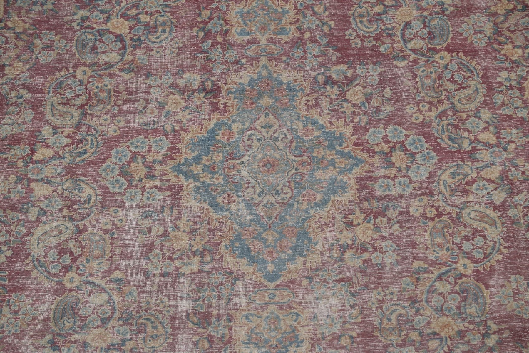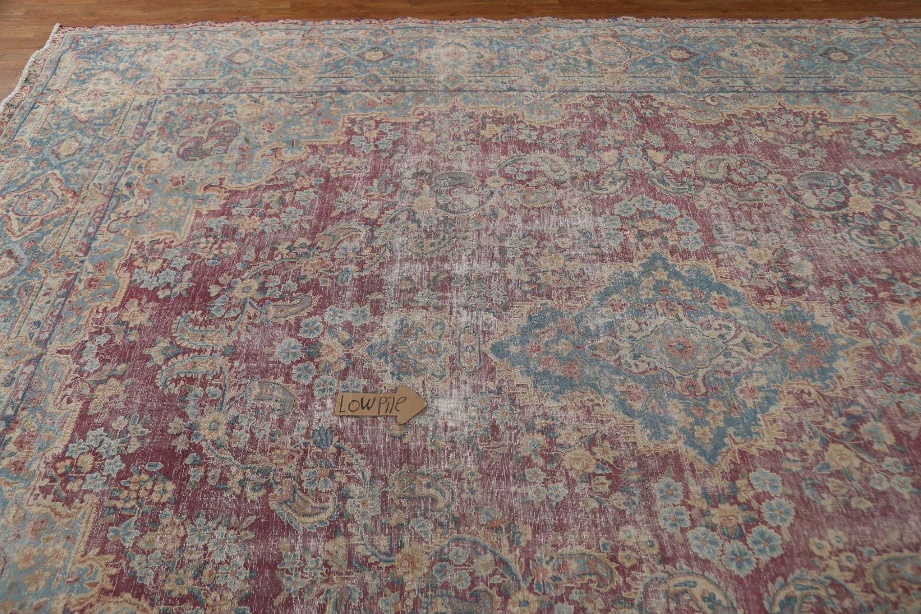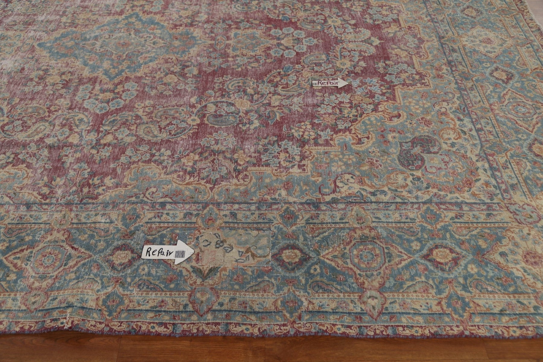 A Beautiful Genuine Persia ( Persia ) Kerman rug is Hand Knotted by skillful weavers in Persia ( Persia ) with 100% Wool Material. This rug is in Very Good (Low Pile-Repairs) condition. dimensions are 12' 10'' X 9' 7'' in foot and 391 X 292 in centimeter. the primary color is Red.