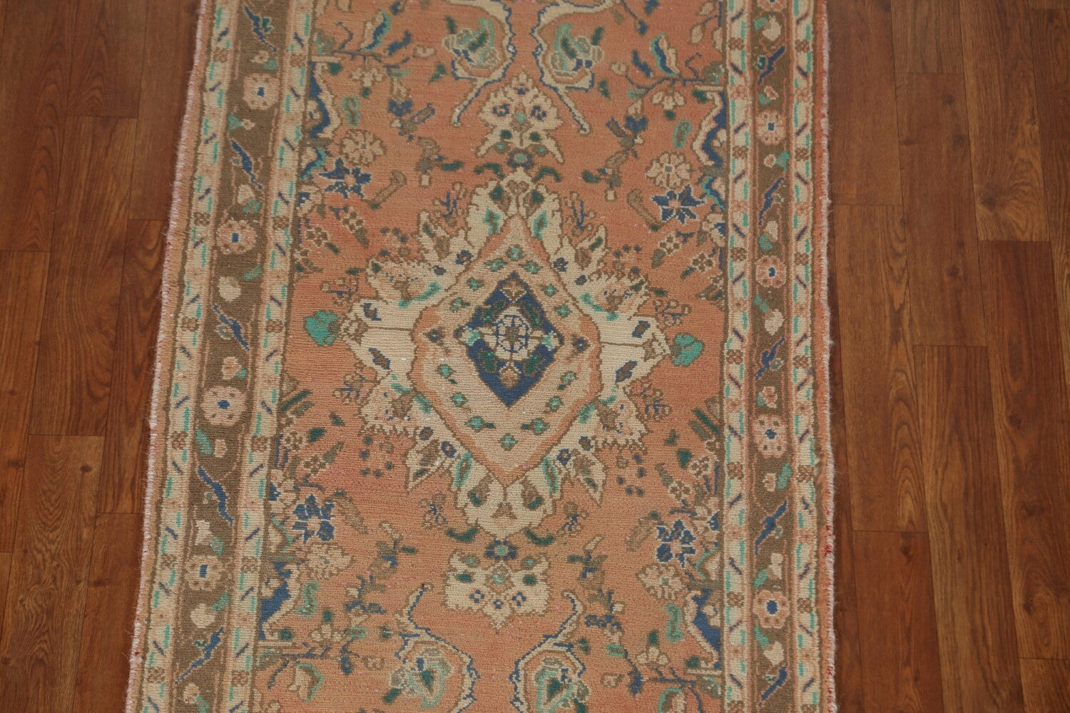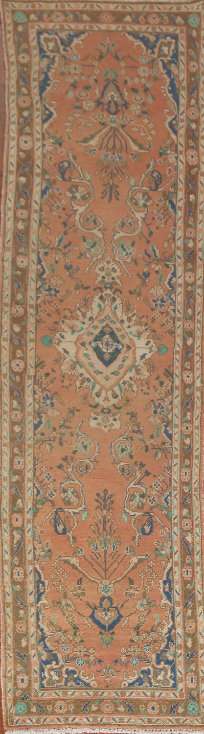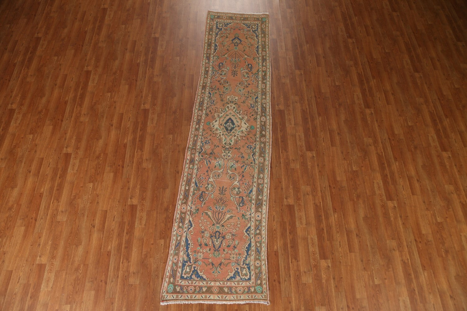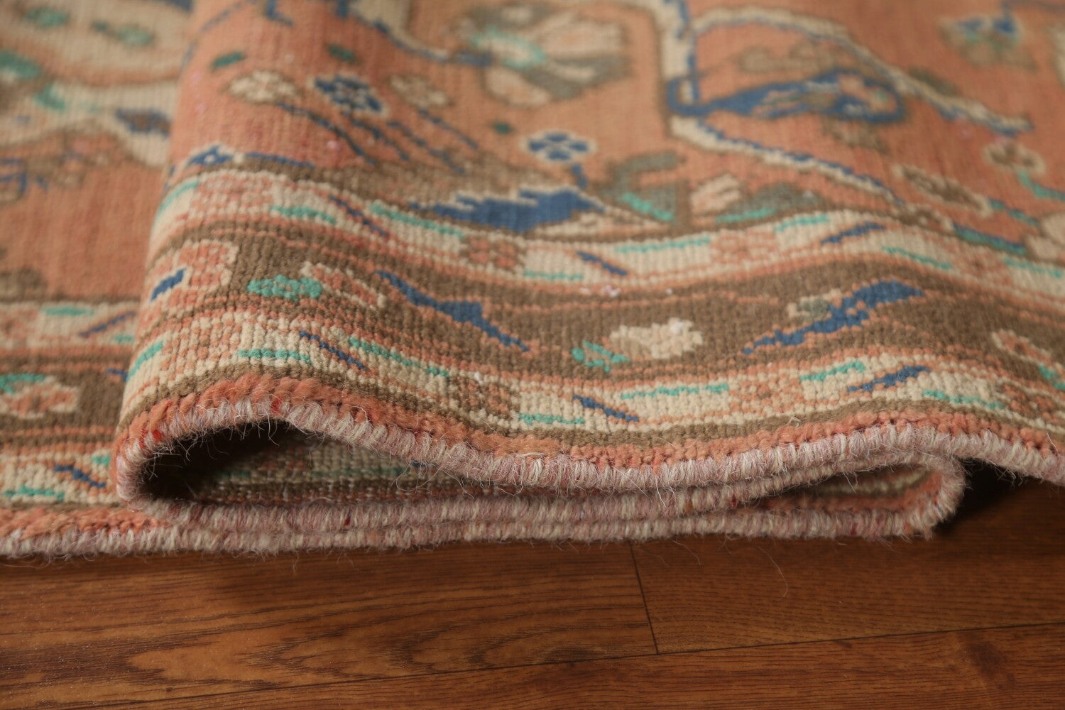 A Beautiful Genuine Persia ( Persia ) Lilian rug is Hand Knotted by skillful weavers in Persia ( Persia ) with 100% Wool Material. This rug is in Very Good (Low Pile) condition. dimensions are 10' 6'' X 2' 5'' in foot and 320 X 74 in centimeter. the primary color is Coral.