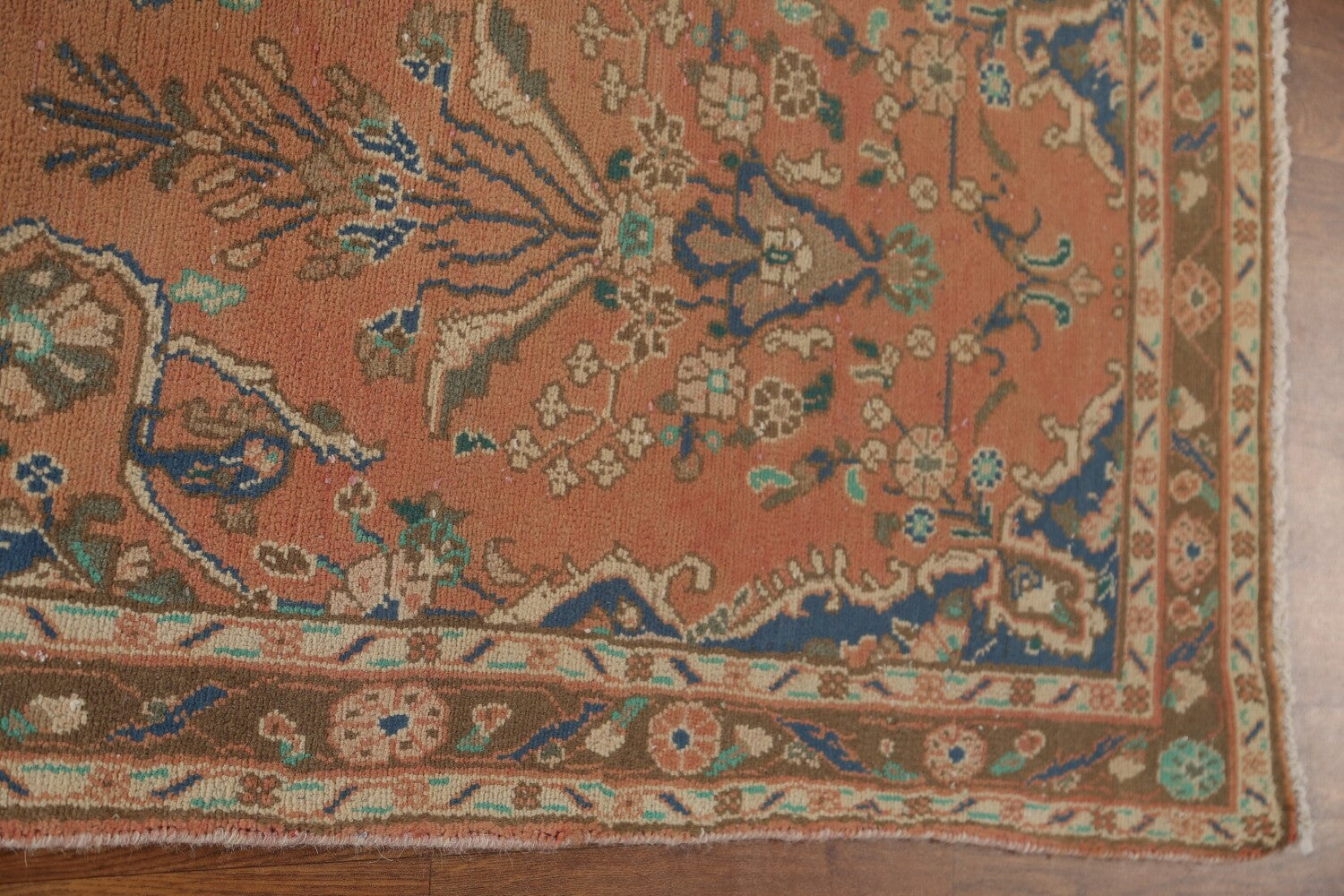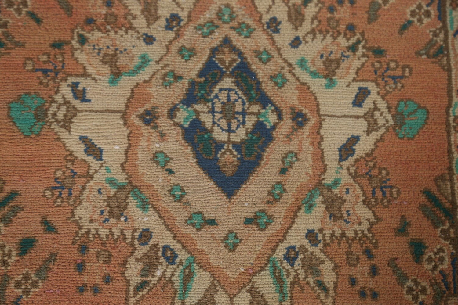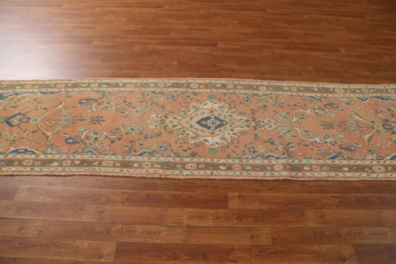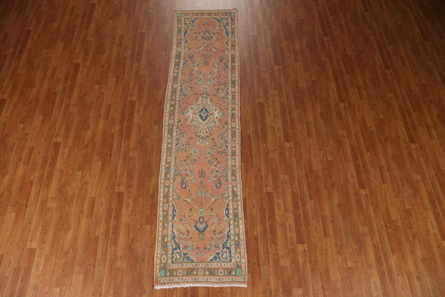 A Beautiful Genuine Persia ( Persia ) Lilian rug is Hand Knotted by skillful weavers in Persia ( Persia ) with 100% Wool Material. This rug is in Very Good (Low Pile) condition. dimensions are 10' 6'' X 2' 5'' in foot and 320 X 74 in centimeter. the primary color is Coral.
