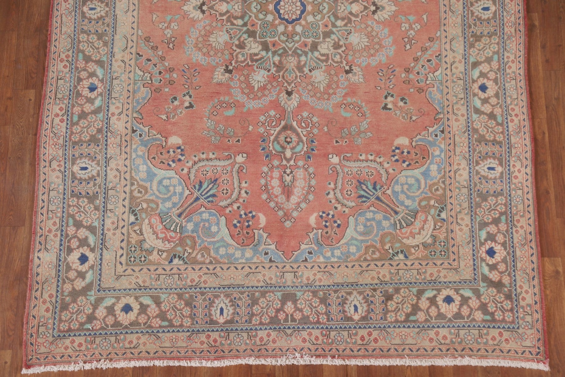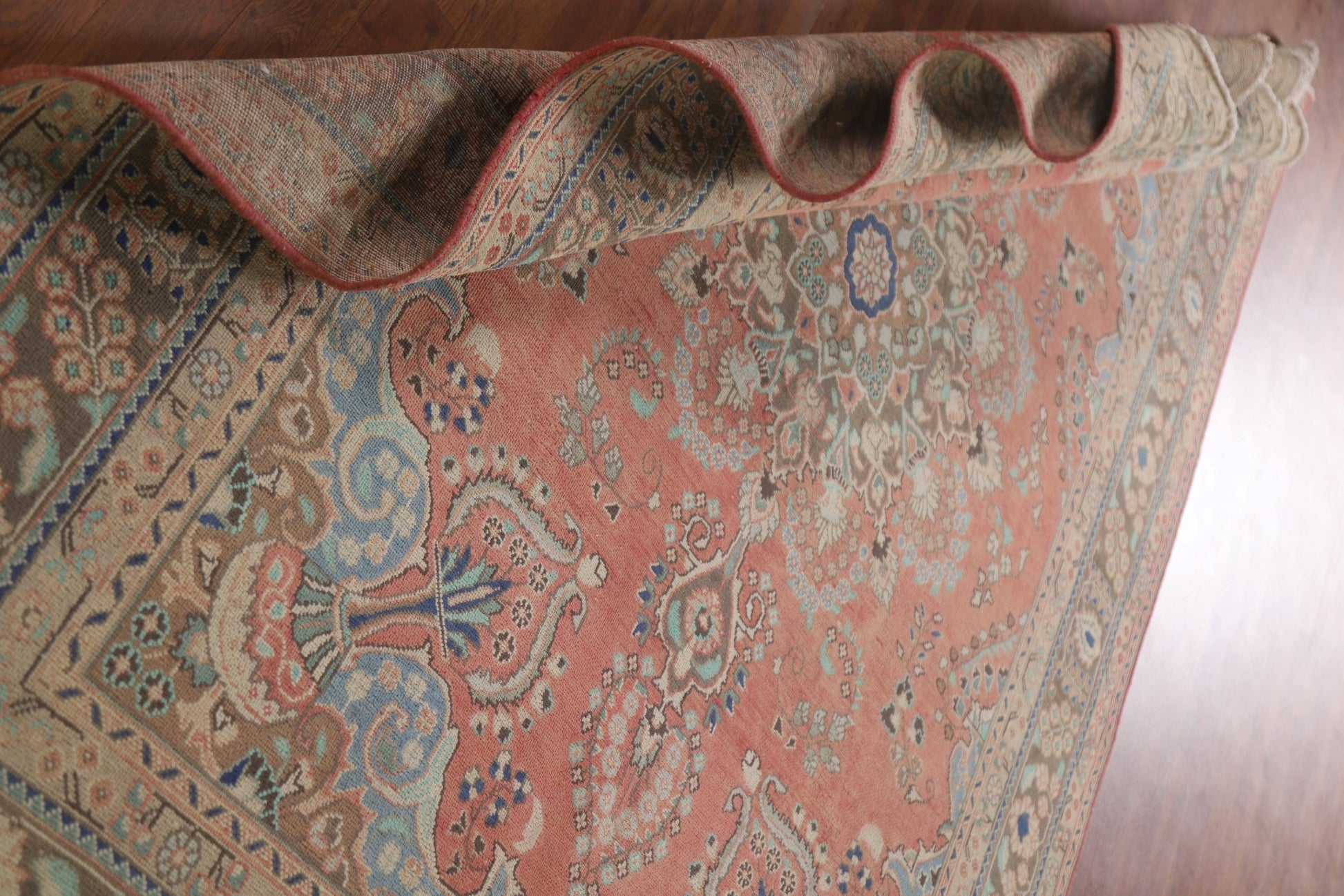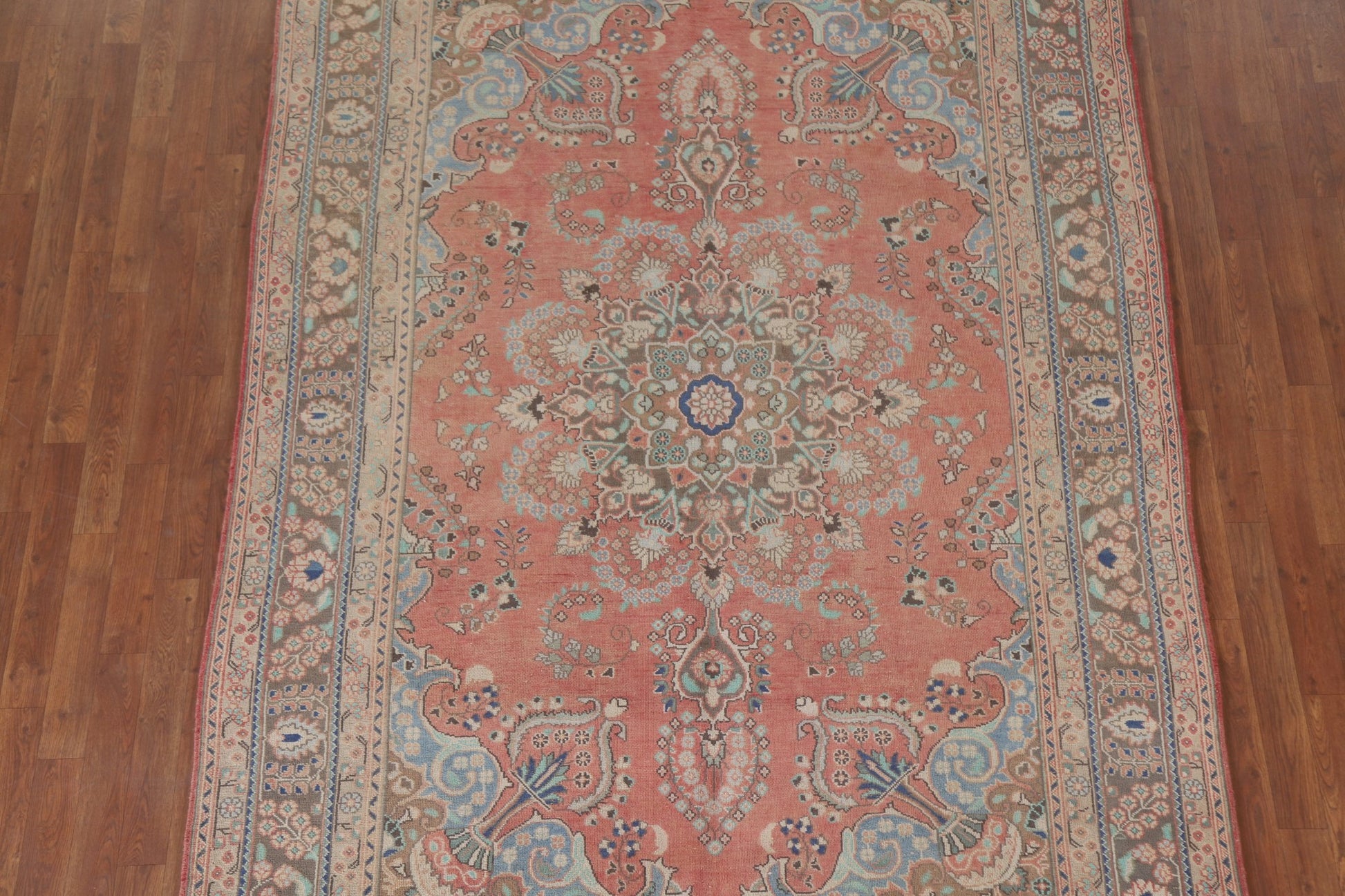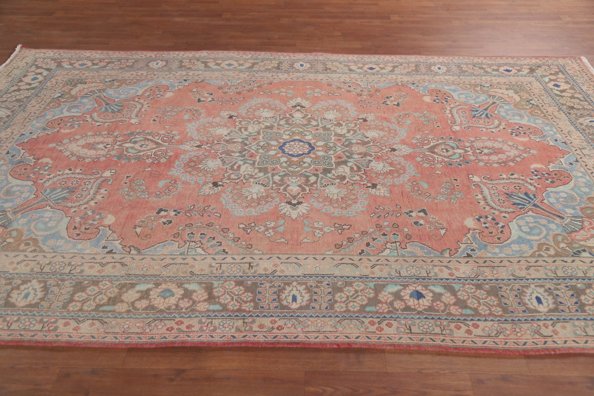 A Beautiful Genuine Persia ( Persia ) Mashad rug is Hand Knotted by skillful weavers in Persia ( Persia ) with 100% Wool Material. This rug is in Very Good (Evenly Low Pile) condition. dimensions are 9' 5'' X 6' 2'' in foot and 287 X 188 in centimeter. the primary color is Pink.