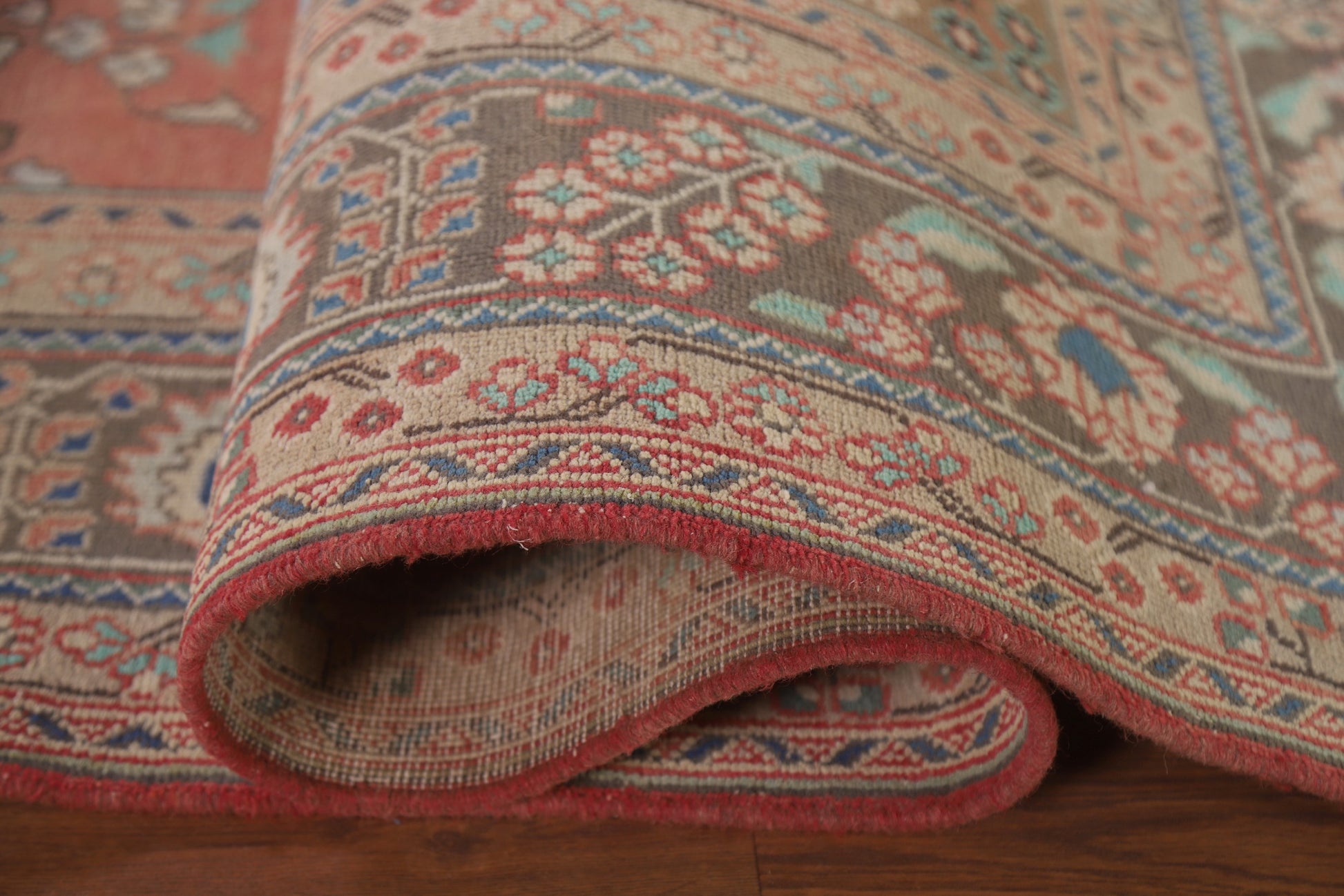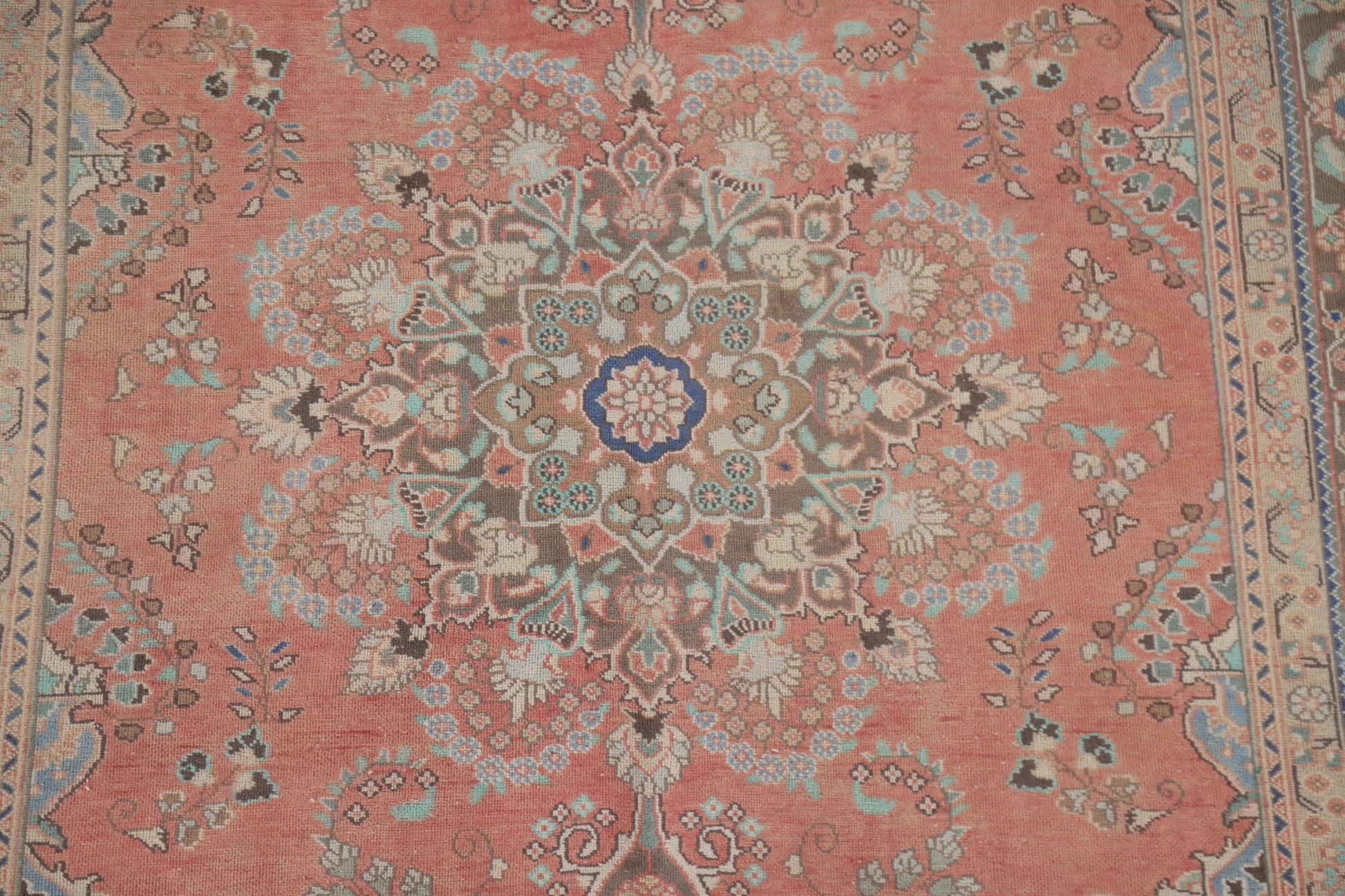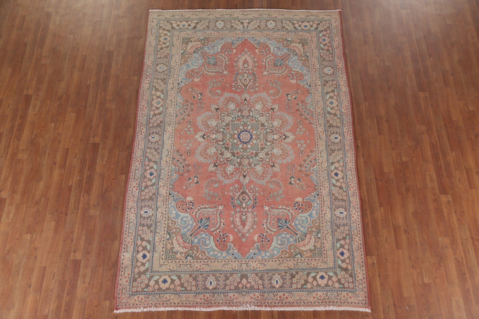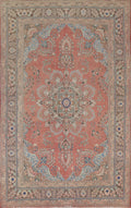 A Beautiful Genuine Persia ( Persia ) Mashad rug is Hand Knotted by skillful weavers in Persia ( Persia ) with 100% Wool Material. This rug is in Very Good (Evenly Low Pile) condition. dimensions are 9' 5'' X 6' 2'' in foot and 287 X 188 in centimeter. the primary color is Pink.