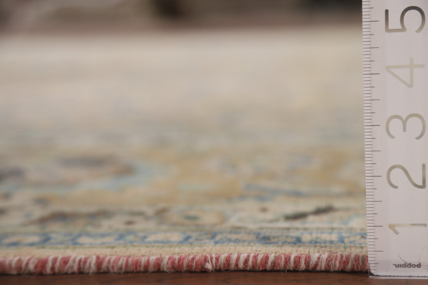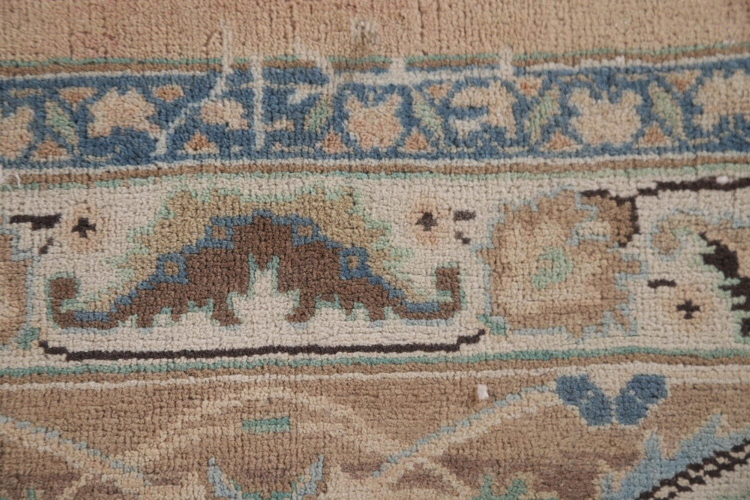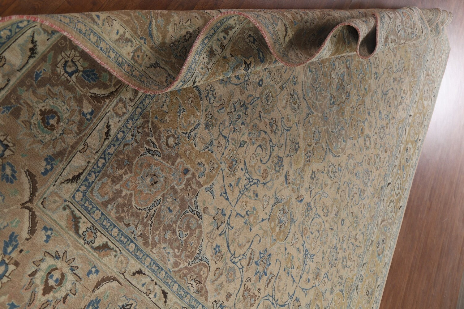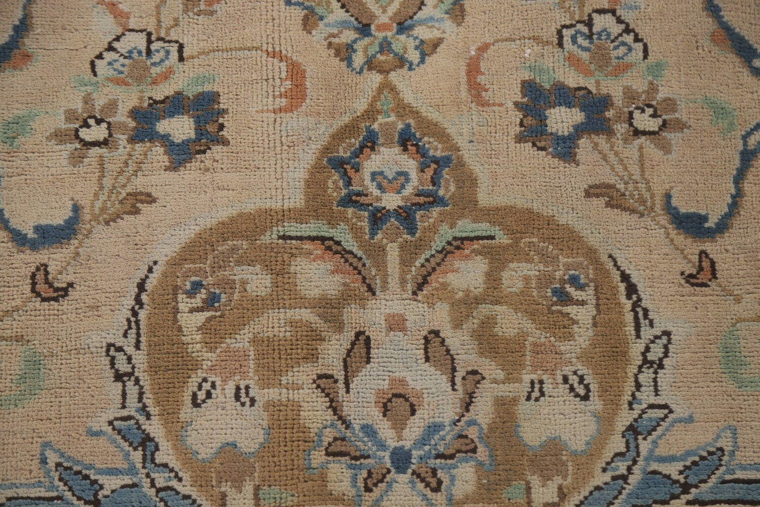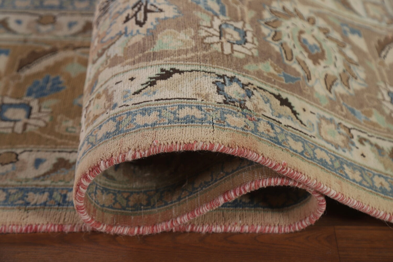 A Beautiful Genuine Persia ( Persia ) Mashad rug is Hand Knotted by skillful weavers in Persia ( Persia ) with 100% Wool Material. This rug is in Very Good (Evenly Low Pile-Repair) condition. dimensions are 12' 5'' X 9' 4'' in foot and 378 X 284 in centimeter. the primary color is Peach.