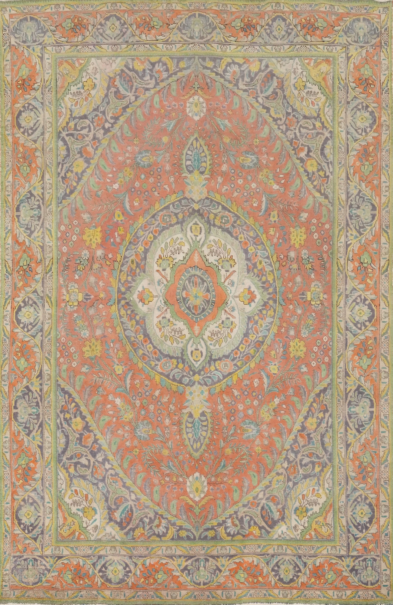 Vintage Floral Medallion Tabriz Persian Area Rug 6x9
