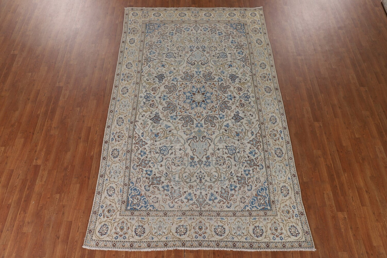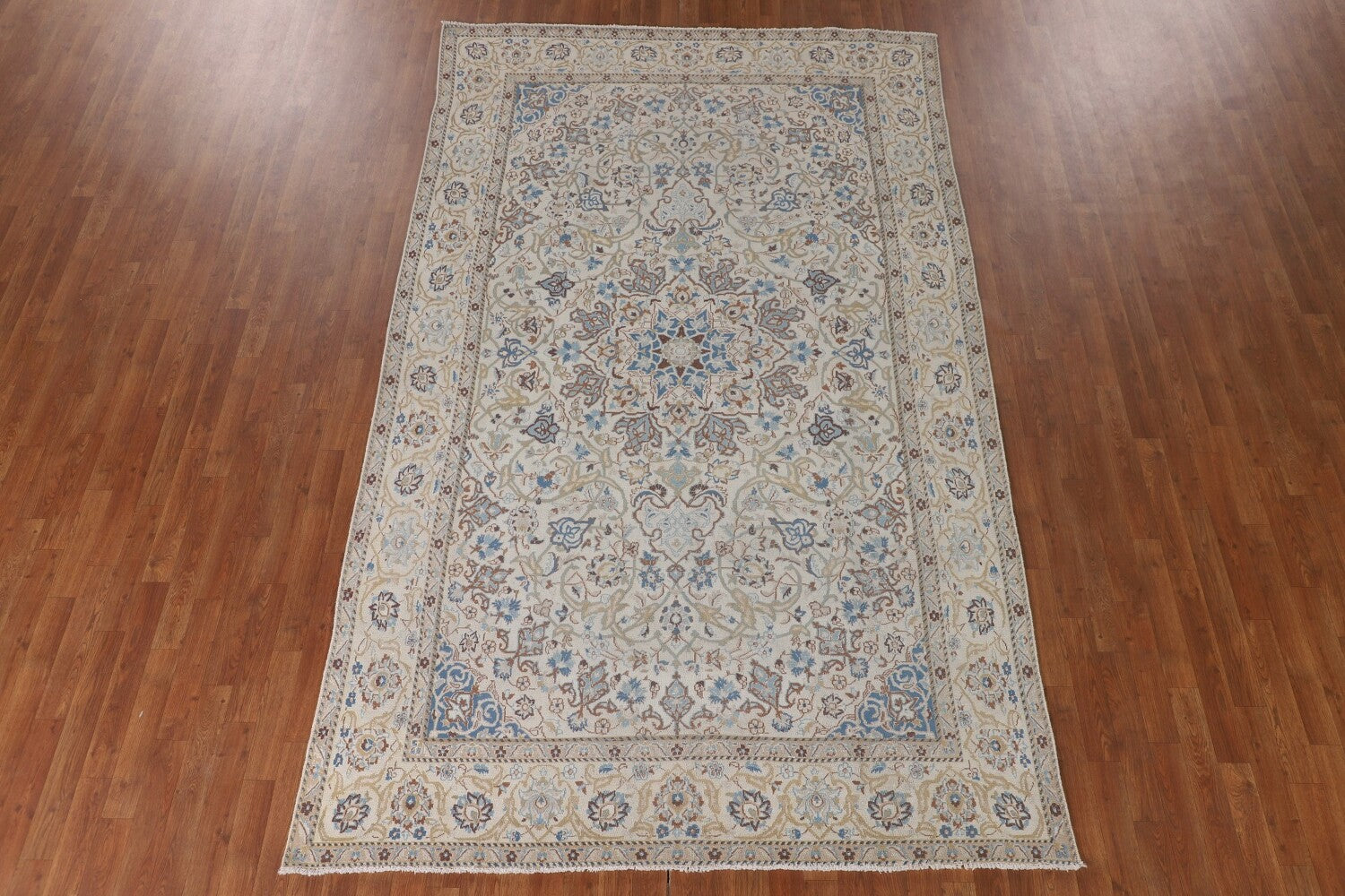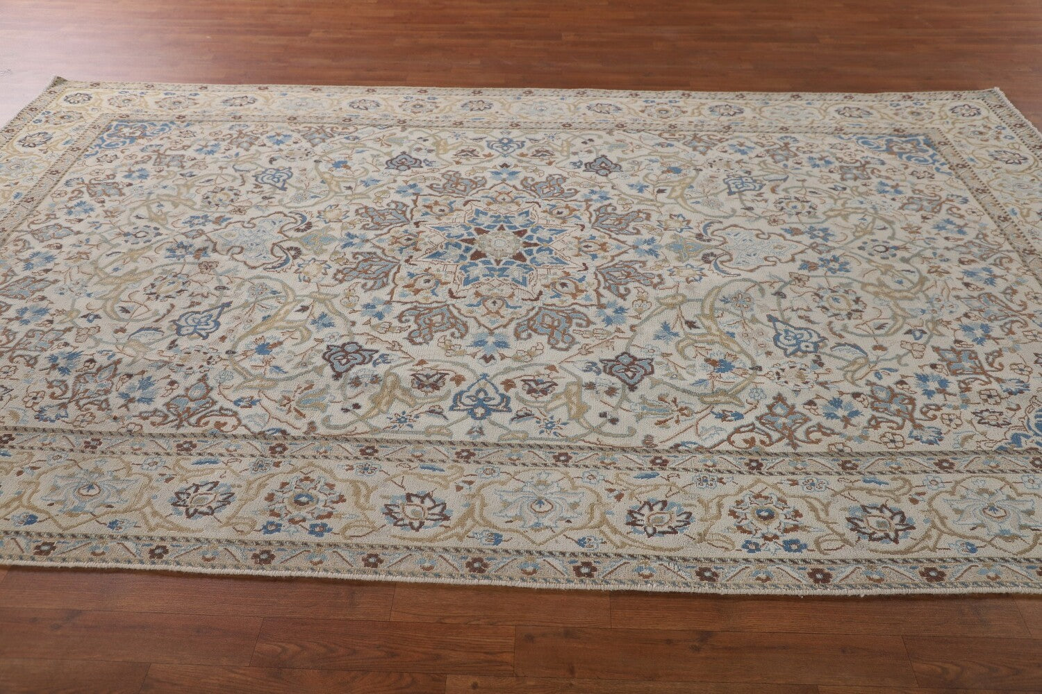 A Beautiful Genuine Persia ( Persia ) Nain rug is Hand Knotted by skillful weavers in Persia ( Persia ) with 100% Wool Material. This rug is in Very Good (Evenly Low Pile) condition. dimensions are 10' 8'' X 6' 5'' in foot and 325 X 196 in centimeter. the primary color is Beige & Ivories.