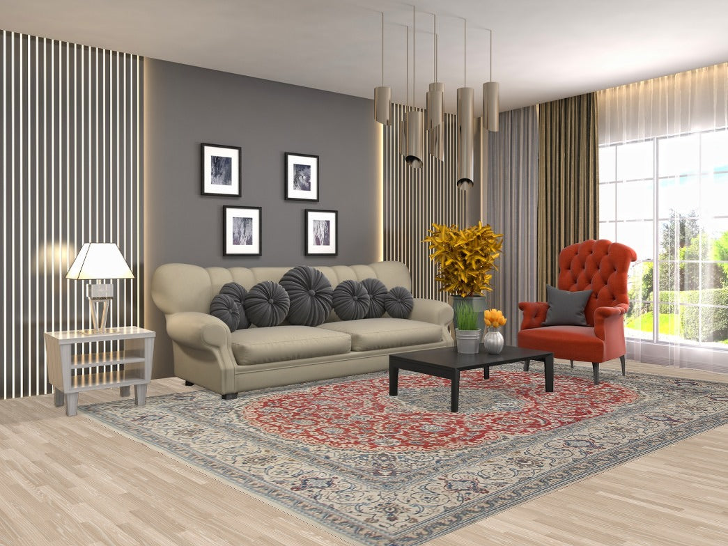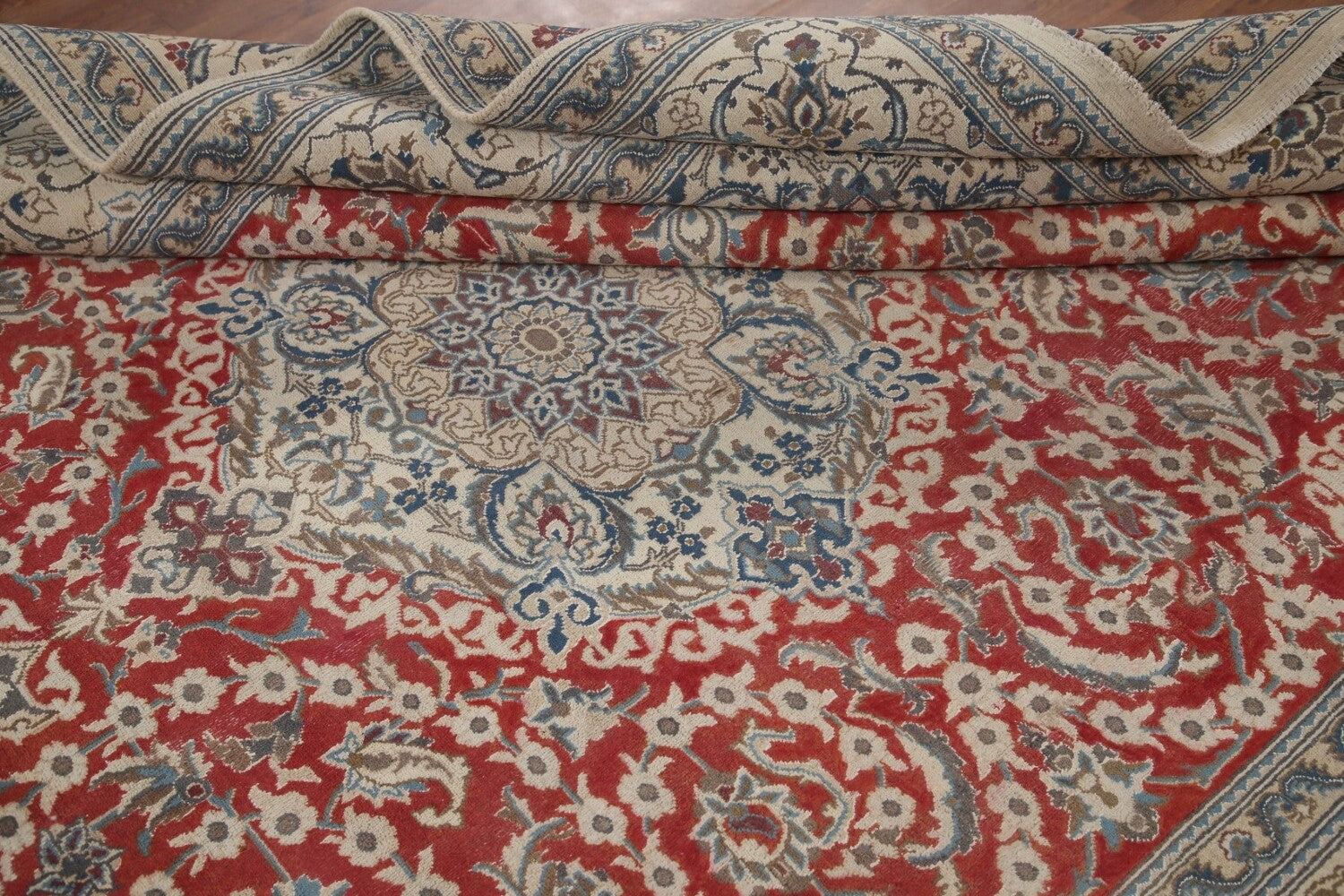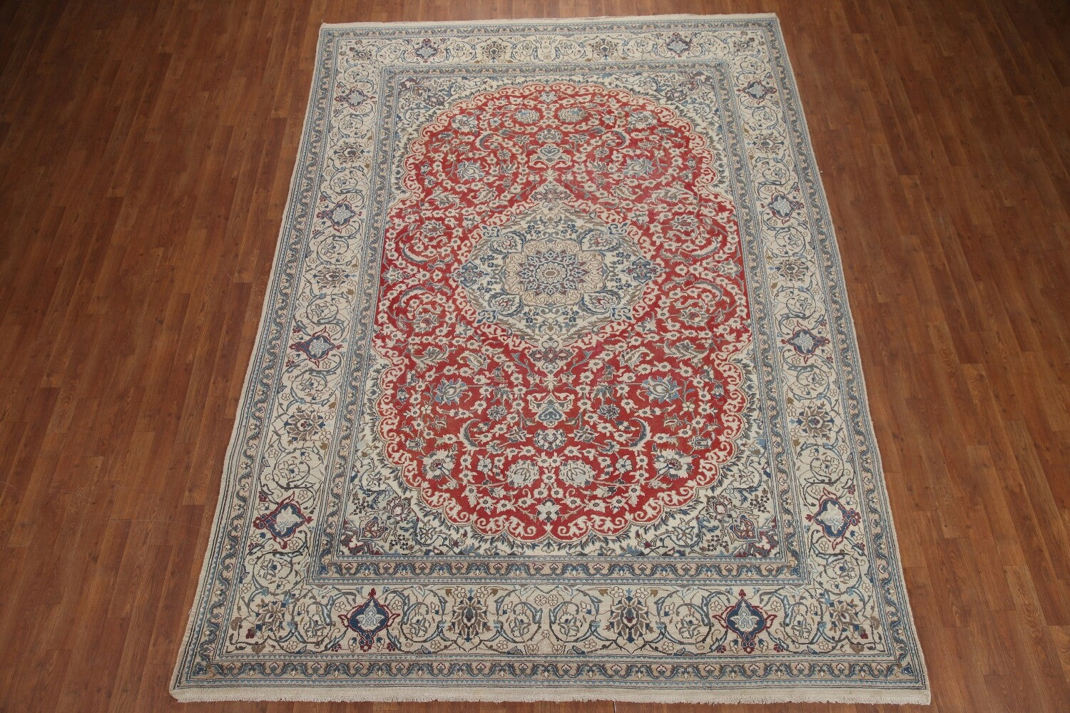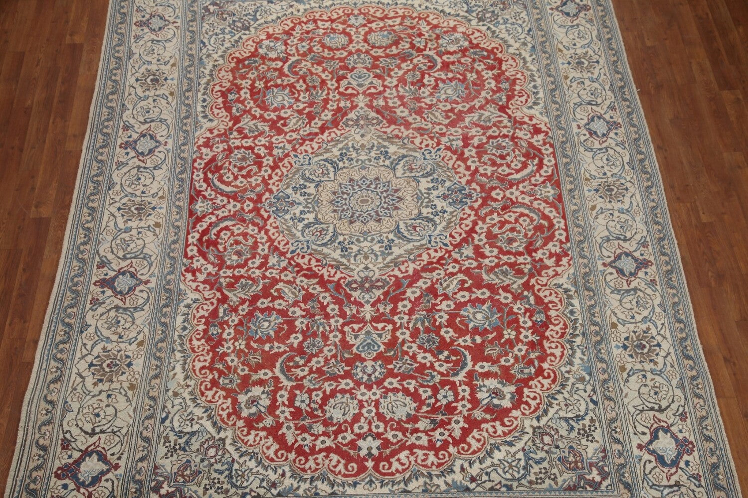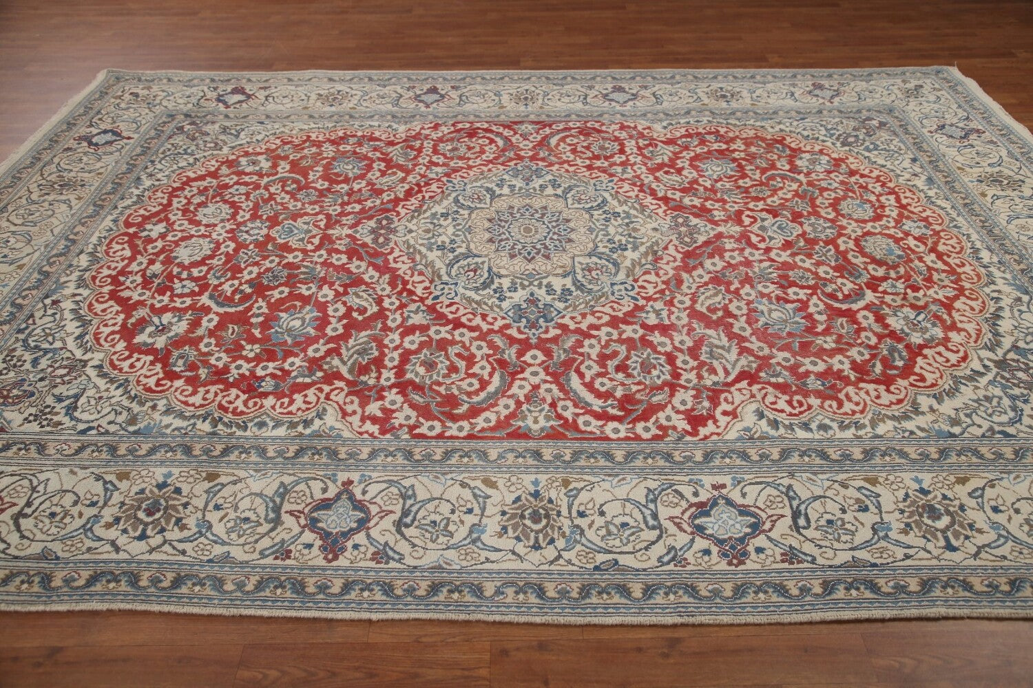 A Beautiful Genuine Persia ( Persia ) Nain rug is Hand Knotted by skillful weavers in Persia ( Persia ) with 100% Wool Material. This rug is in Very Good (Evenly Low Pile) condition. dimensions are 11' 1'' X 7' 10'' in foot and 338 X 239 in centimeter. the primary color is Red.